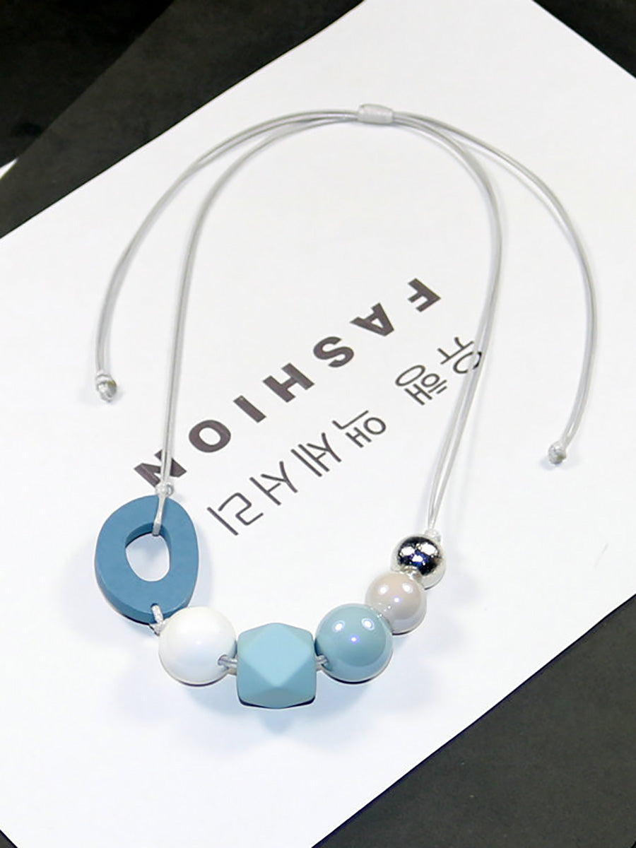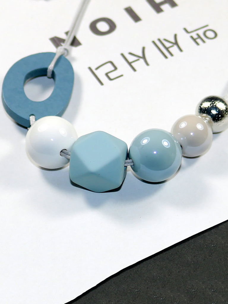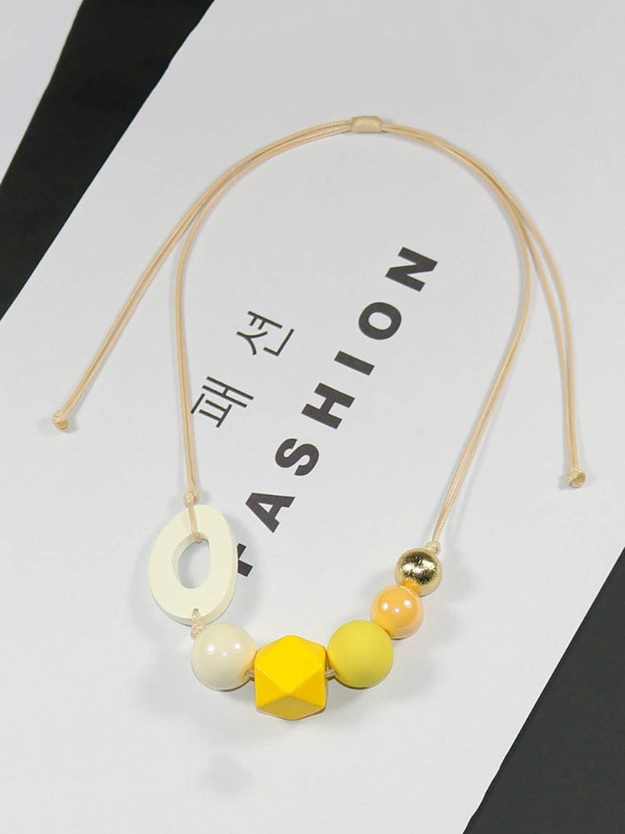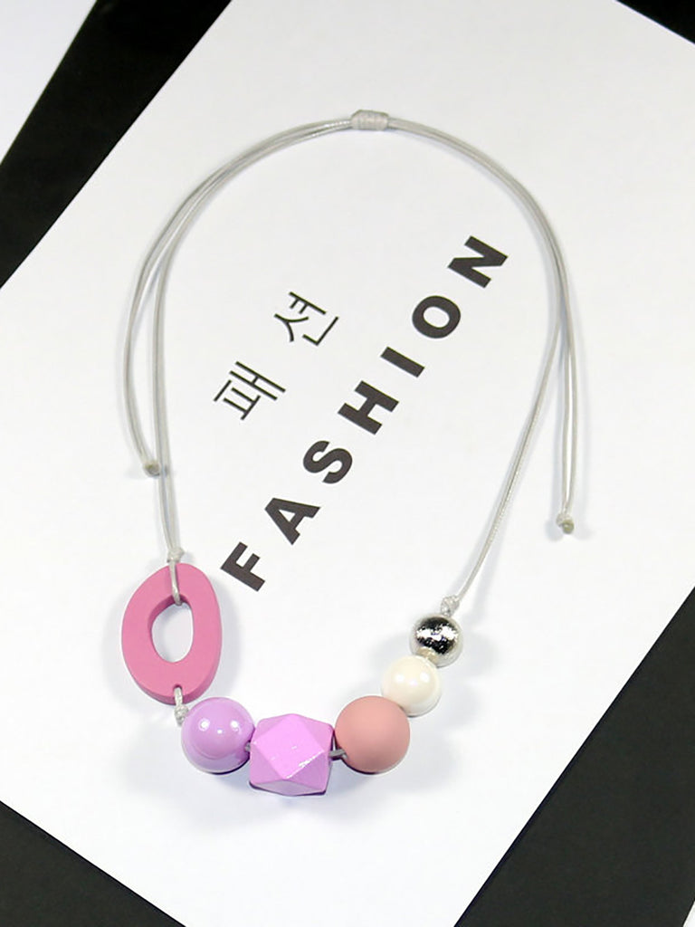 שרשרת גיאומטרית ואקרילית מעץ עם אריגה נחושת לנשים