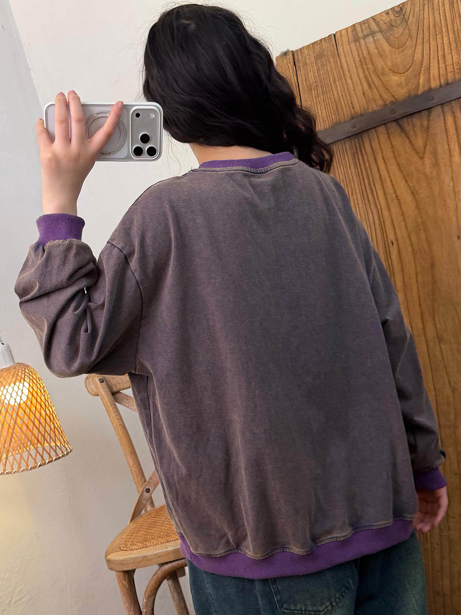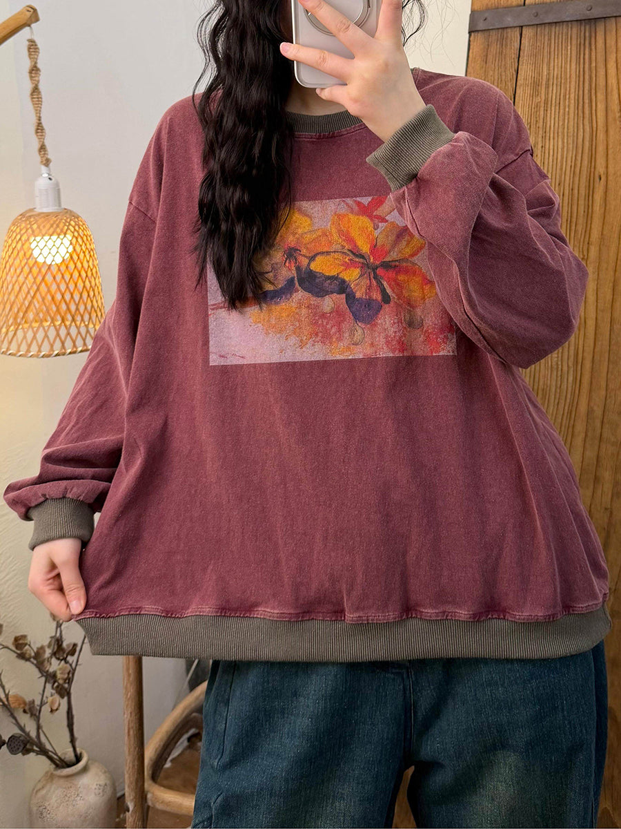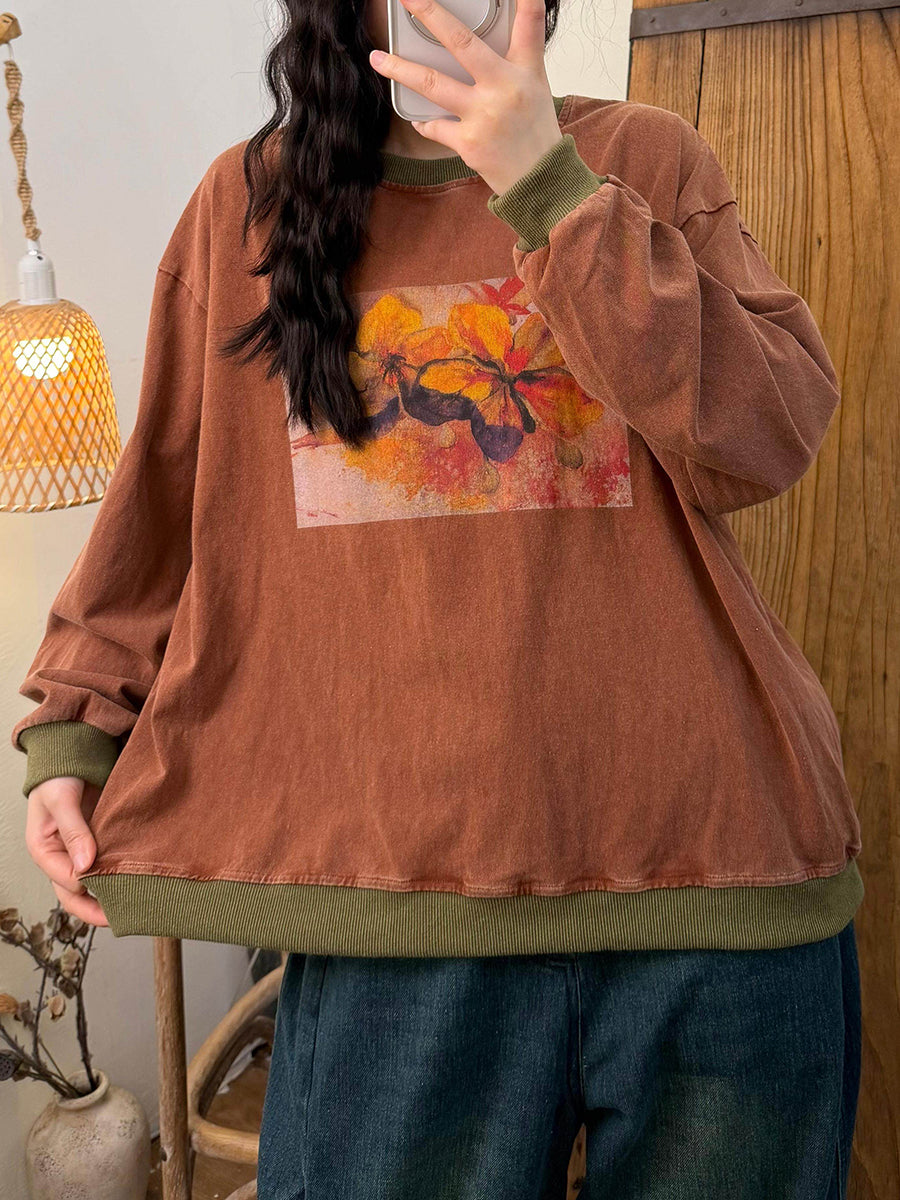 חולצת כותנה עם צווארון O וצווארון פרחוני לנשים באביב אמנותי