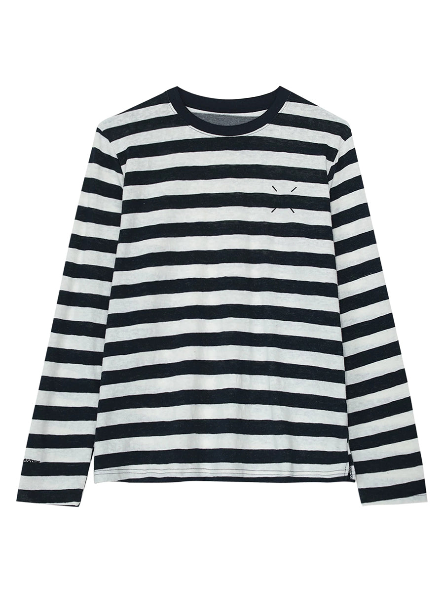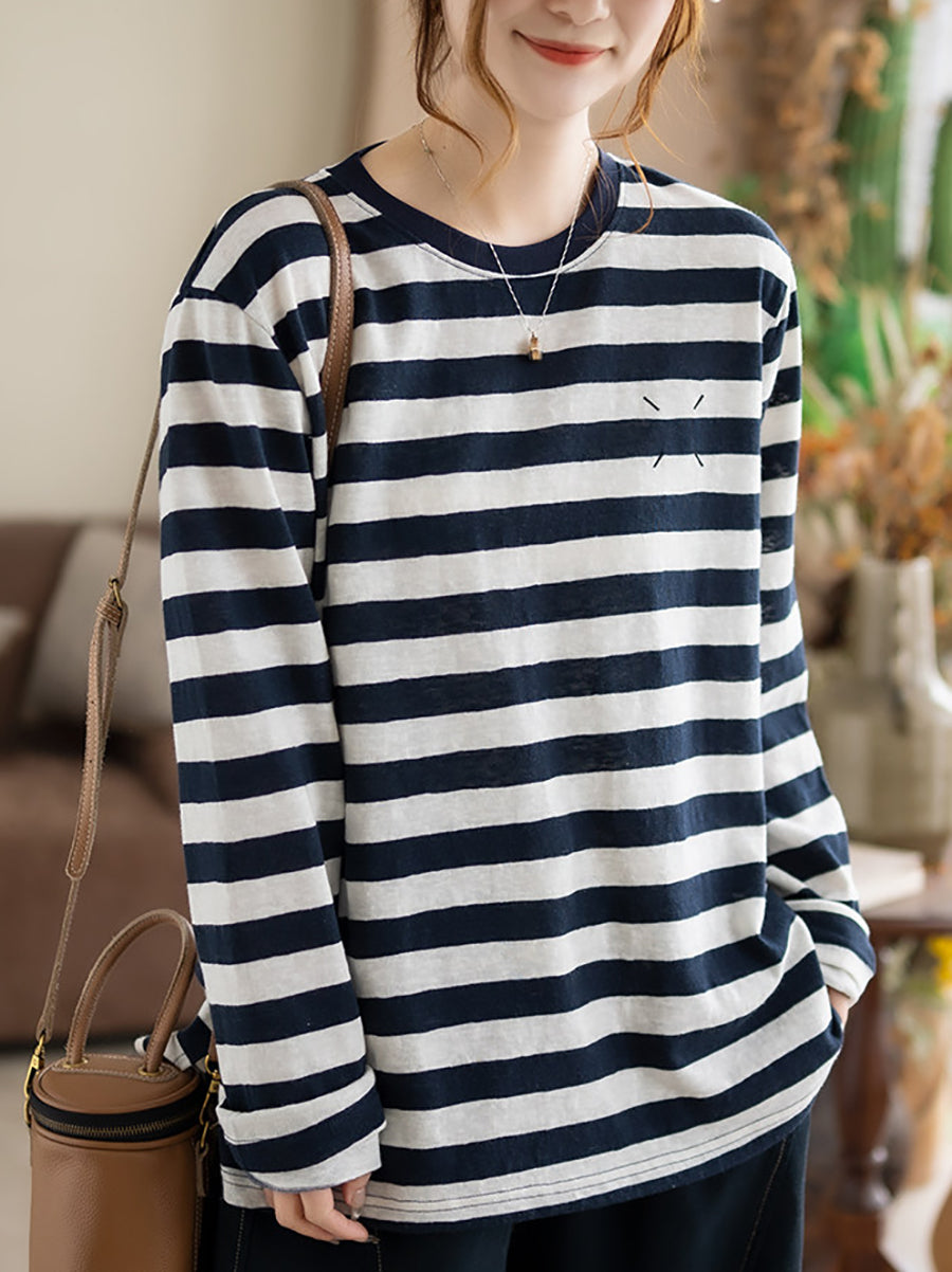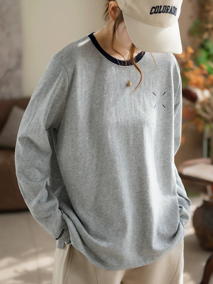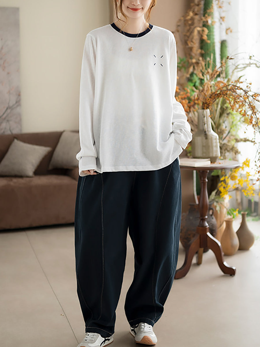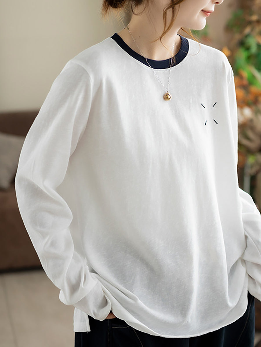 חולצת כותנה אומנותית עם צווארון O לנשים באביב