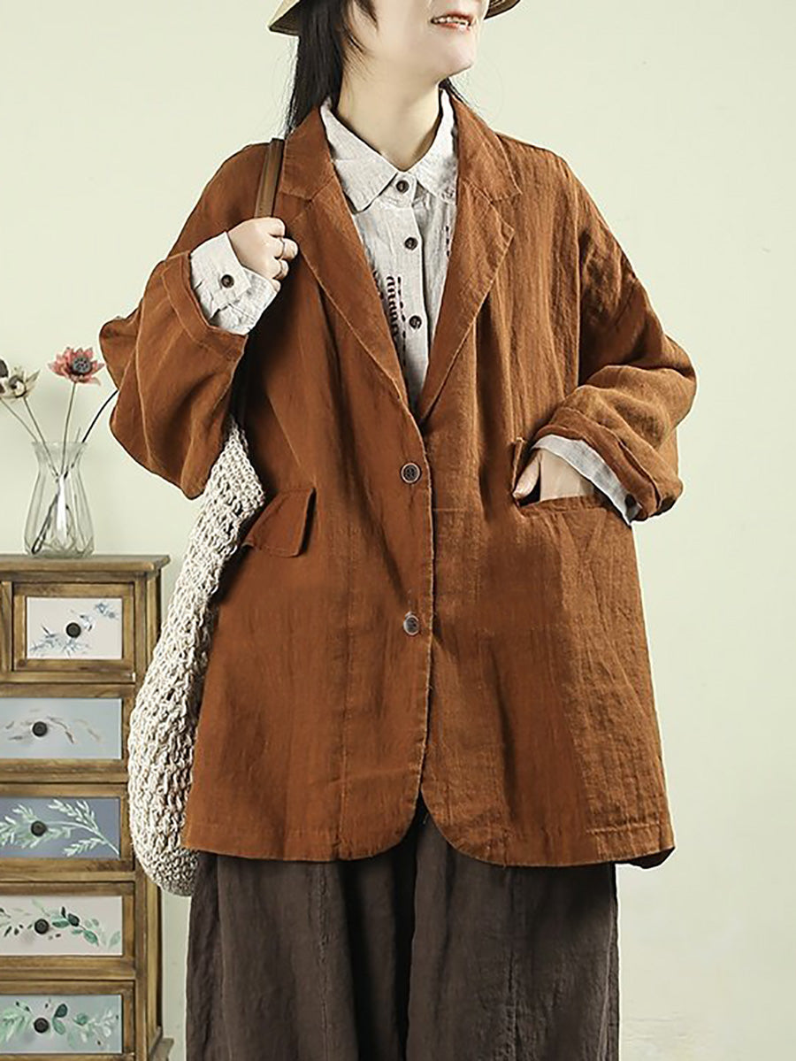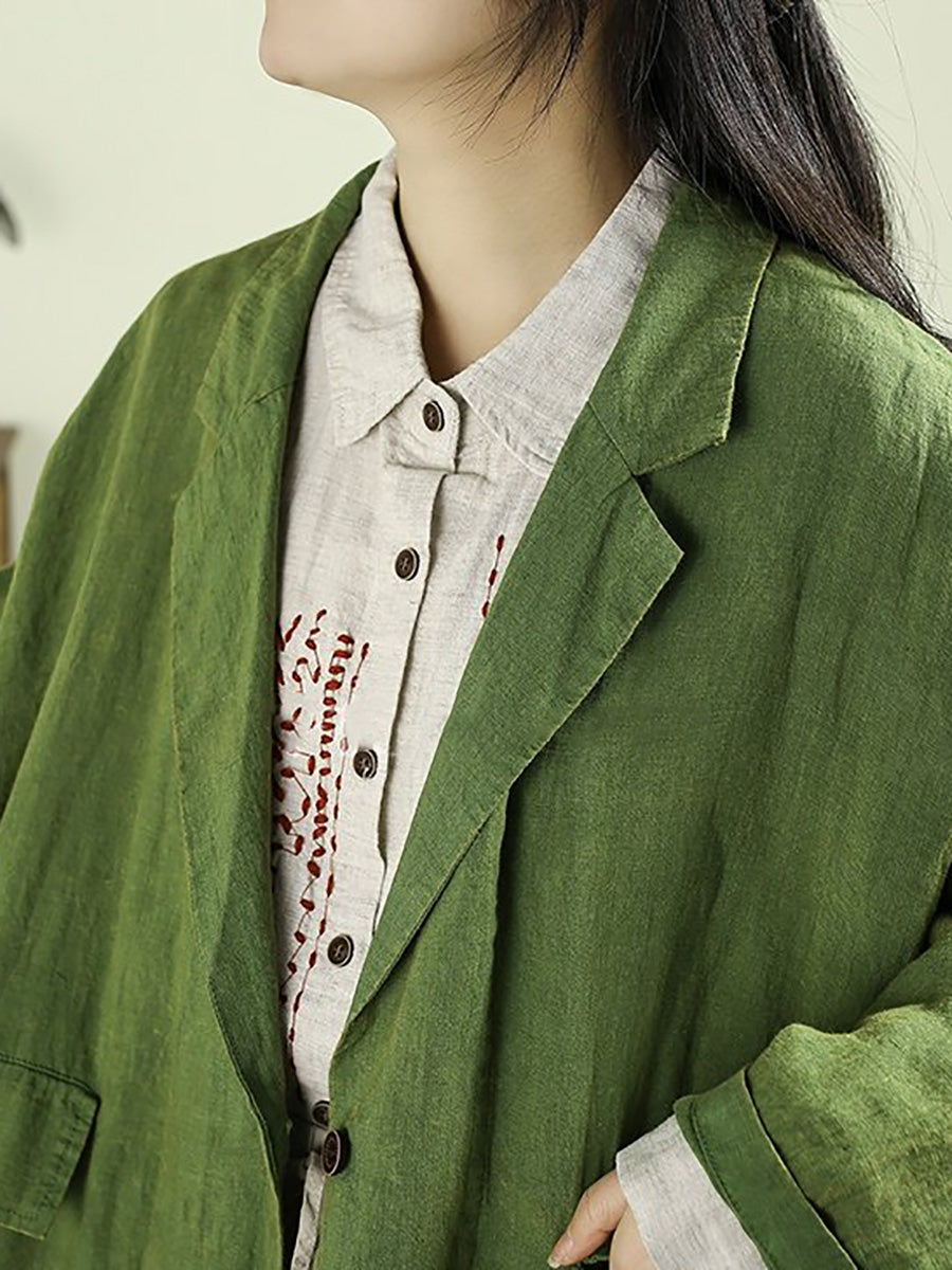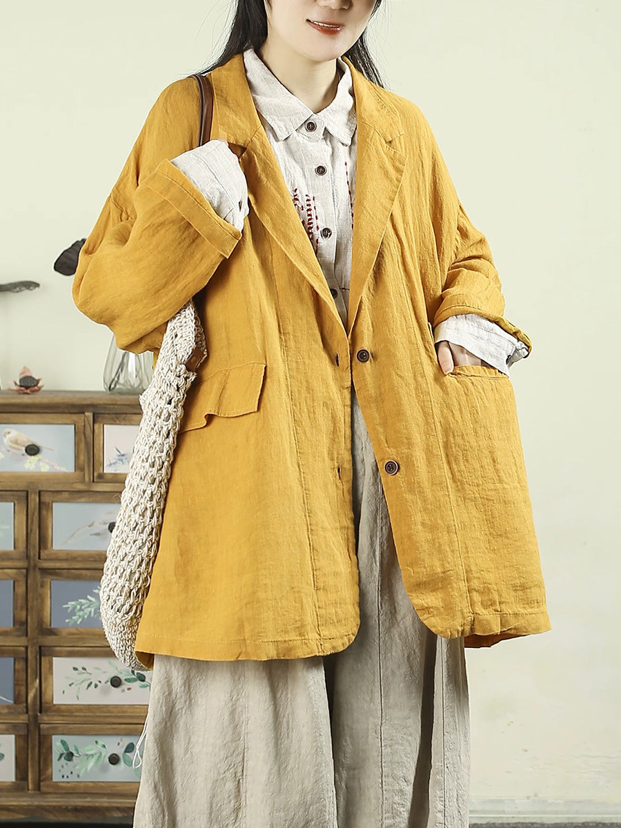 מעיל אביב אמנותי לנשים בצבע טהור 100% פשתן
