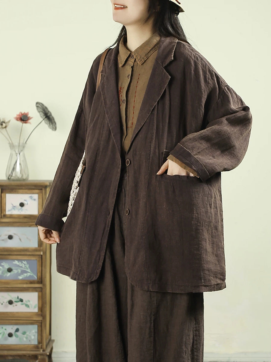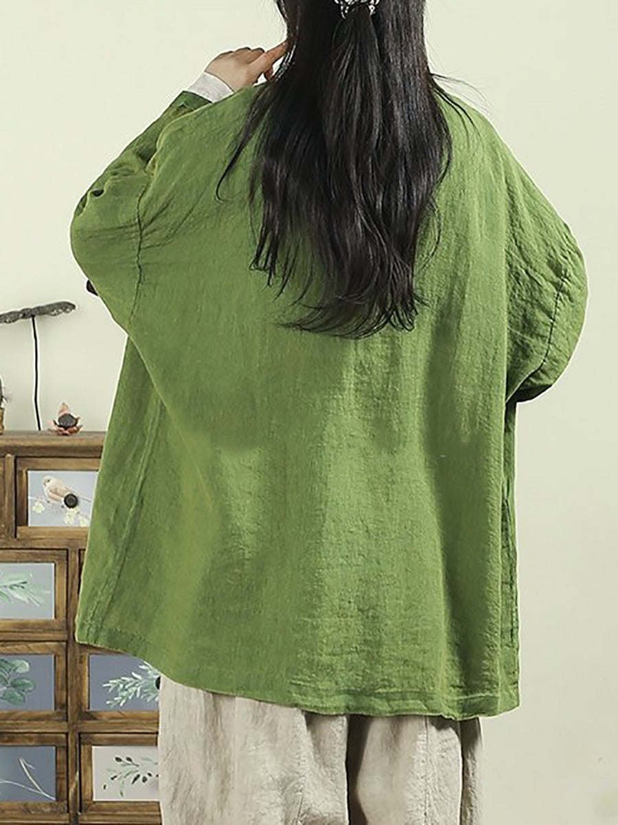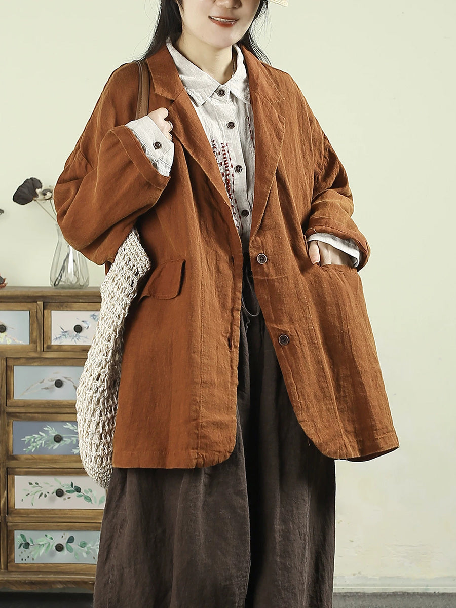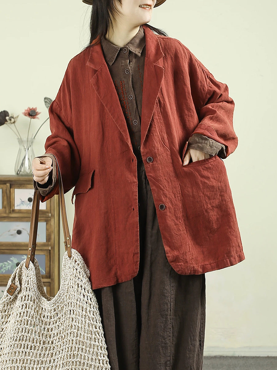 מעיל אביב אמנותי לנשים בצבע טהור 100% פשתן