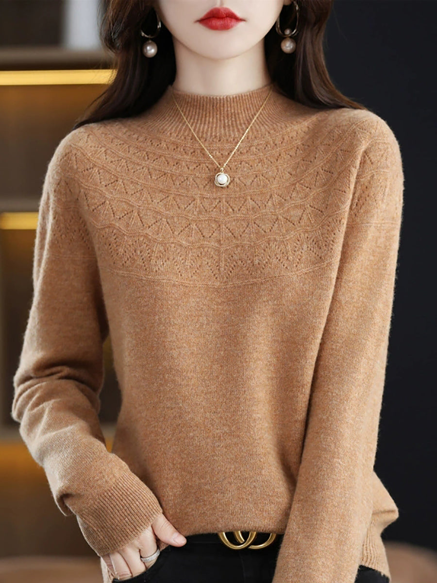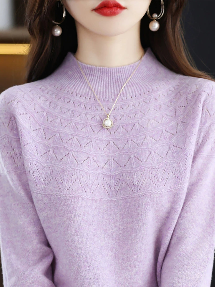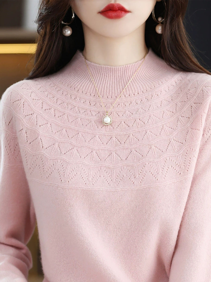 סוודר חצי גולף בצבע טהור לאביב לנשים