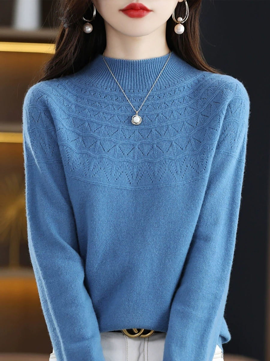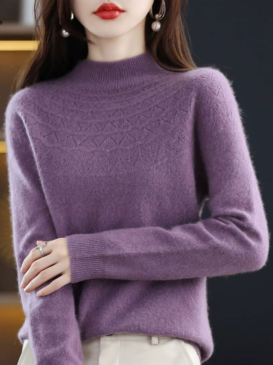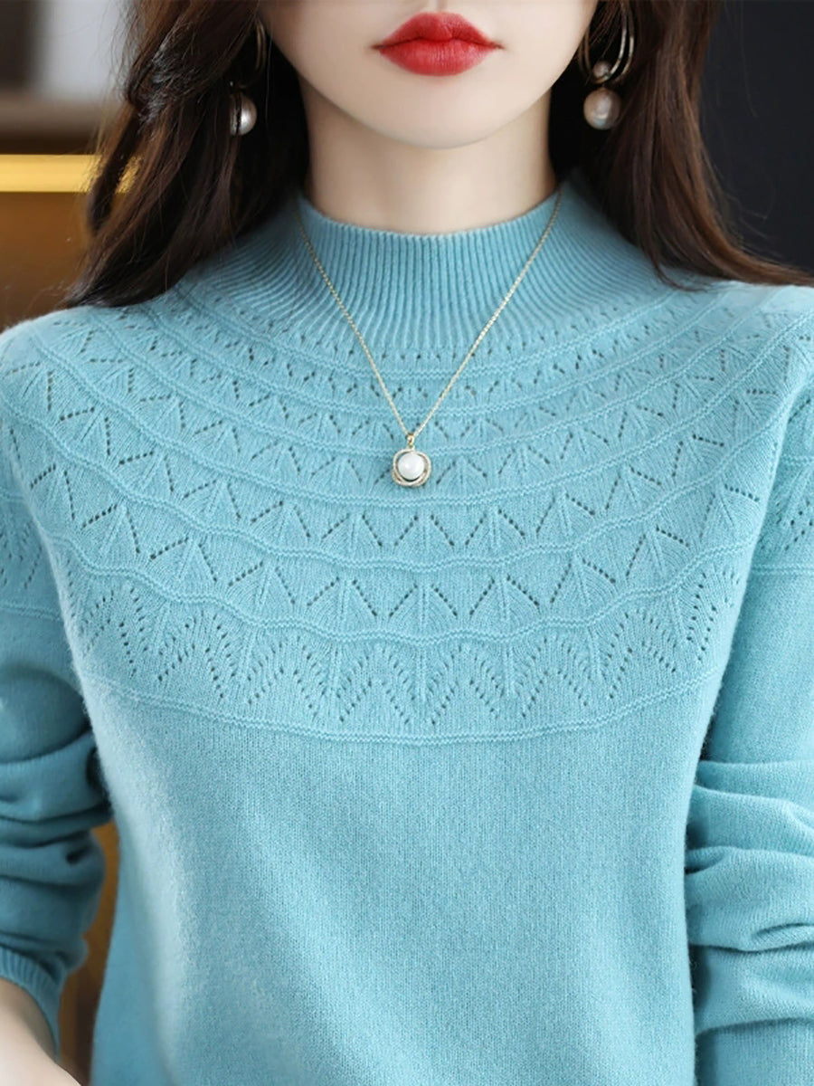 סוודר חצי גולף בצבע טהור לאביב לנשים