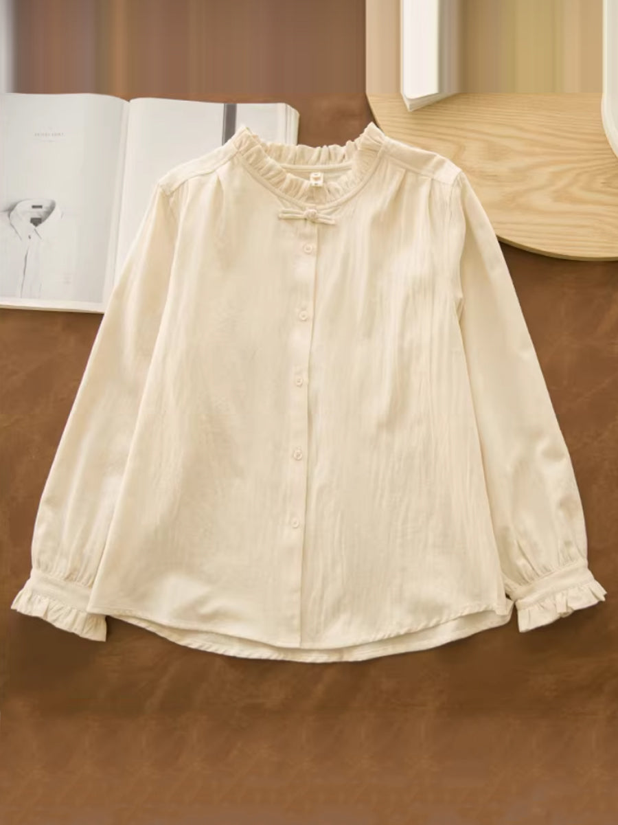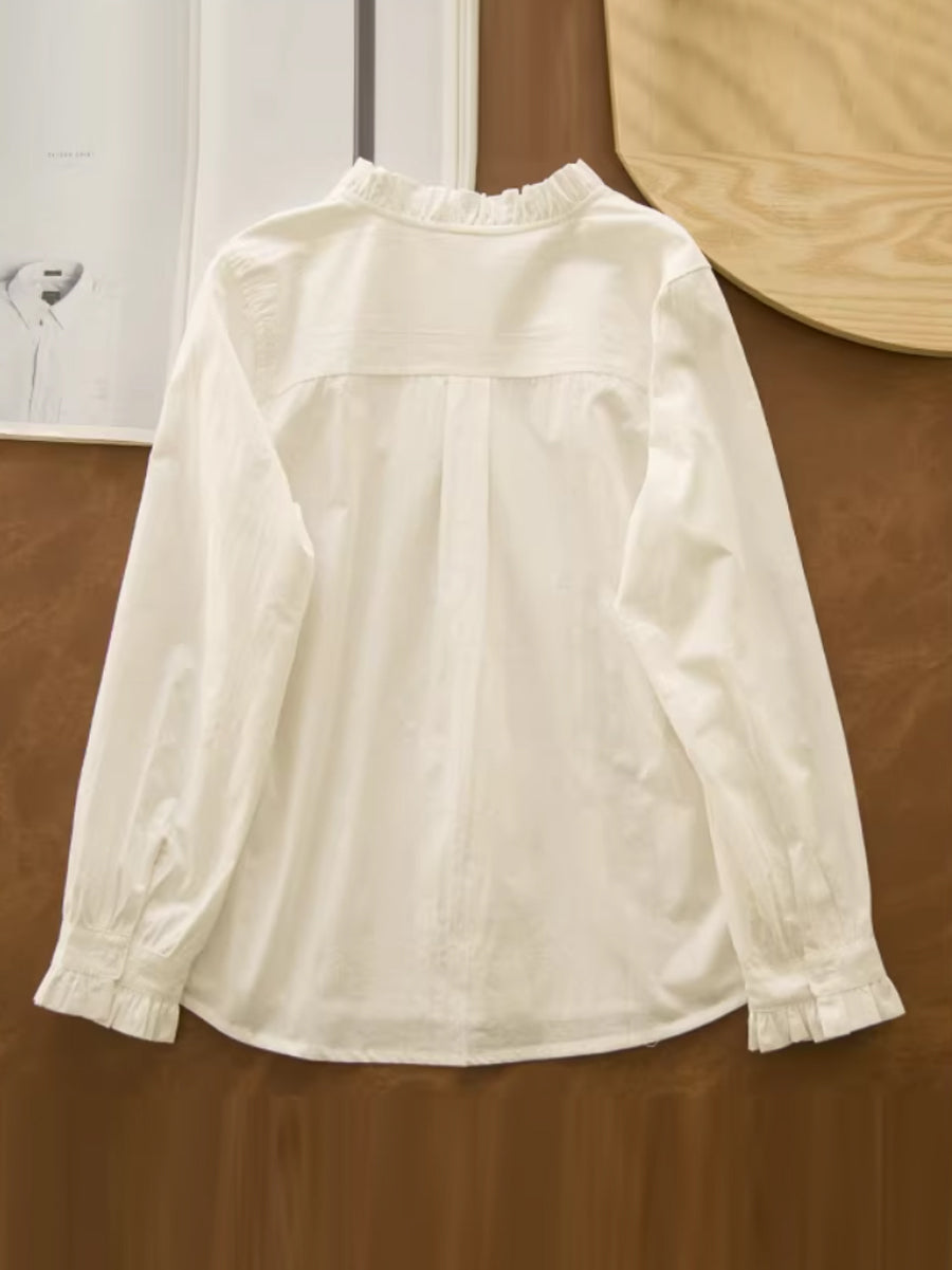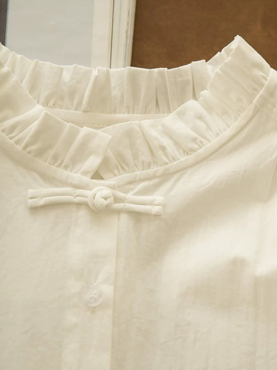חולצת צווארון תחרה בצבע טהור לנשים עם צווארון אומנותי לאביב