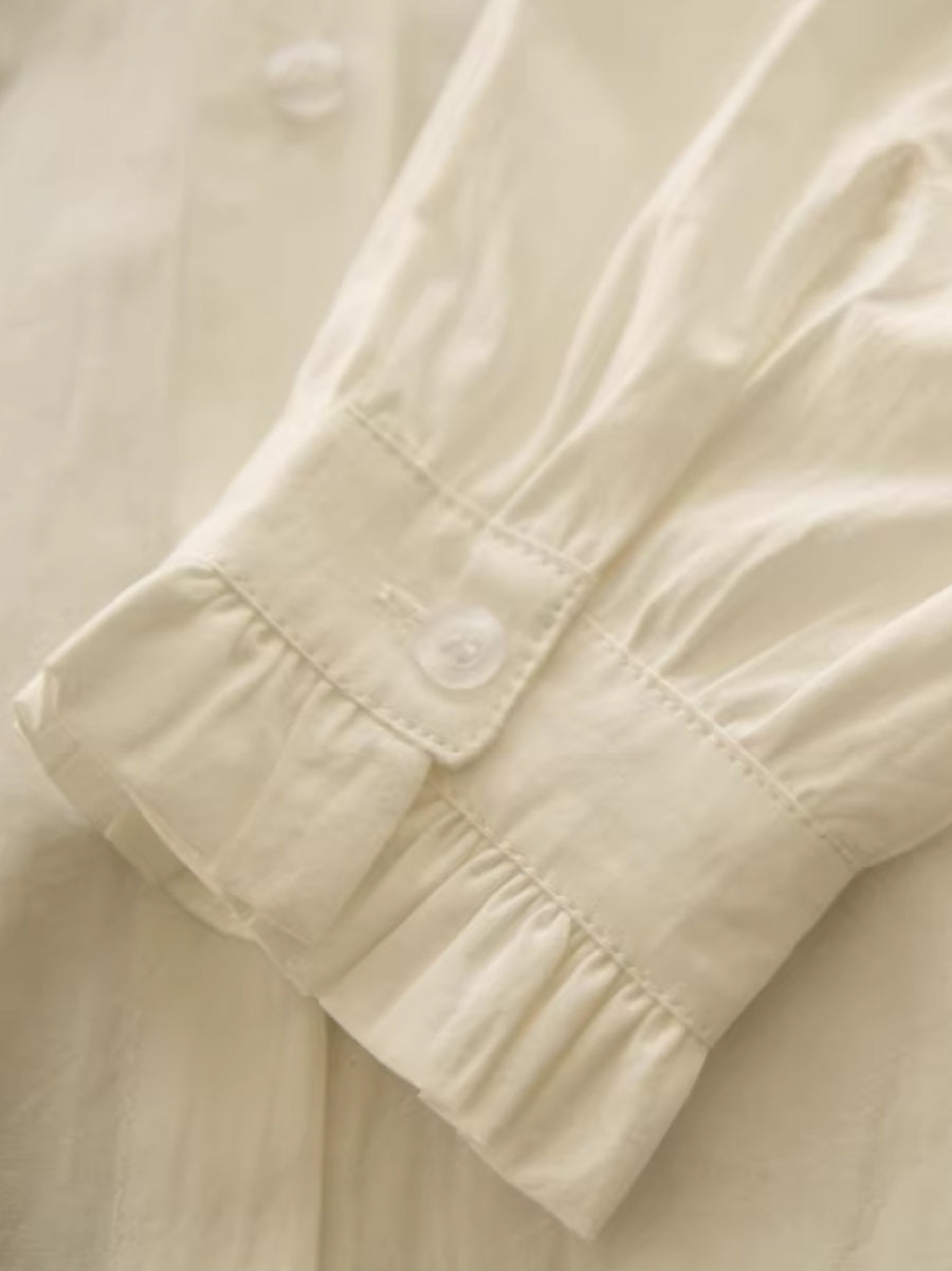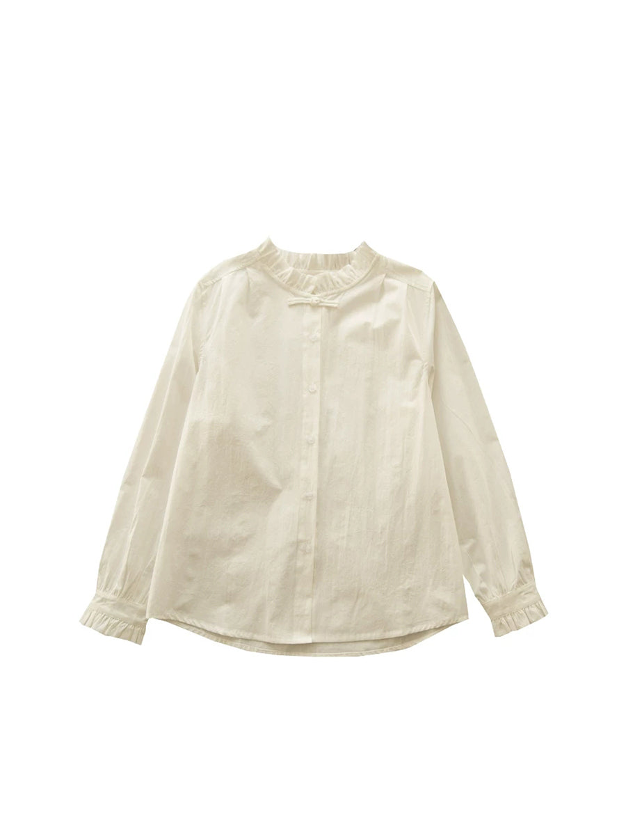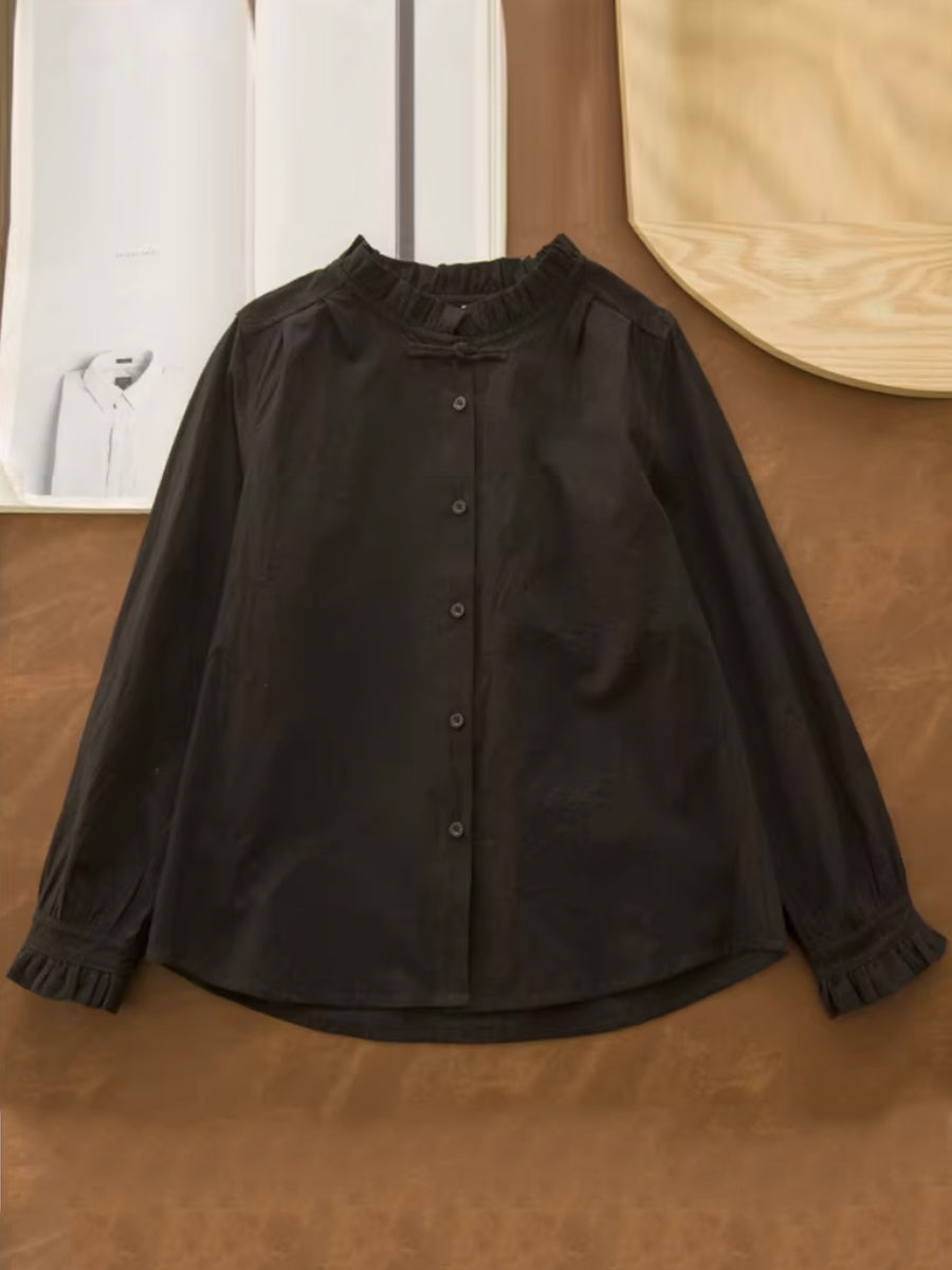 חולצת צווארון תחרה בצבע טהור לנשים עם צווארון אומנותי לאביב