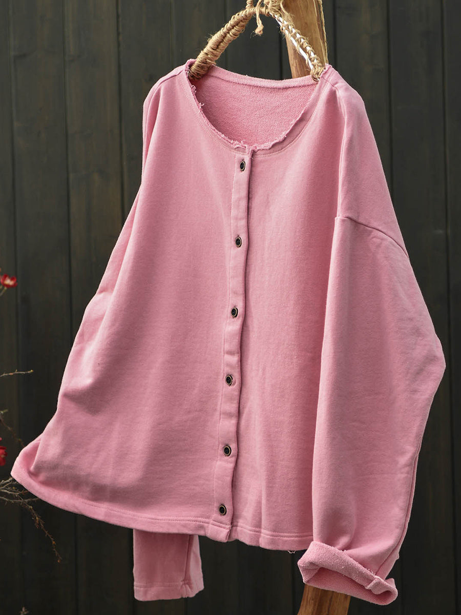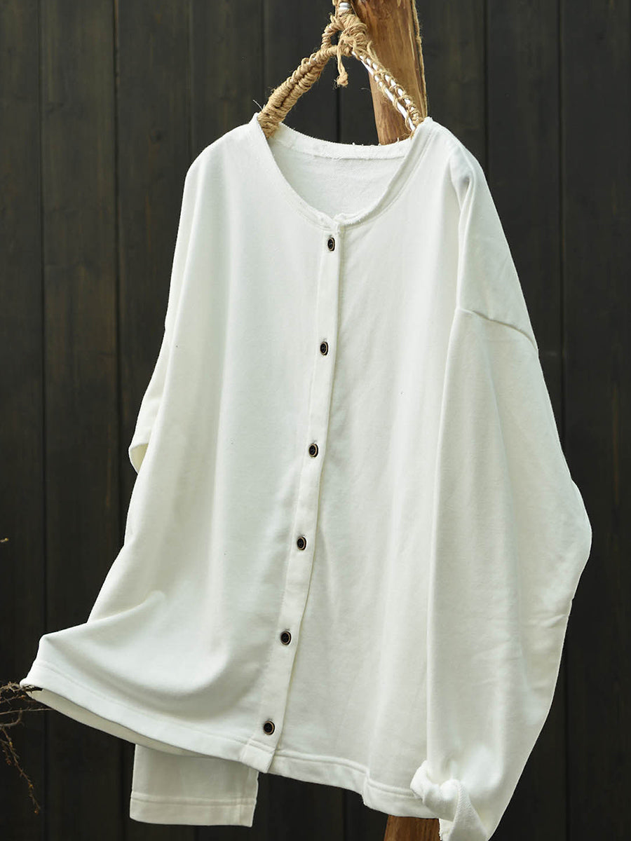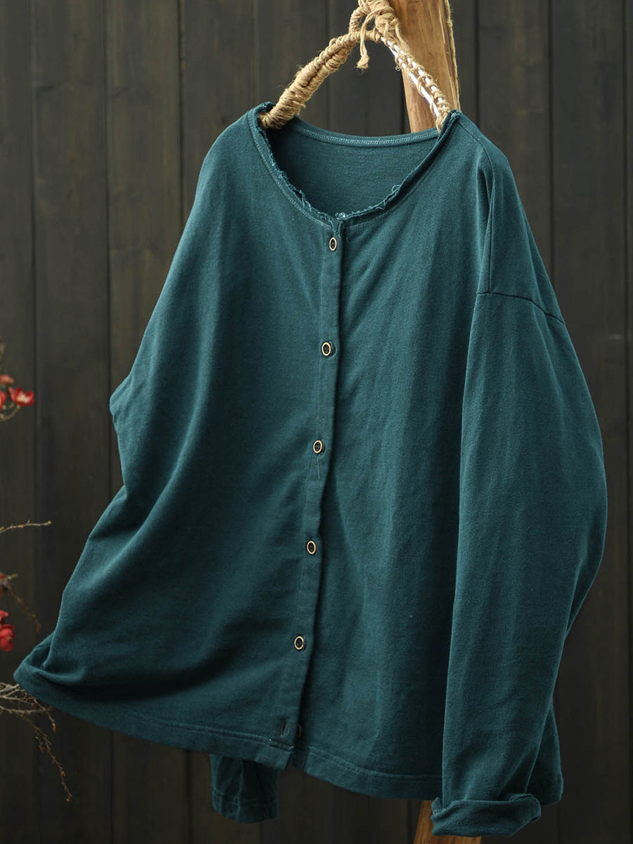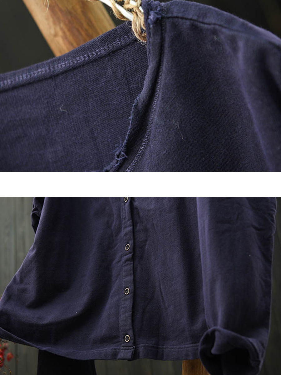 חולצת כותנה אומנותית לנשים בצבע טהור עם צווארון O