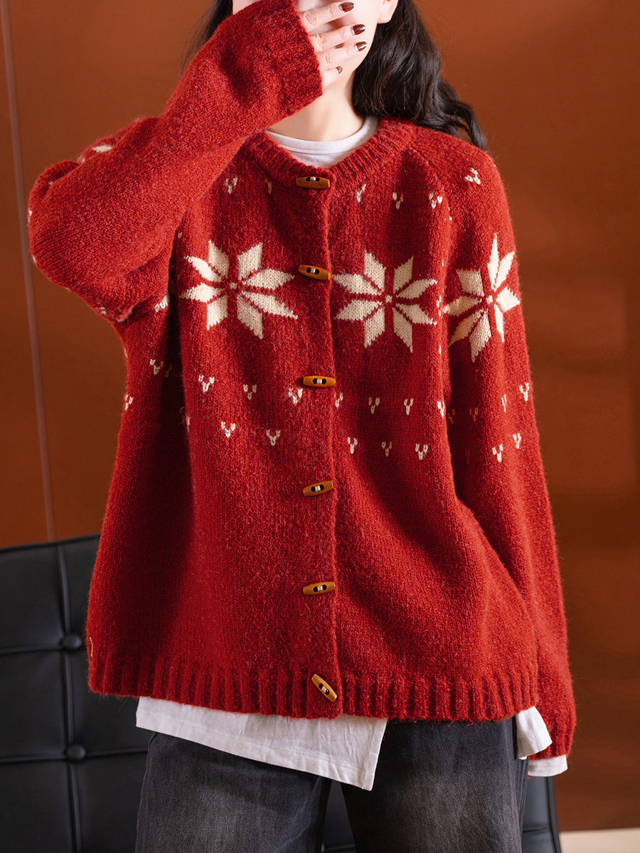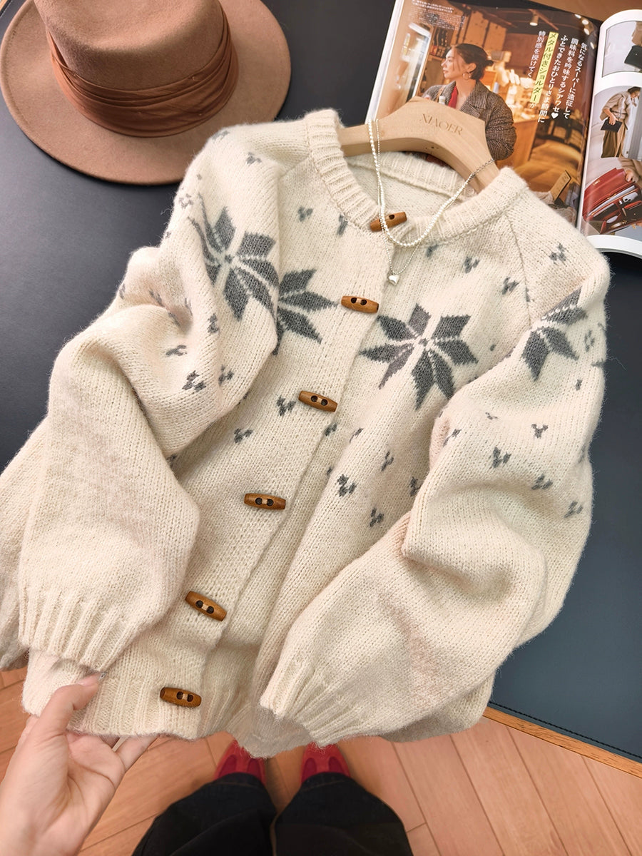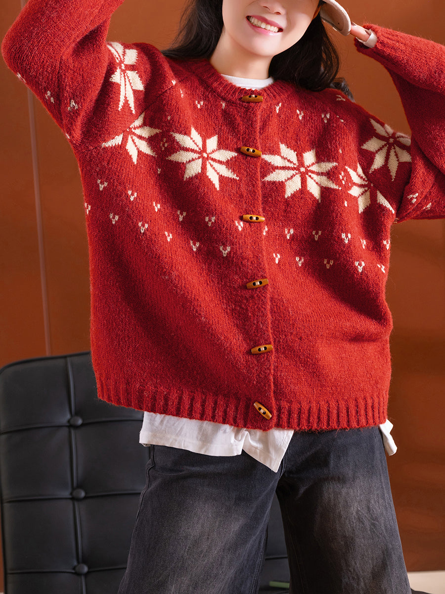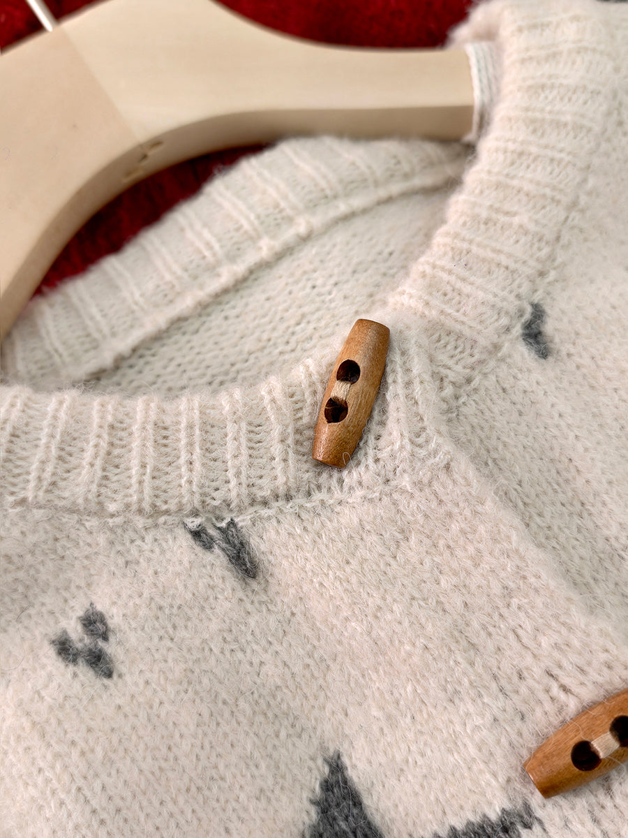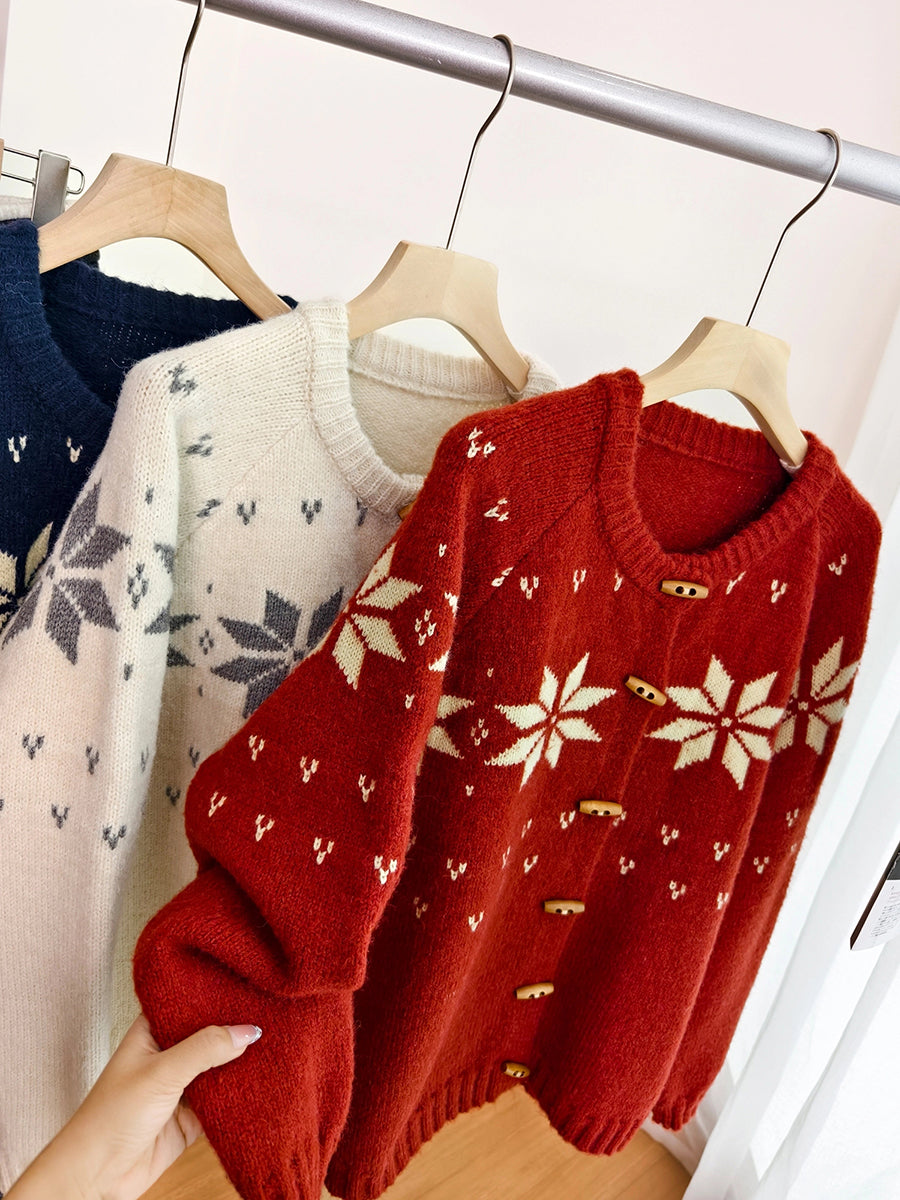 סוודר סרוג פרחוני עם צווארון O וצווארון פרחוני לנשים בסתיו