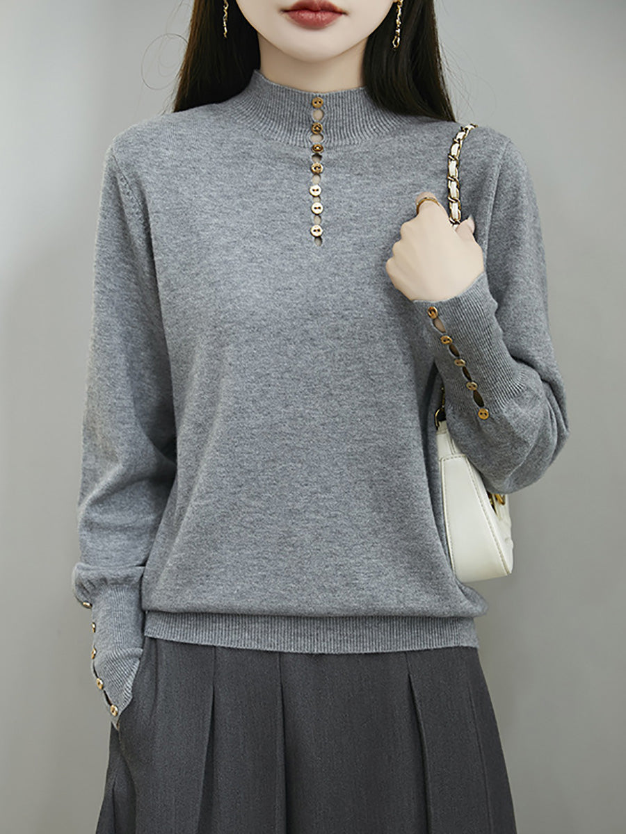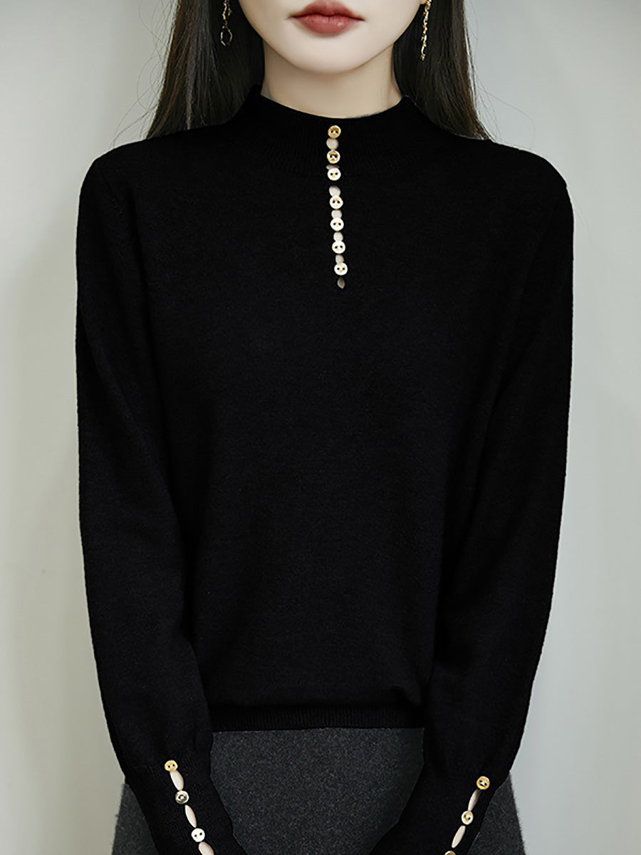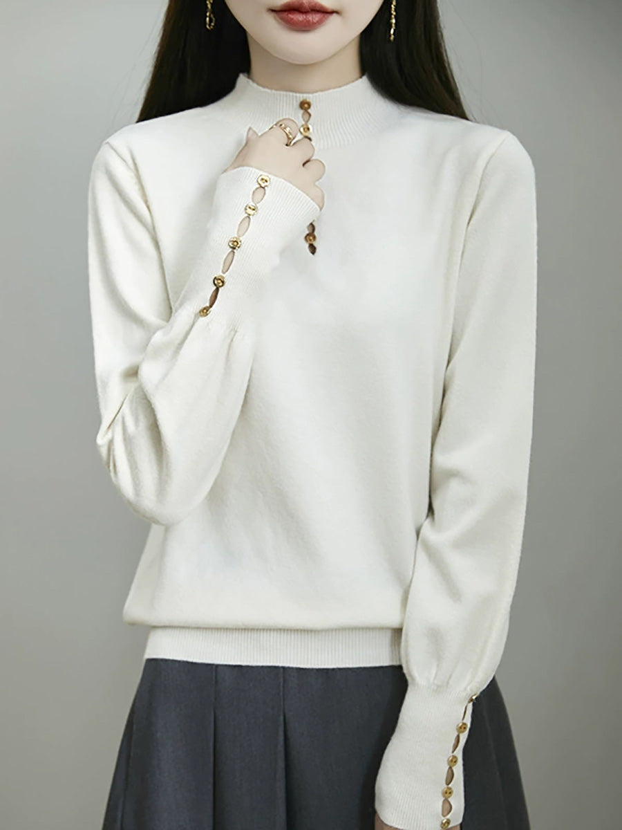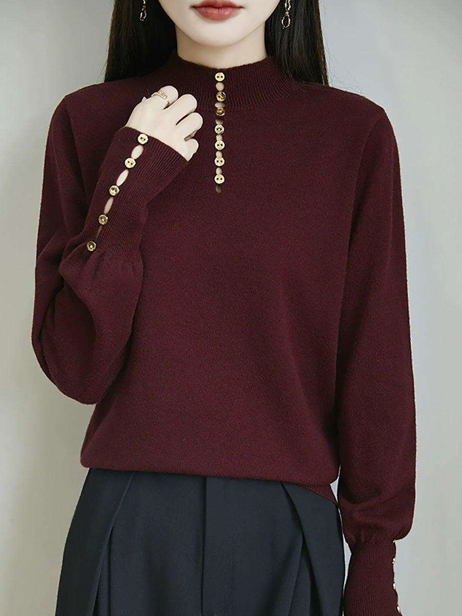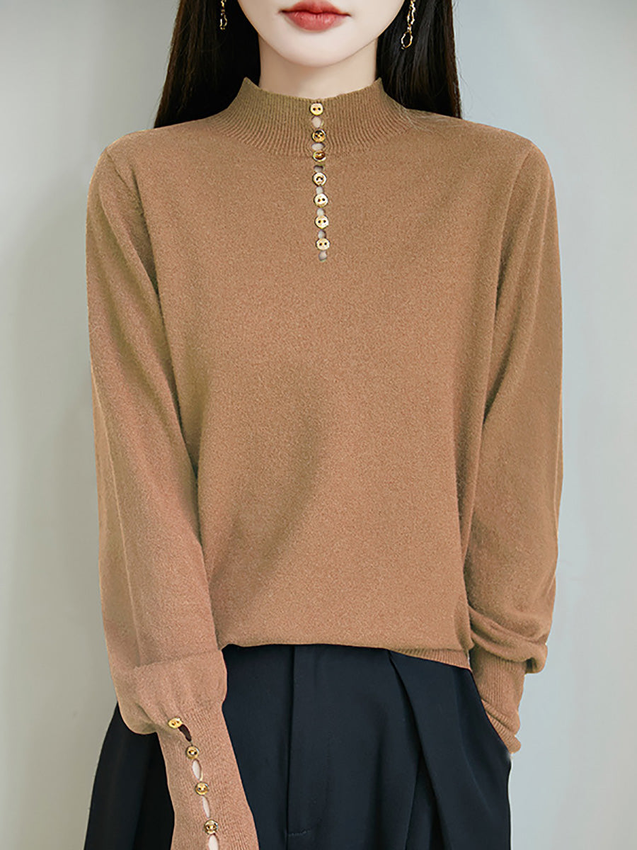 סוודר חצי גולף בצבע טהור אומנותי לנשים סתיו