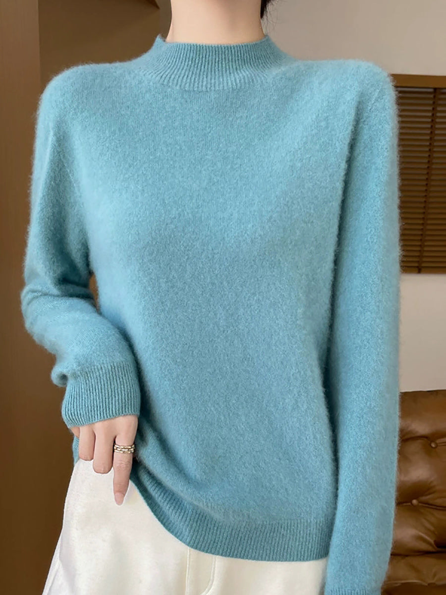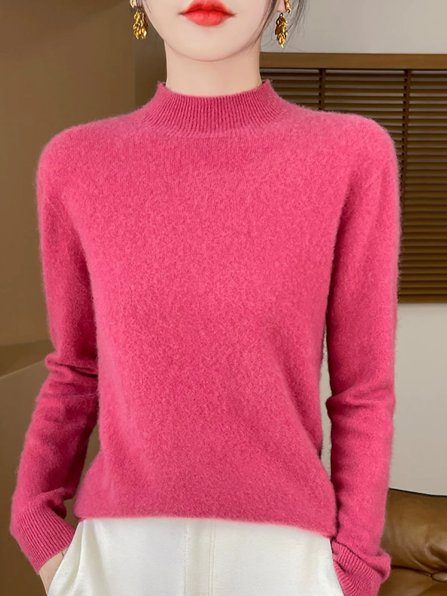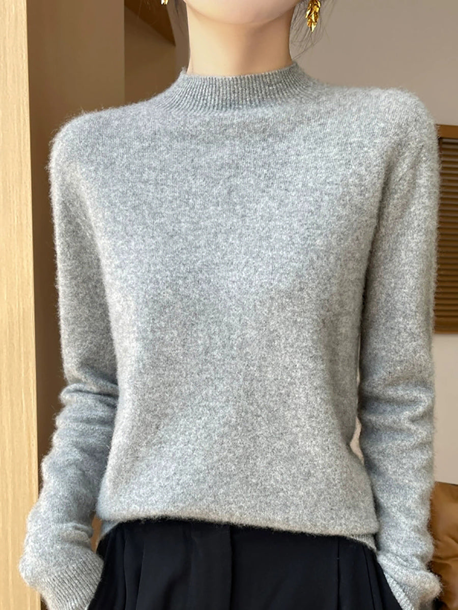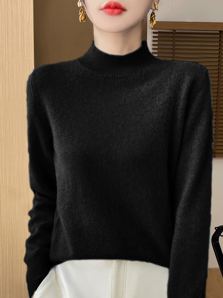 סוודר חצי גולף בצבע טהור אומנותי לנשים סתיו
