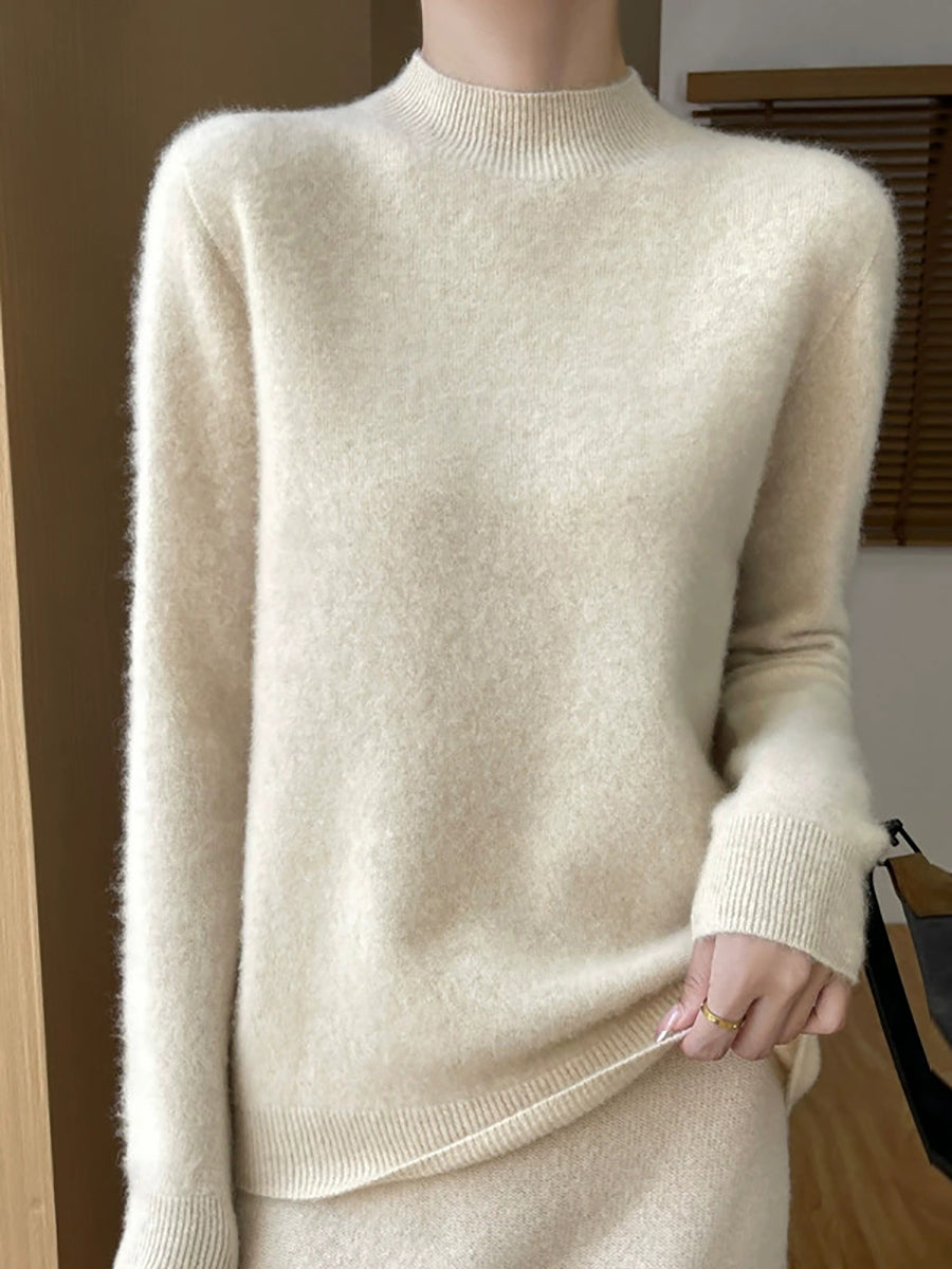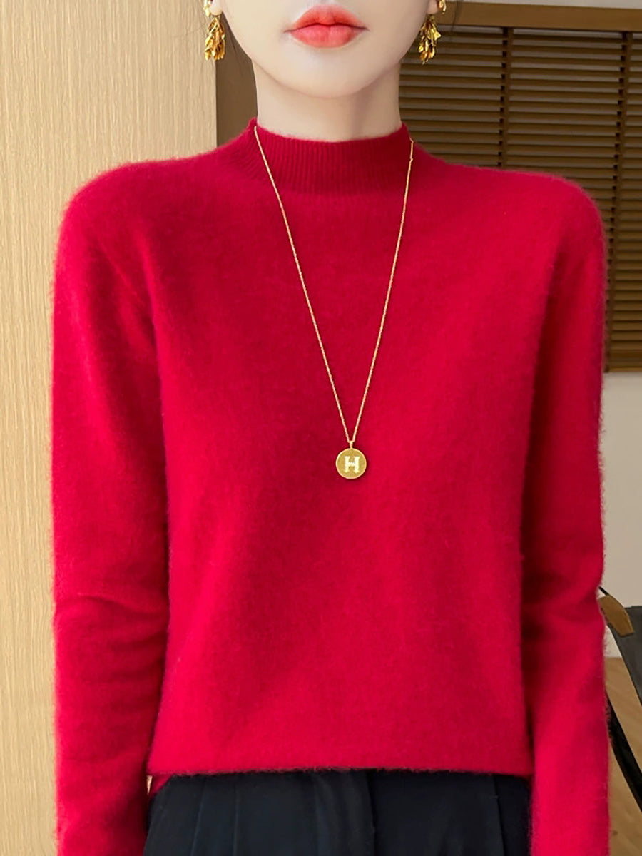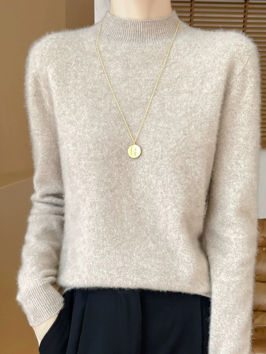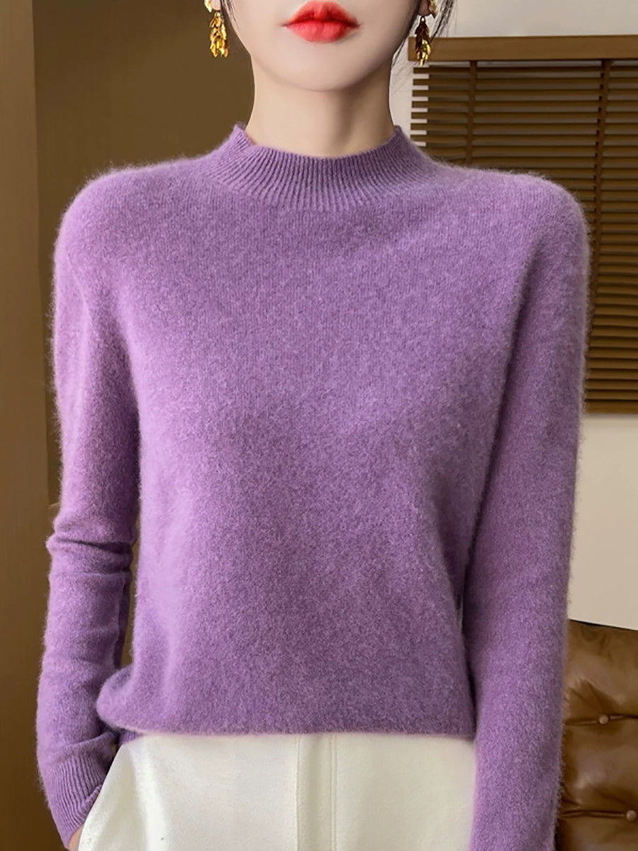 סוודר חצי גולף בצבע טהור אומנותי לנשים סתיו