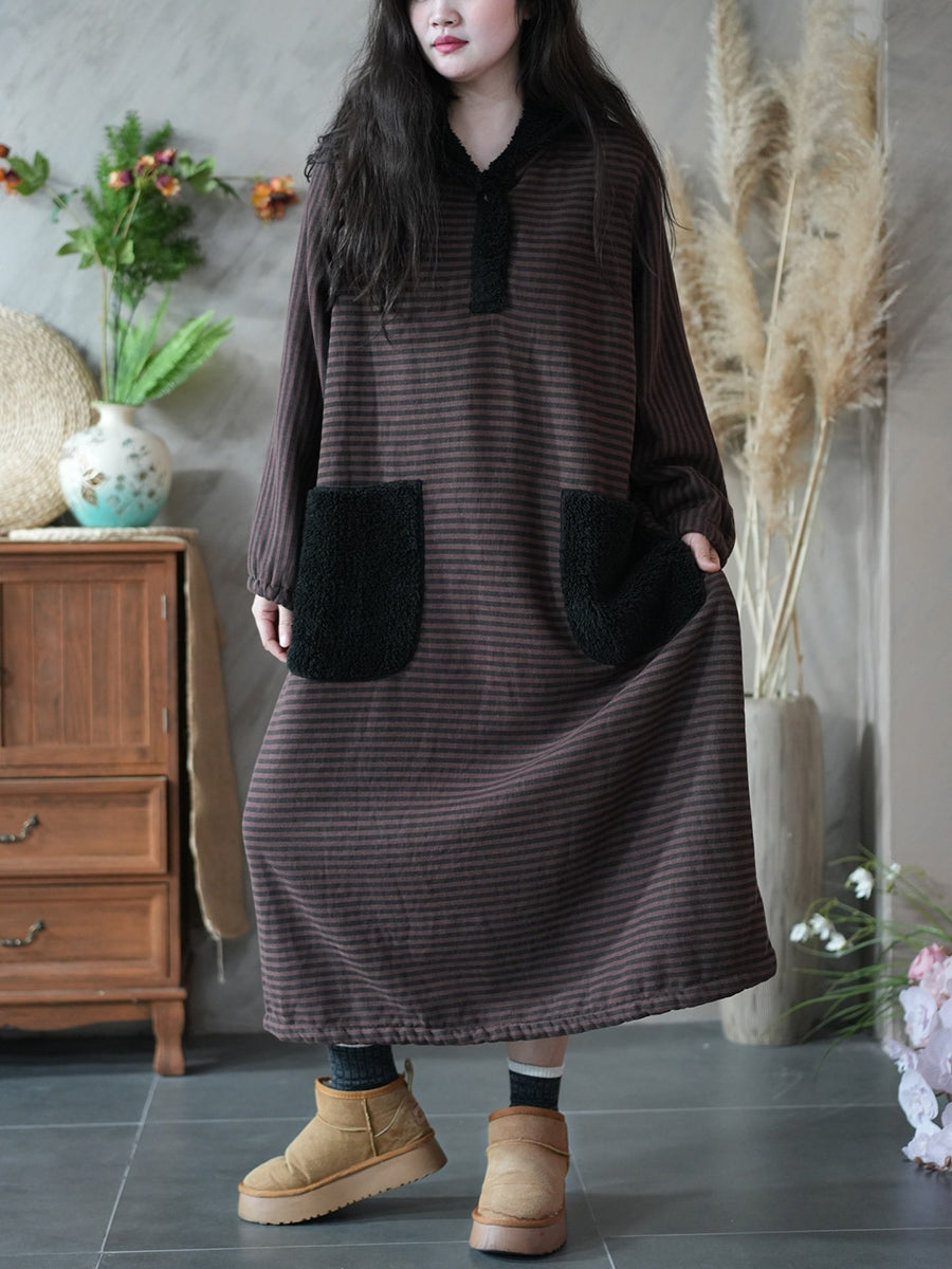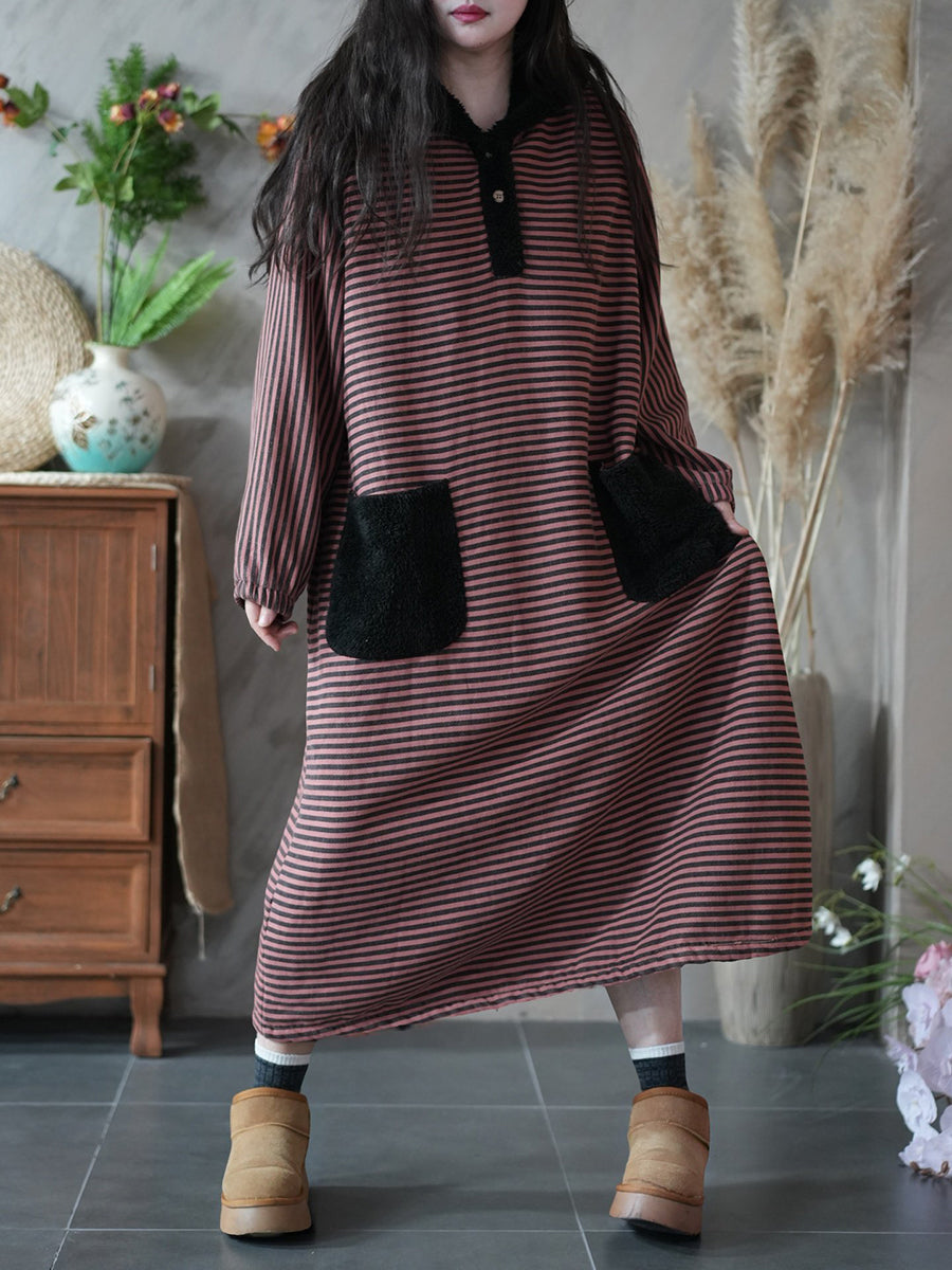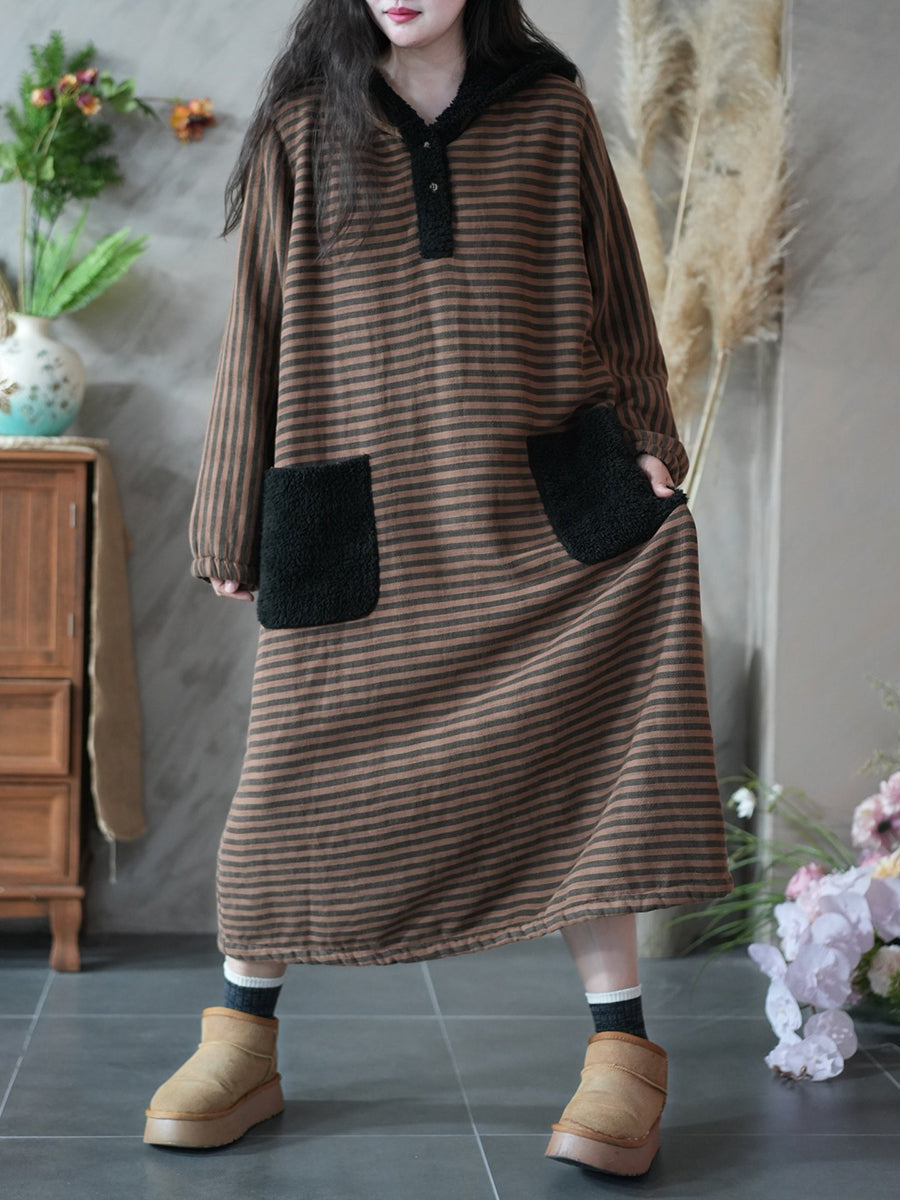 שמלת קפוצ'ון עם פסים אומנותיים לסתיו לנשים