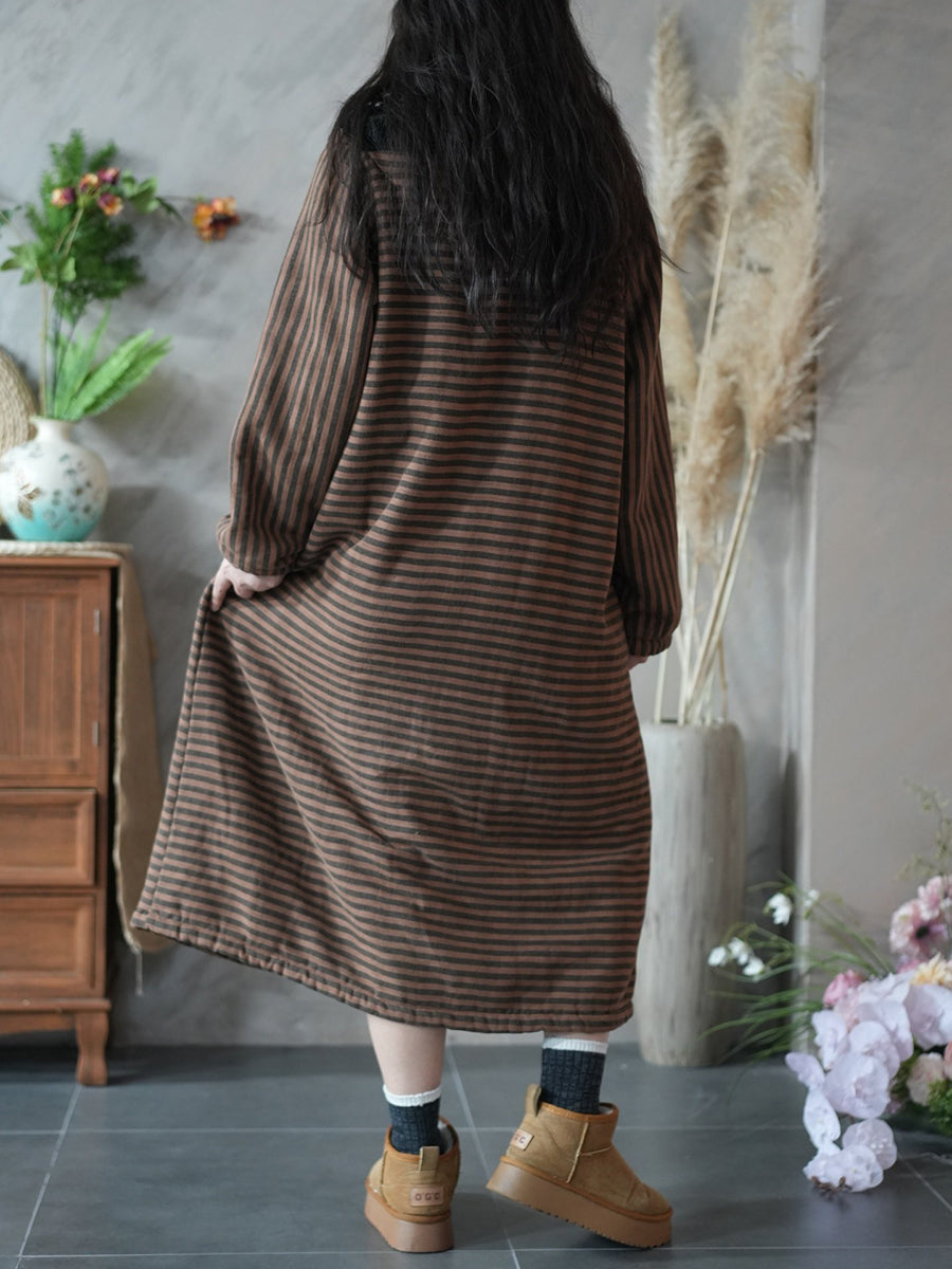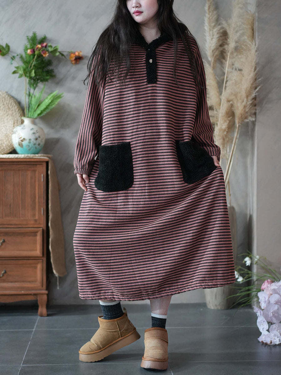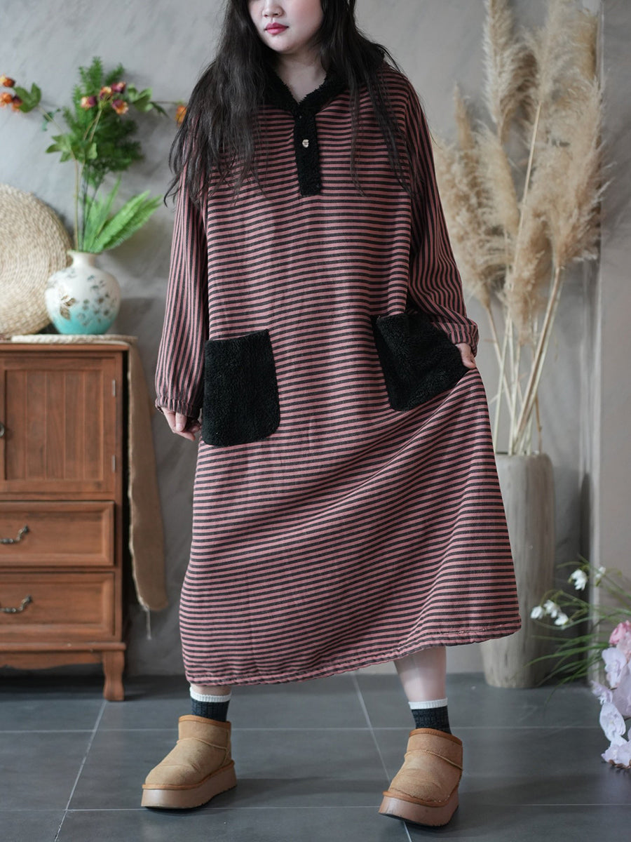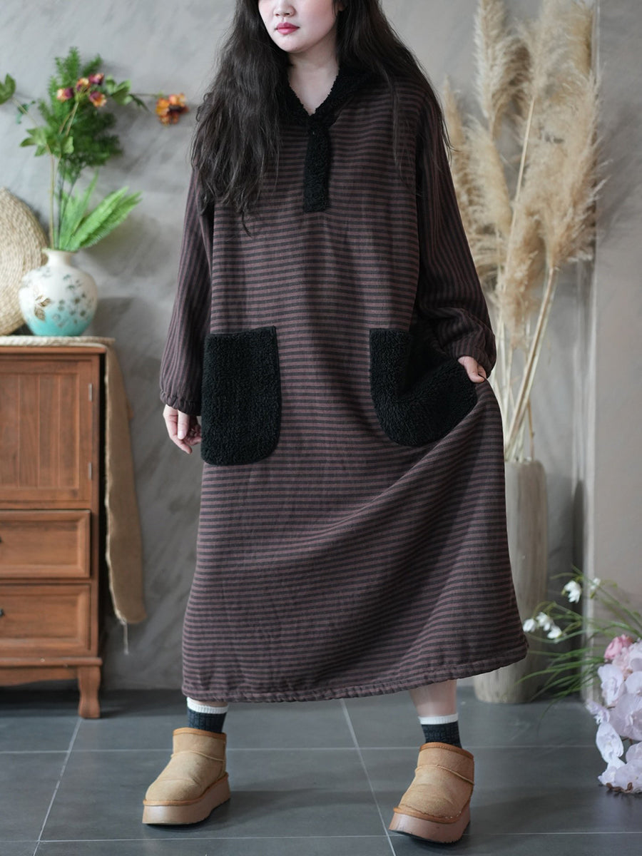 שמלת קפוצ'ון עם פסים אומנותיים לסתיו לנשים