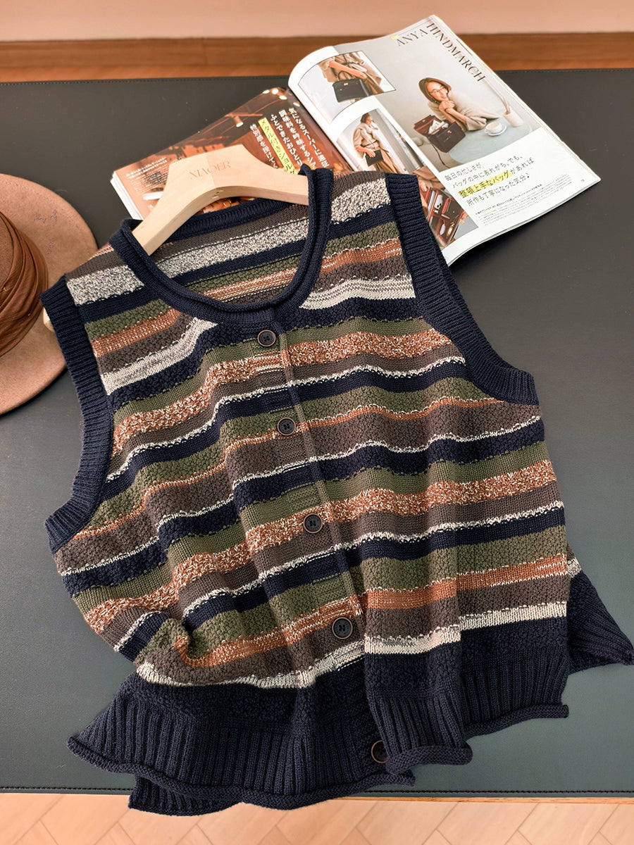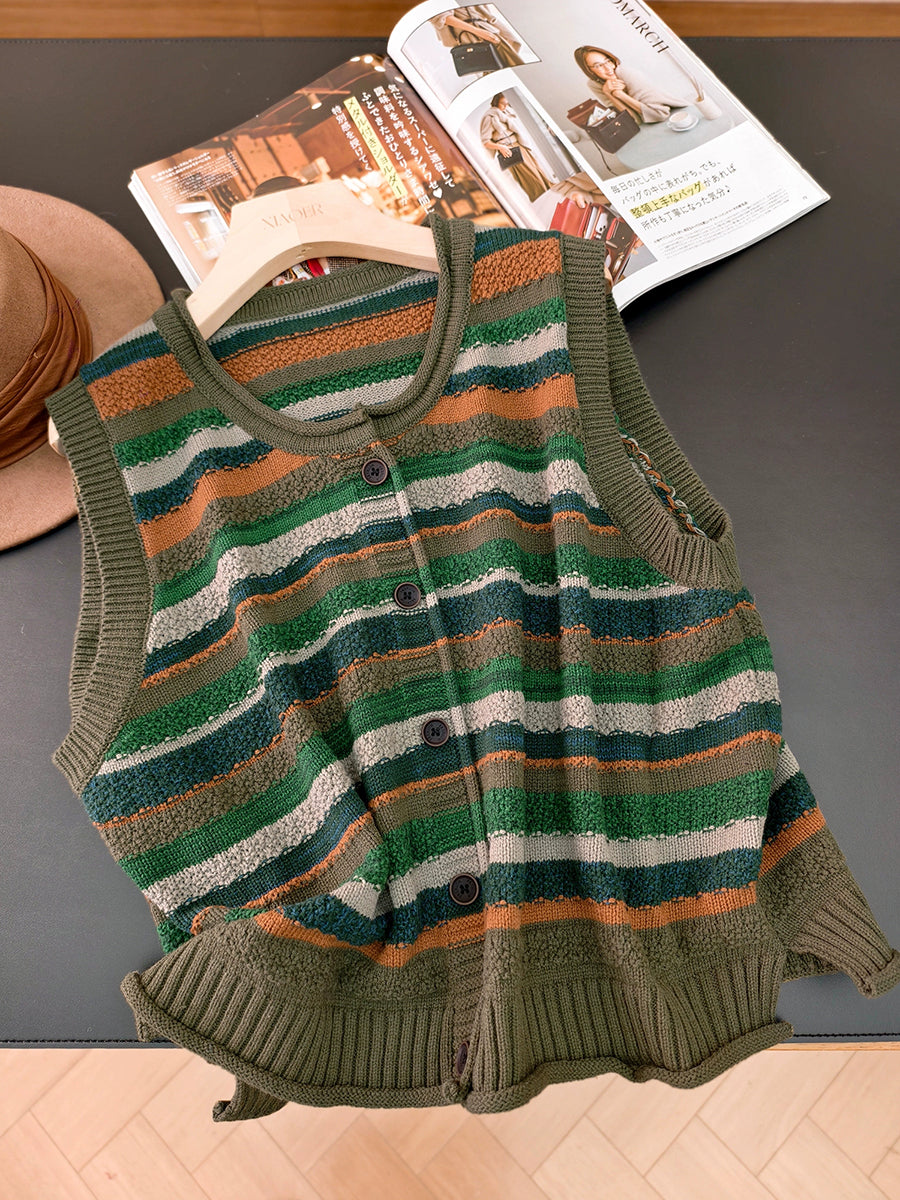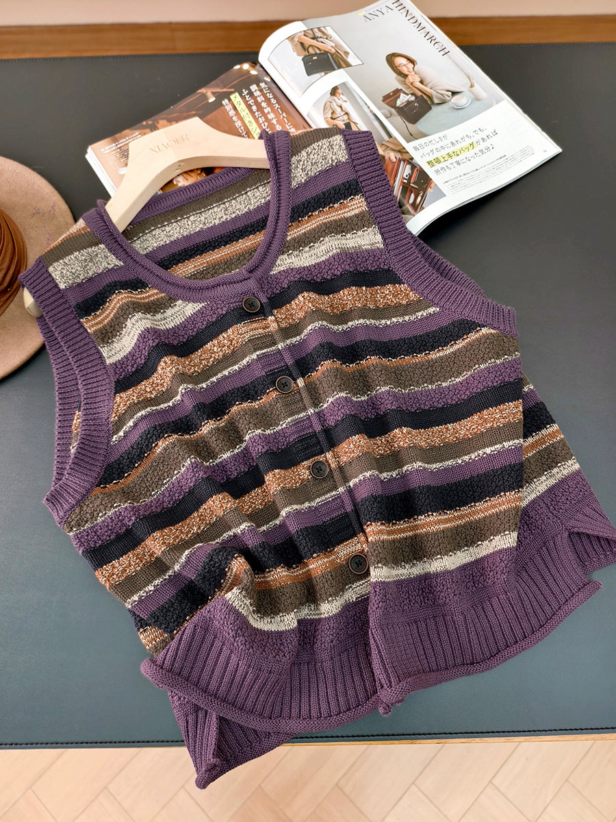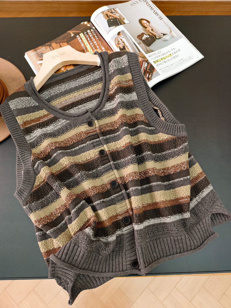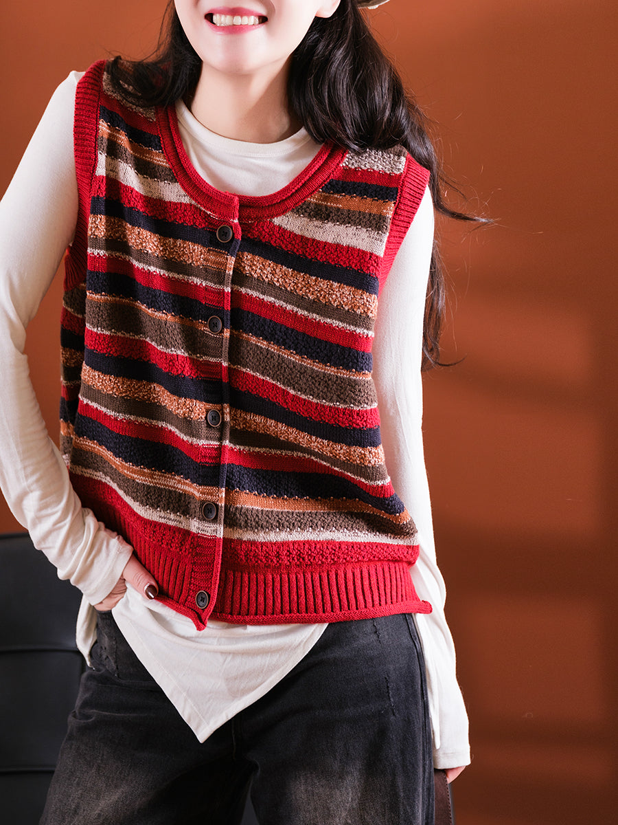 אפוד O-צוואר פסים אומנותי לנשים בסתיו