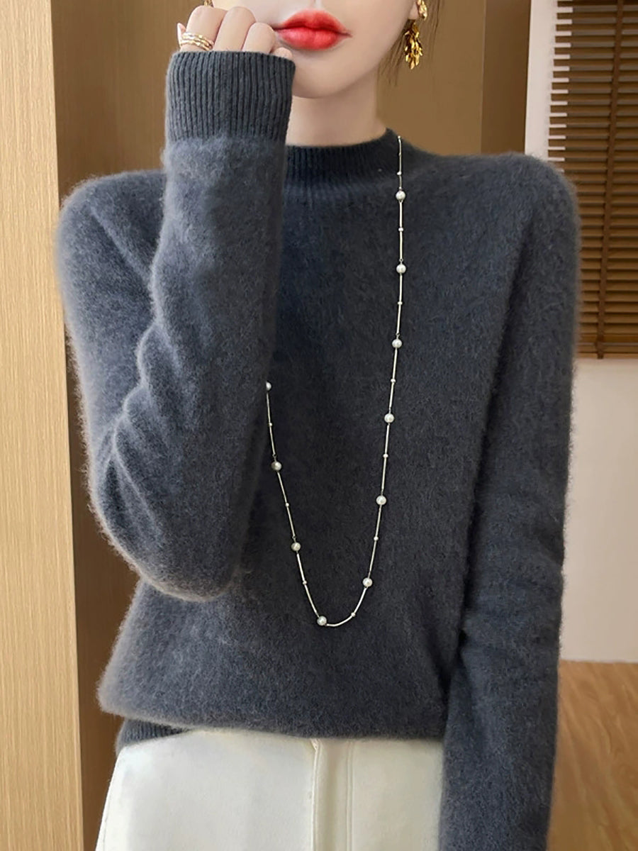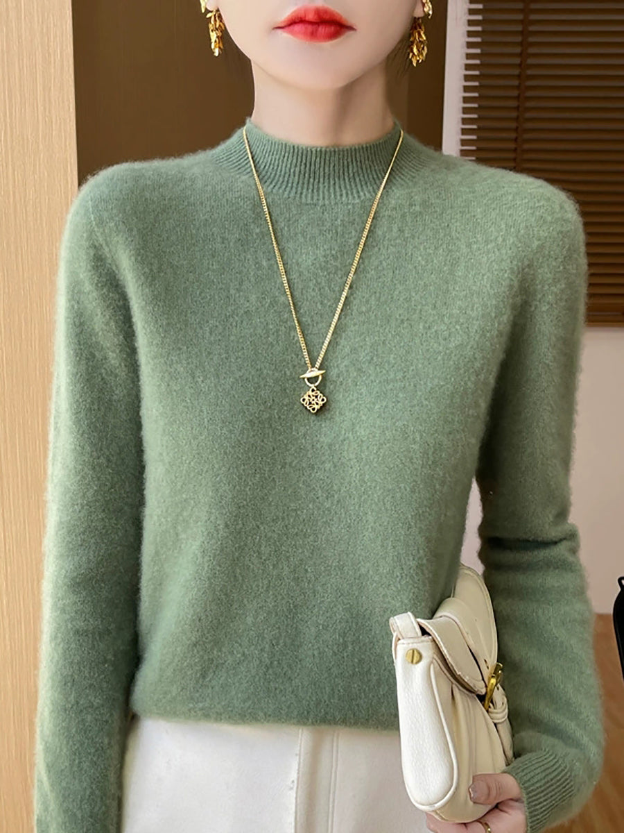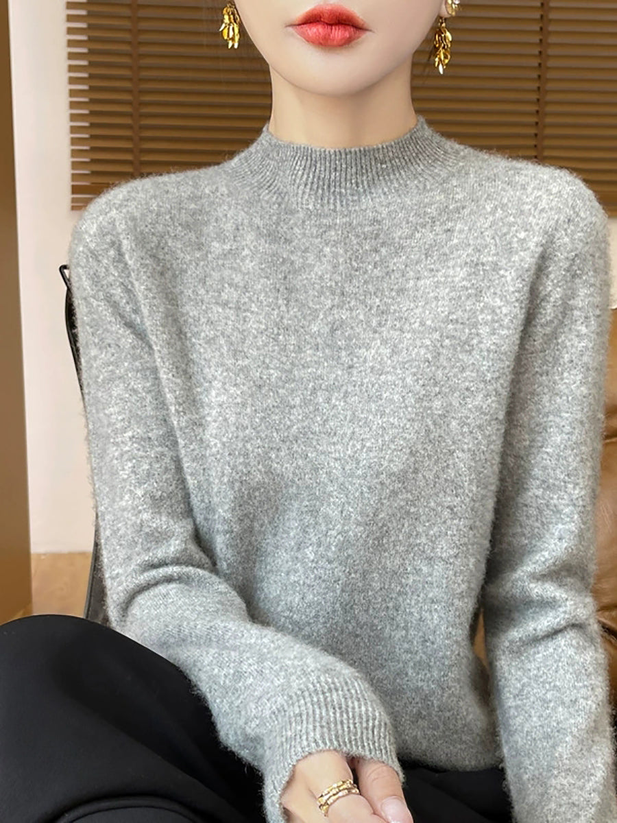 סוודר חצי גולף בצבע טהור בסתיו לנשים