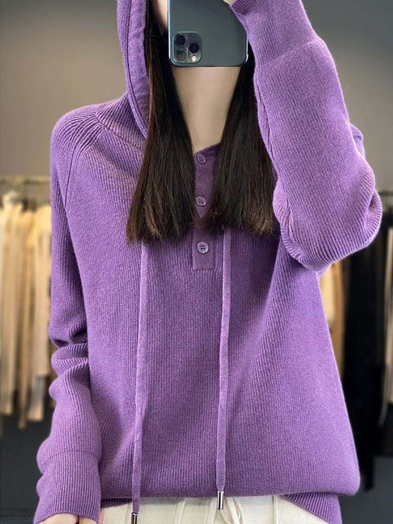 סוודר סרוג בצבע טהור מזדמן לנשים בסתיו