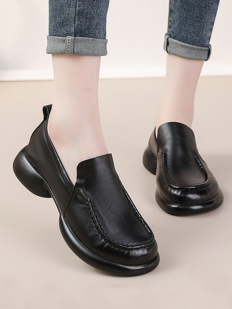 נעלי עור אמיתיות אלגנטיות לנשים בסתיו עם עקב בינוני