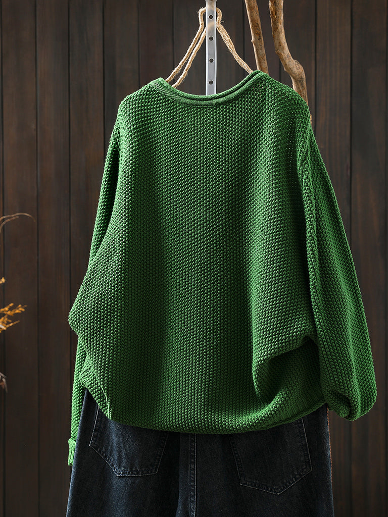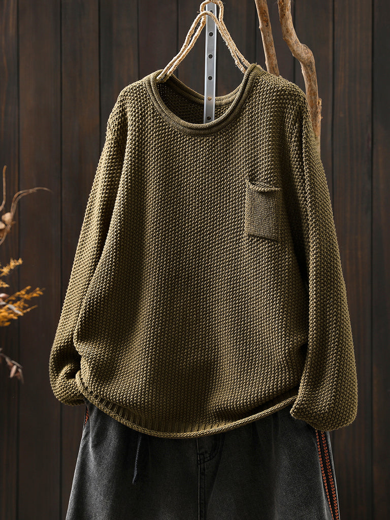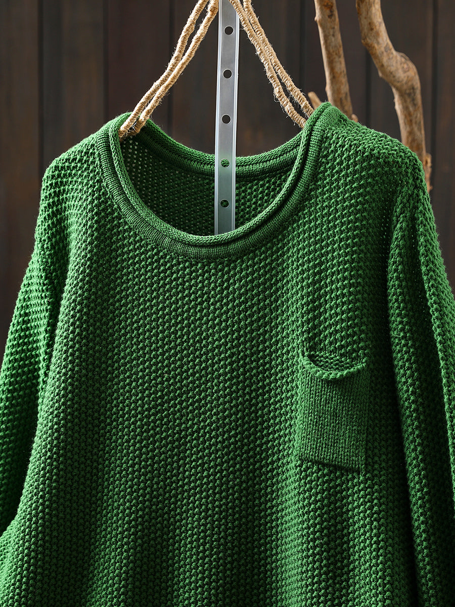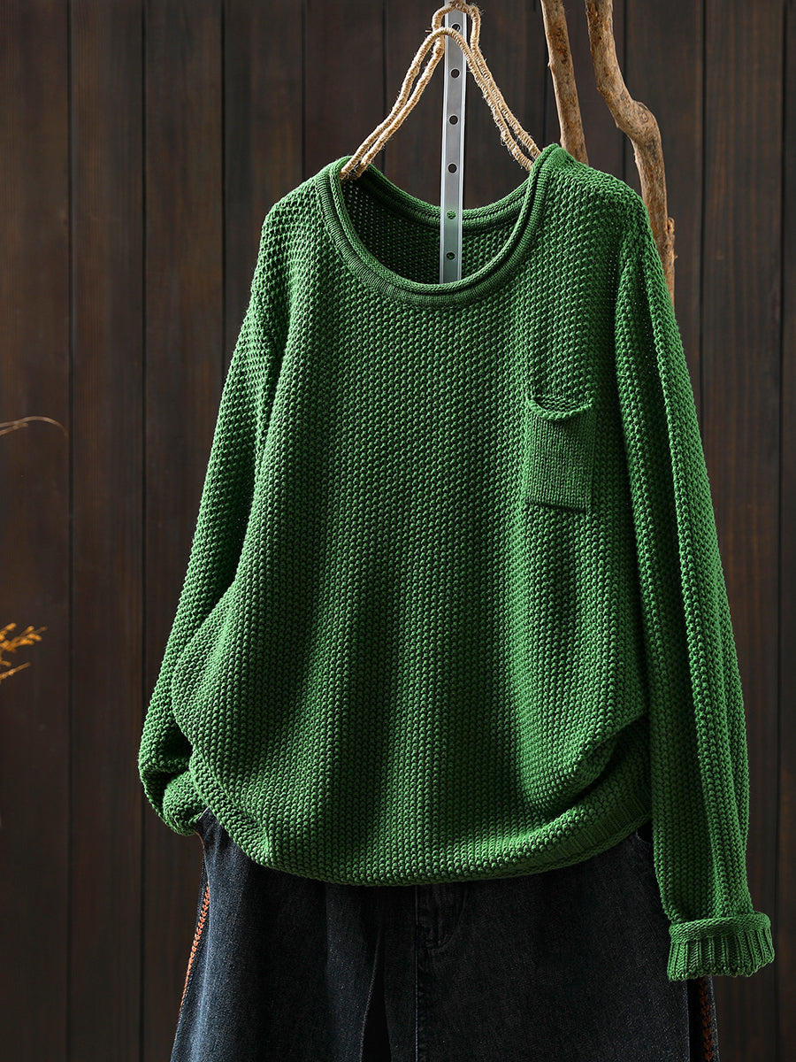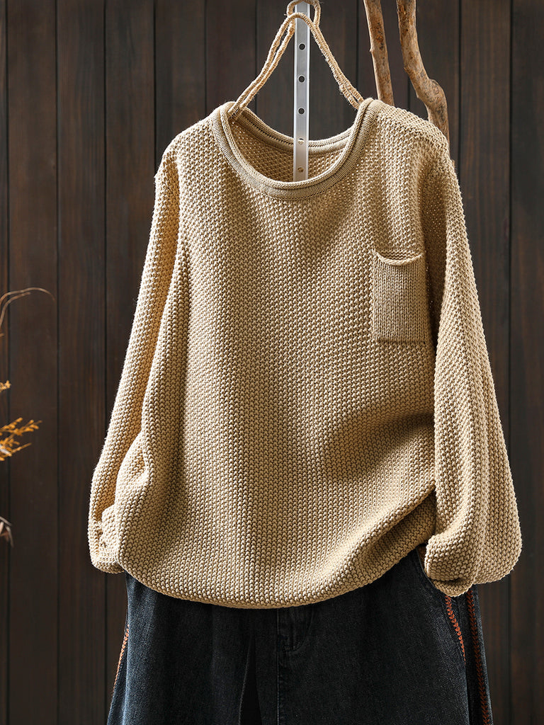 חולצת סרוגה לנשים בצבע טהור עם צווארון O 100% כותנה