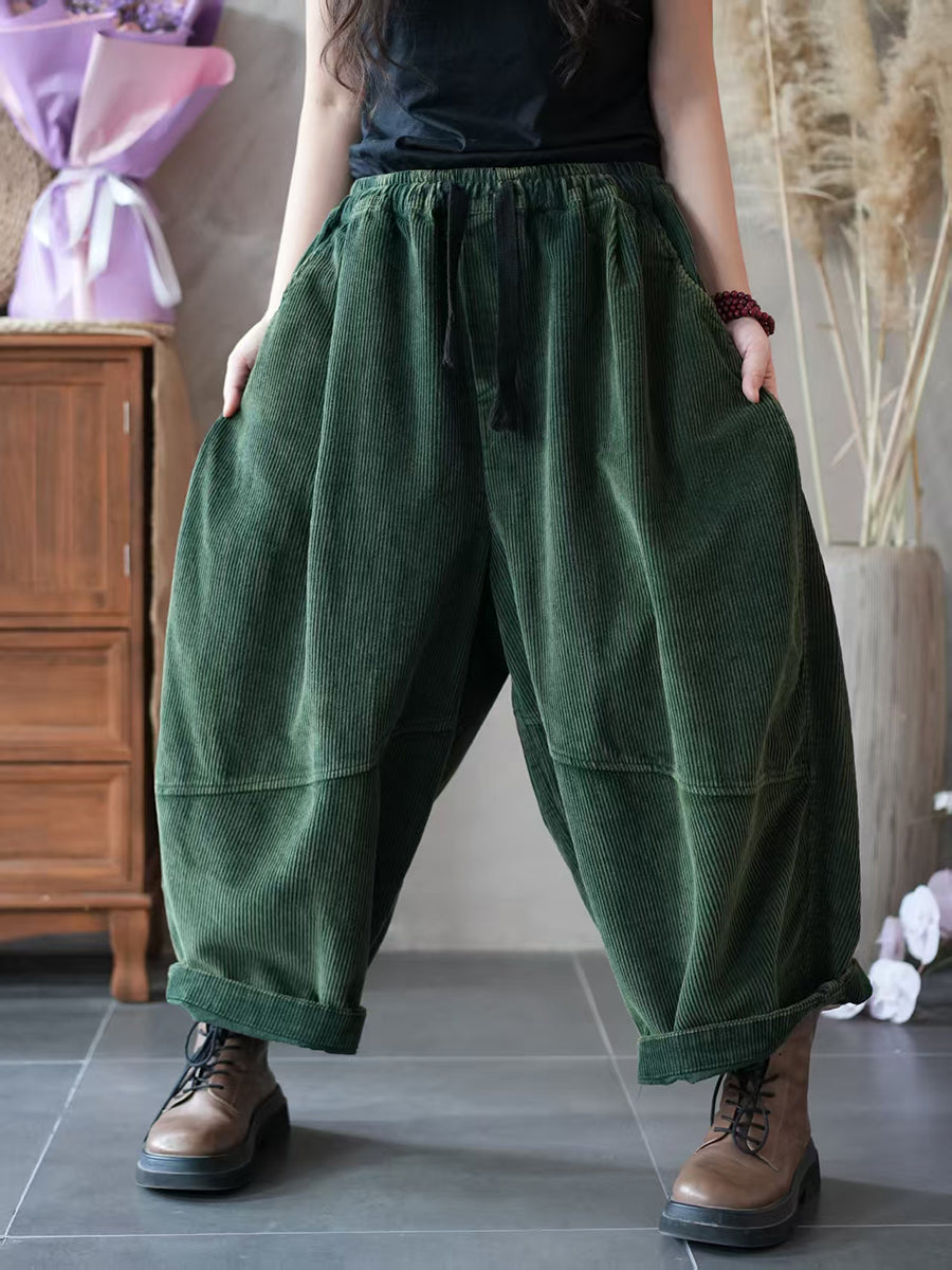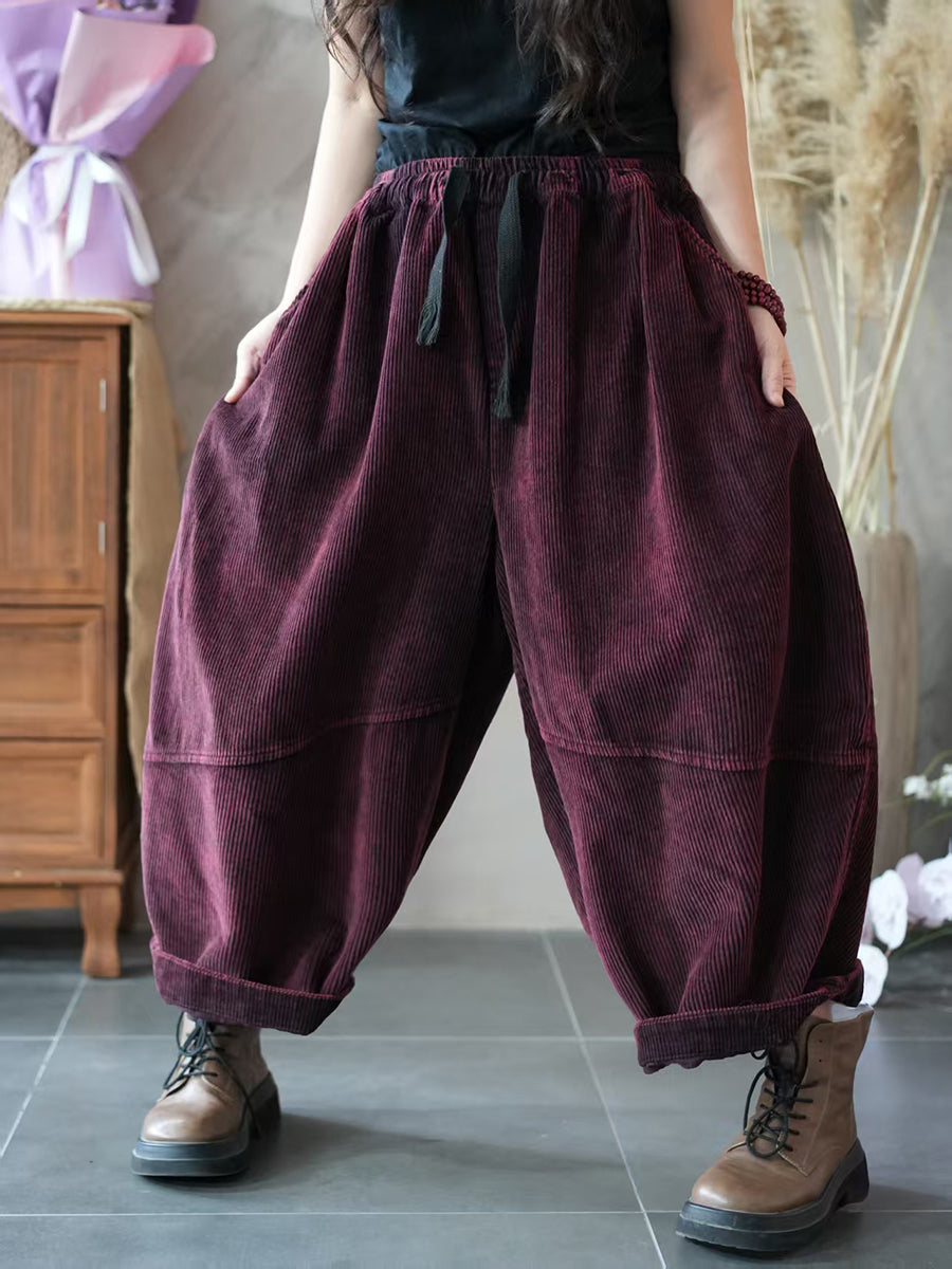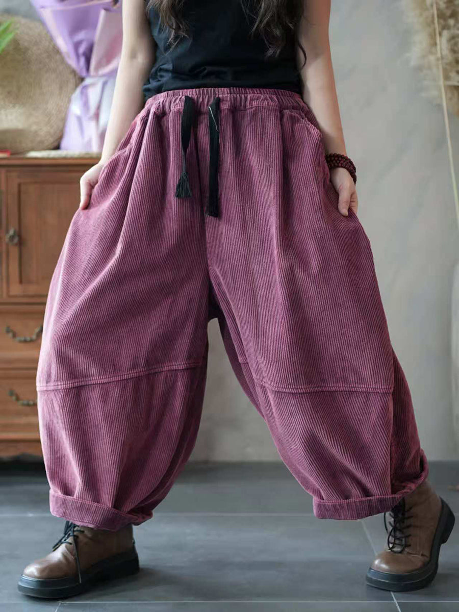 מכנסי הרמון קורדרוי בצבע טהור בסתיו לנשים