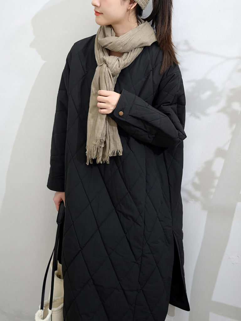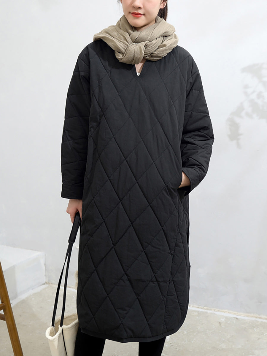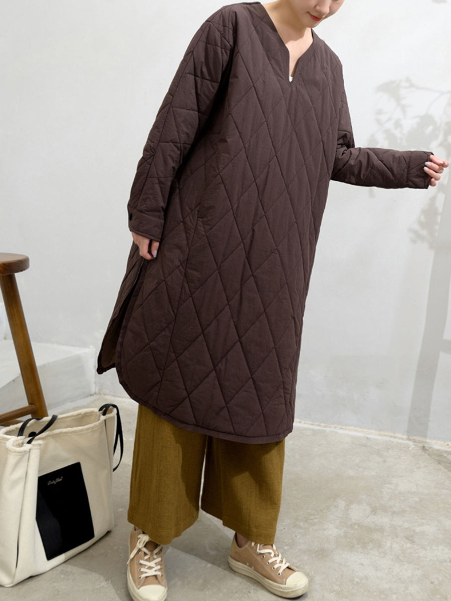 שמלת סתיו טהורה עם צווארון V מרופדת לנשים