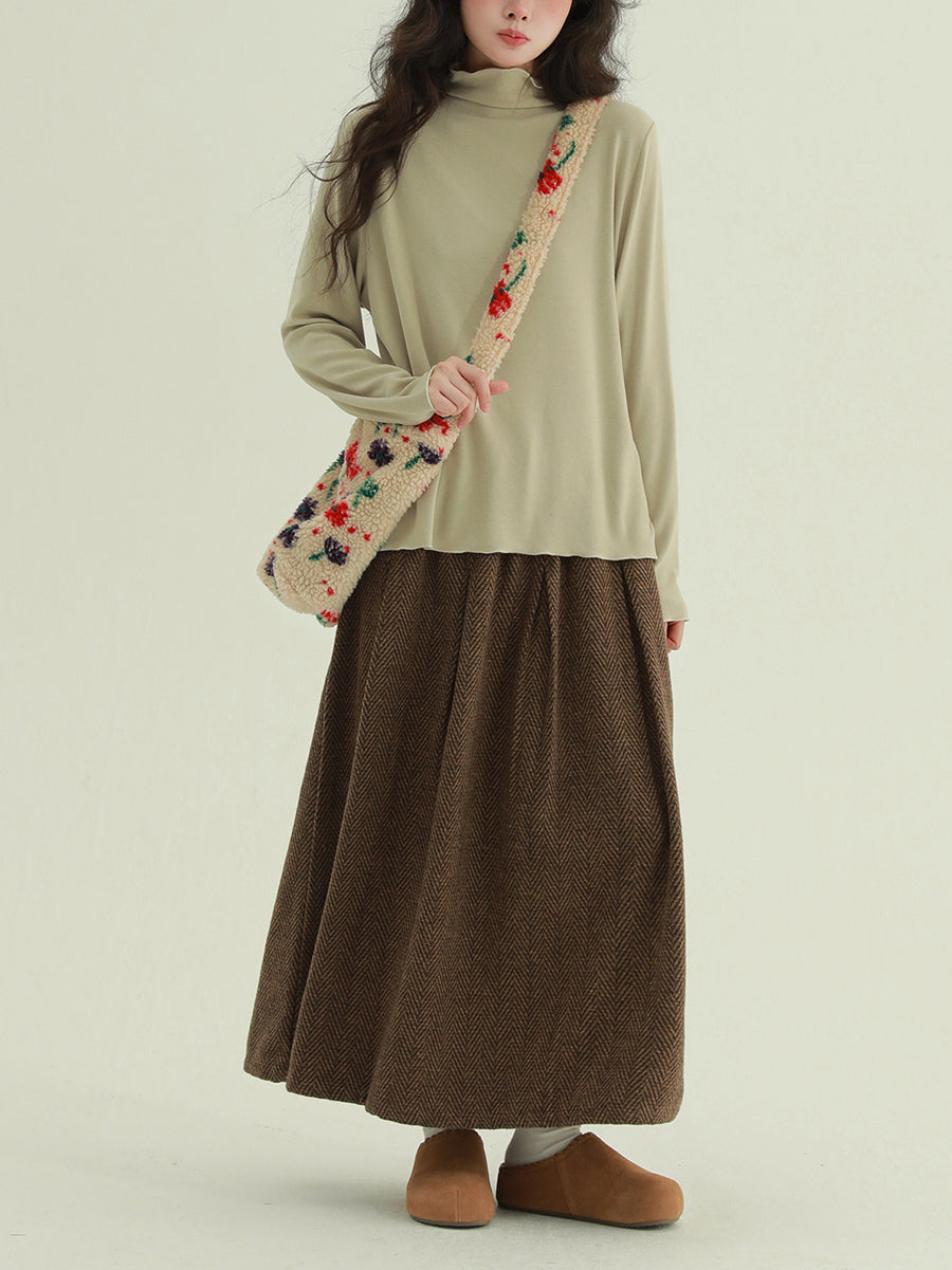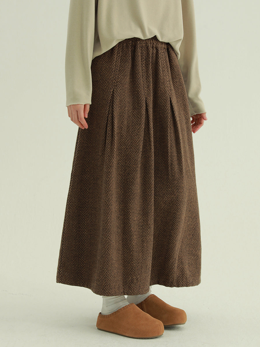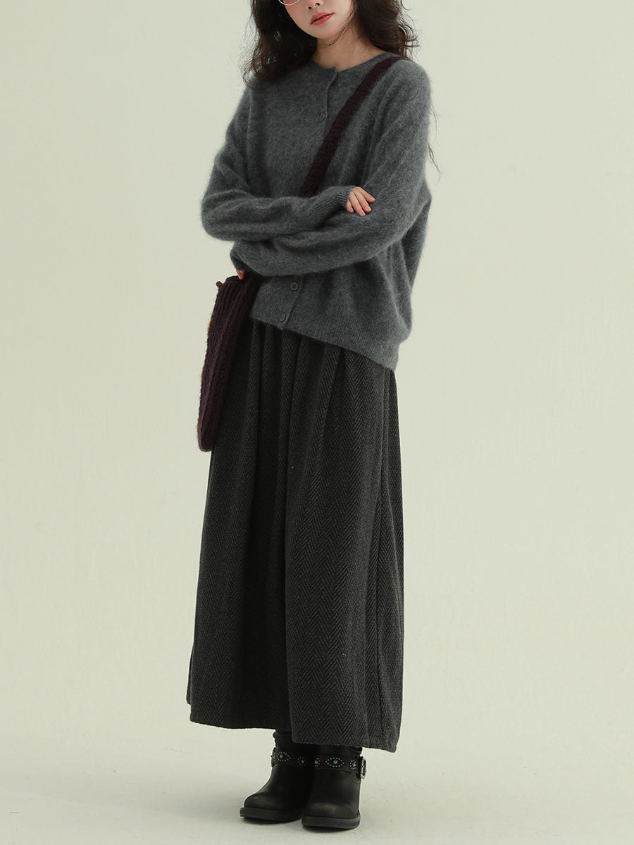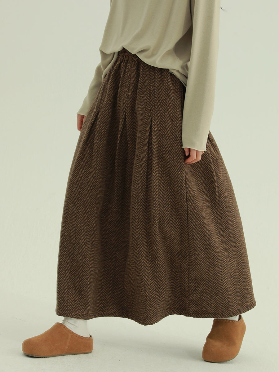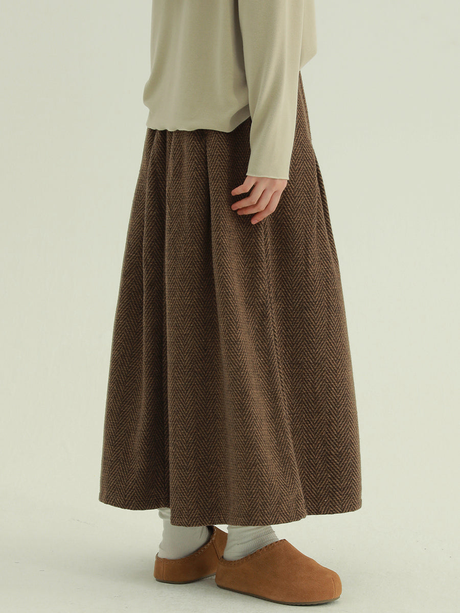 חצאית בגזרה A בצבע טהור בסגנון רטרו סתיו לנשים