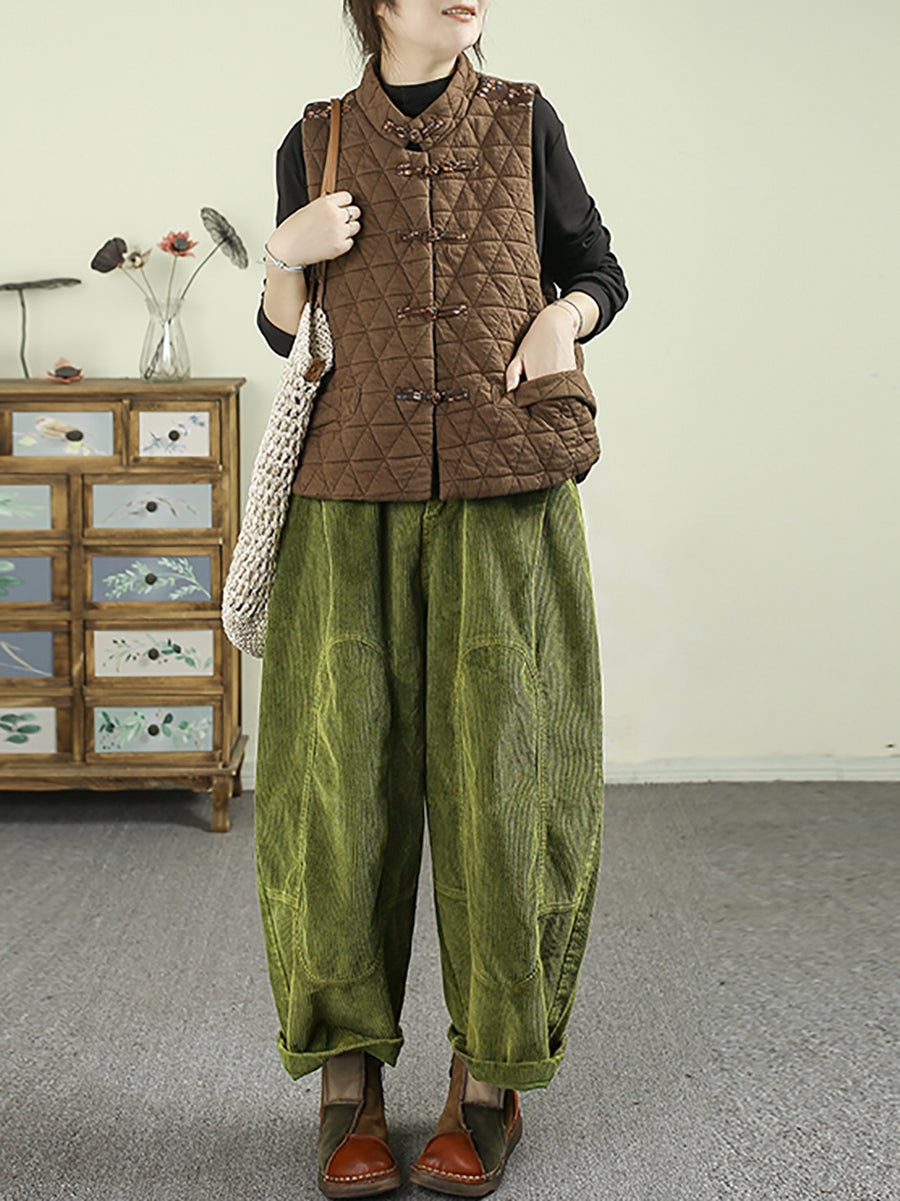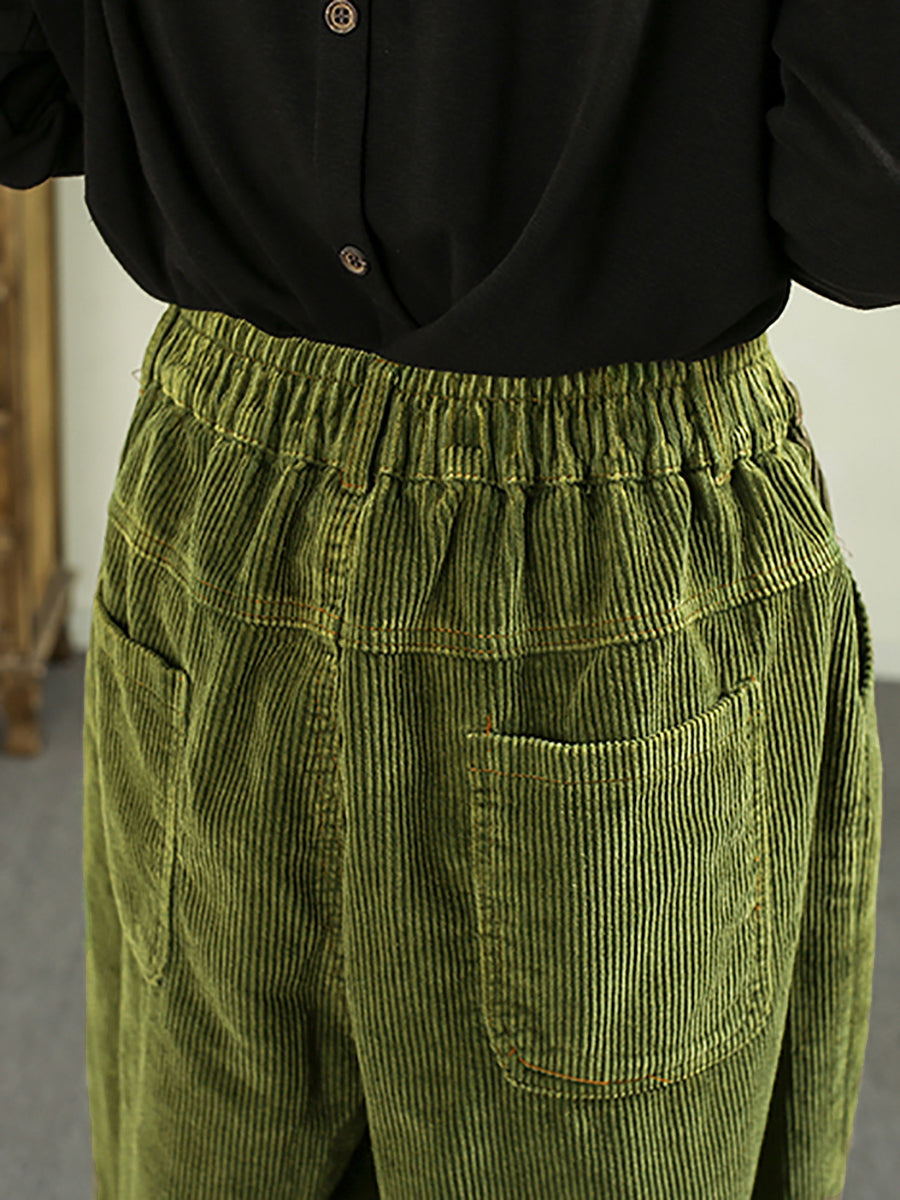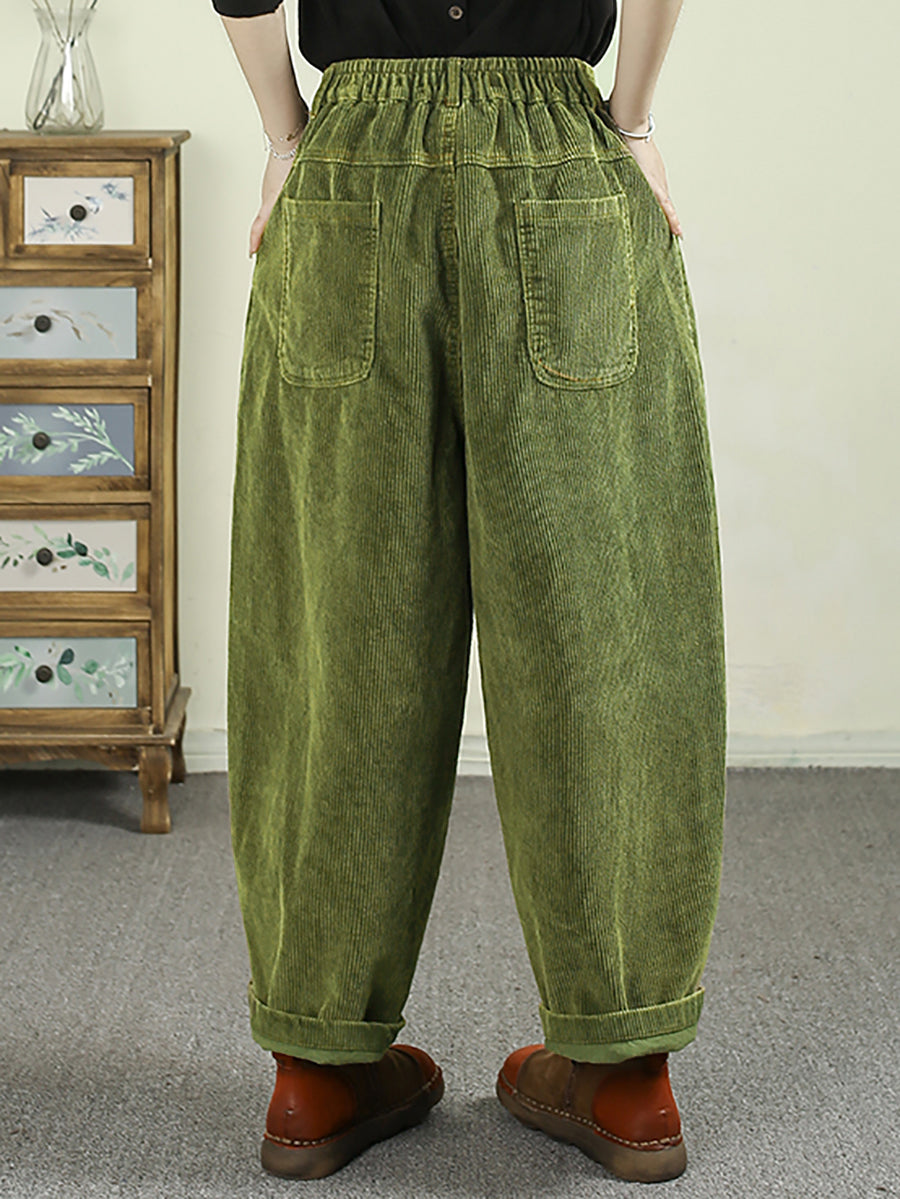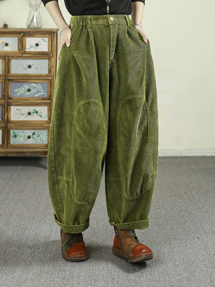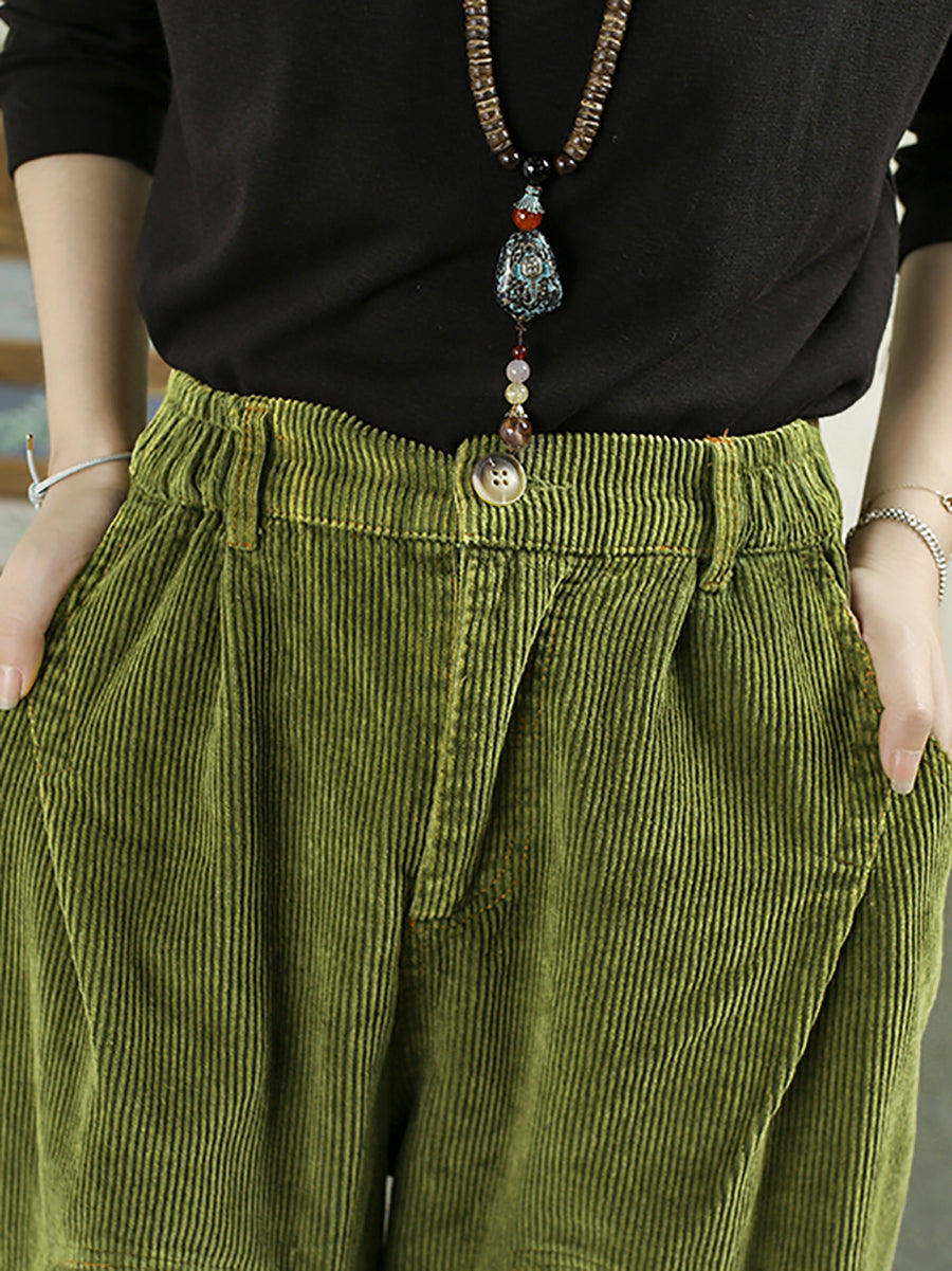 מכנסי הרמון קורדרוי בצבע טהור בסגנון רטרו לנשים