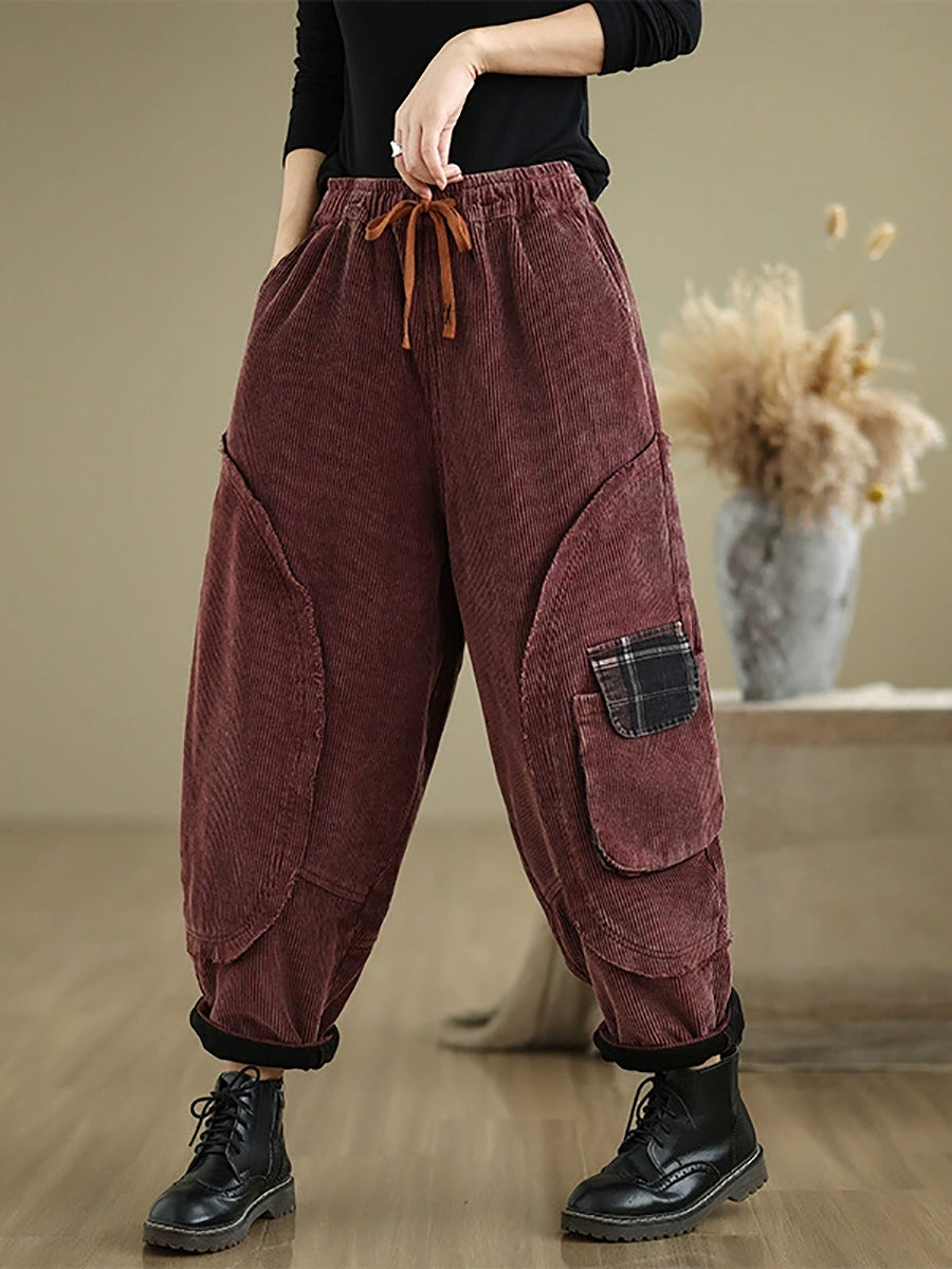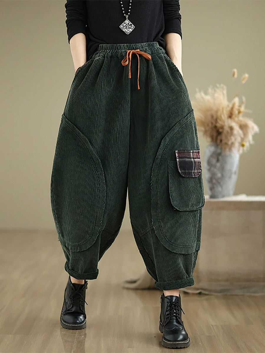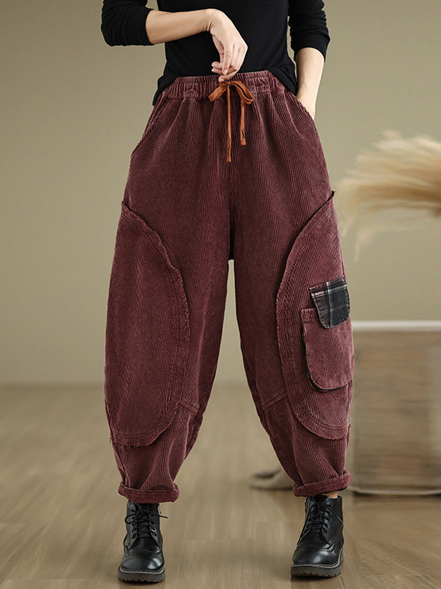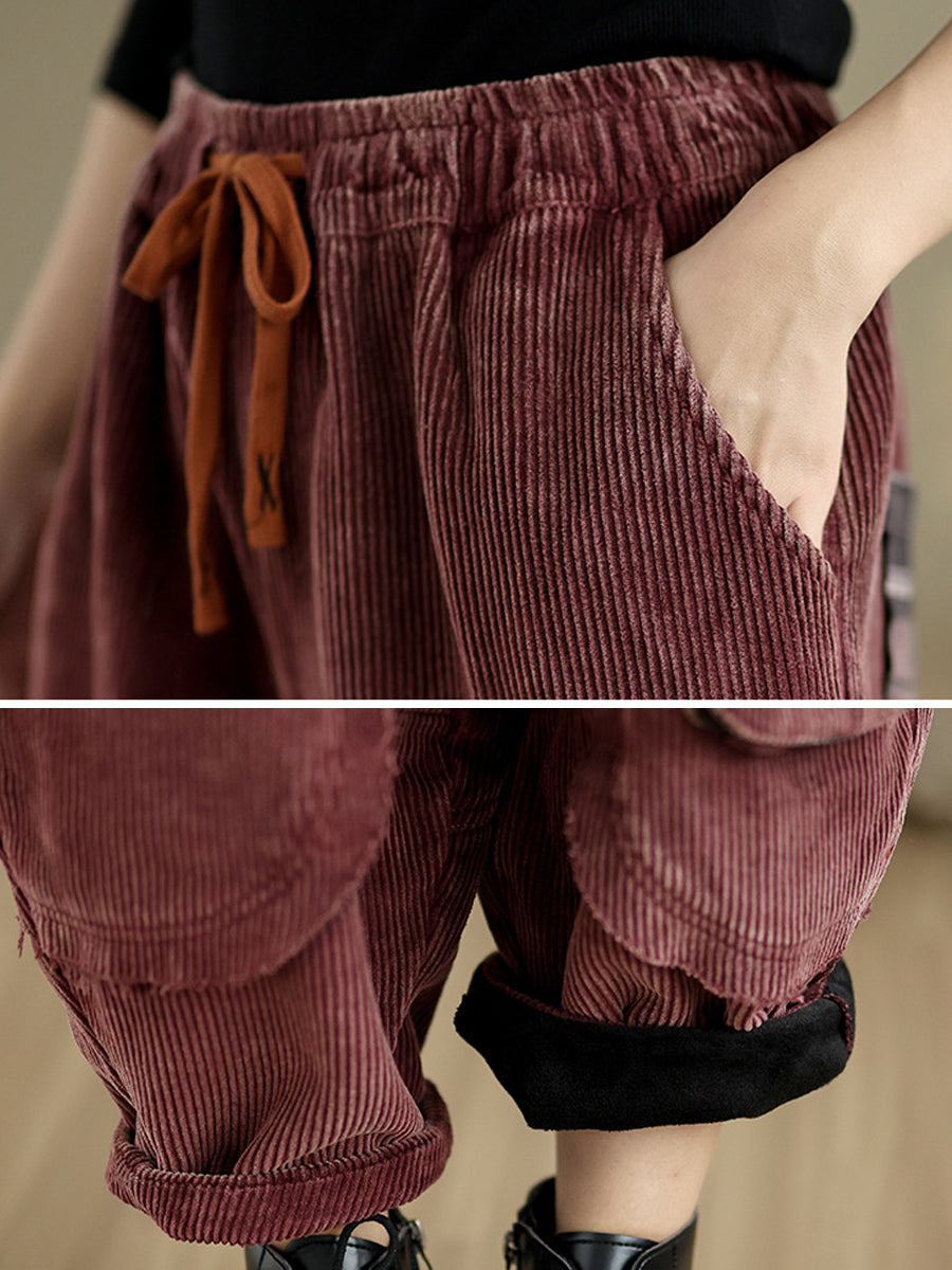 מכנסי הרמון קורדרוי בצבע טהור בסגנון רטרו לנשים