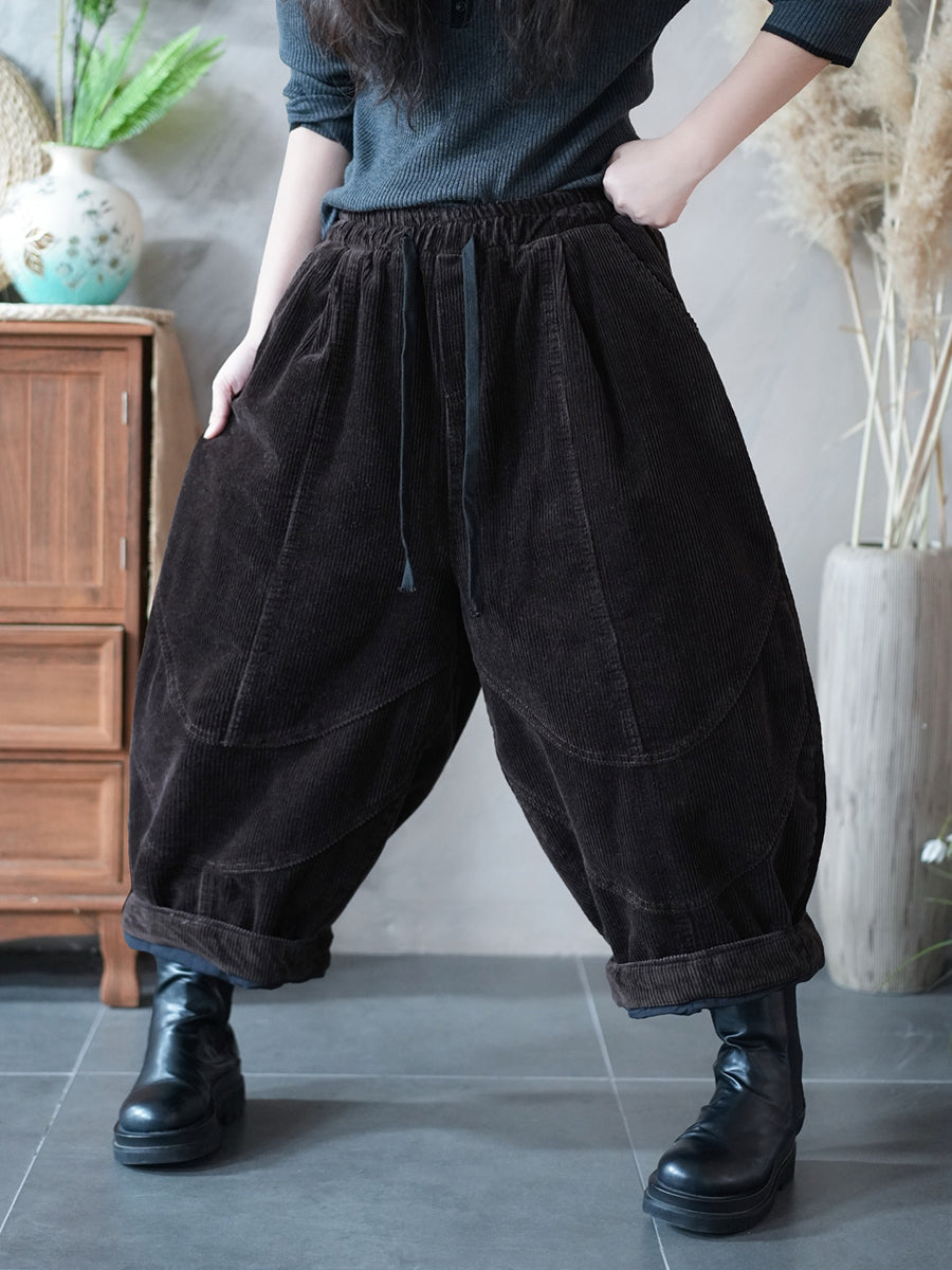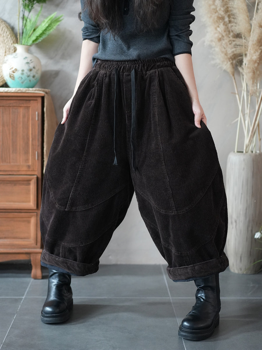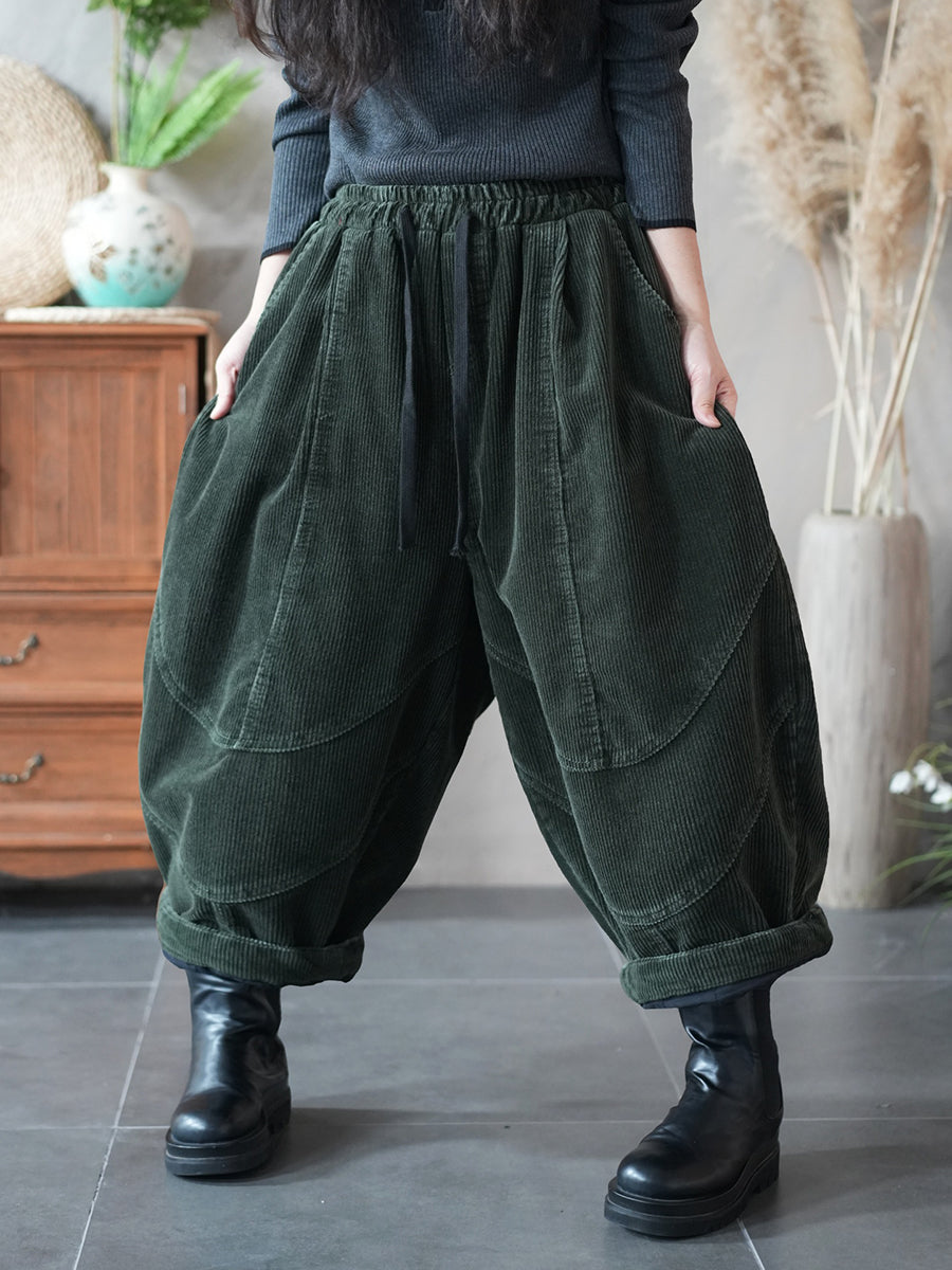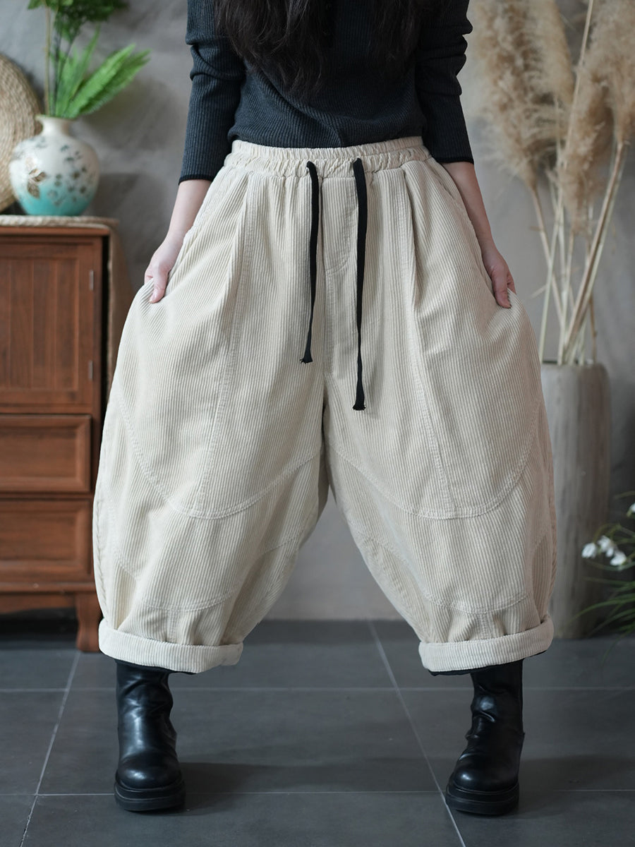 מכנסי הרמון קורדרוי בצבע טהור בסגנון רטרו לנשים