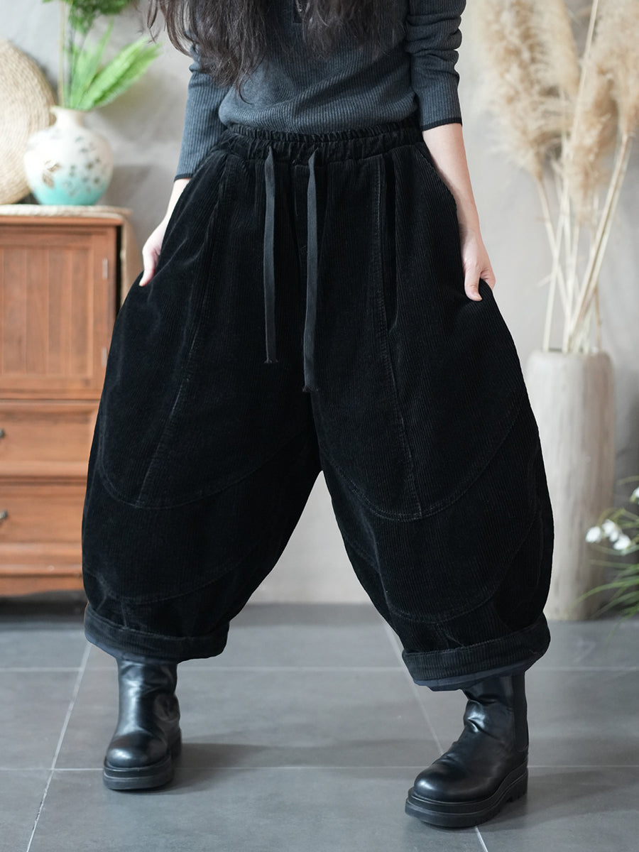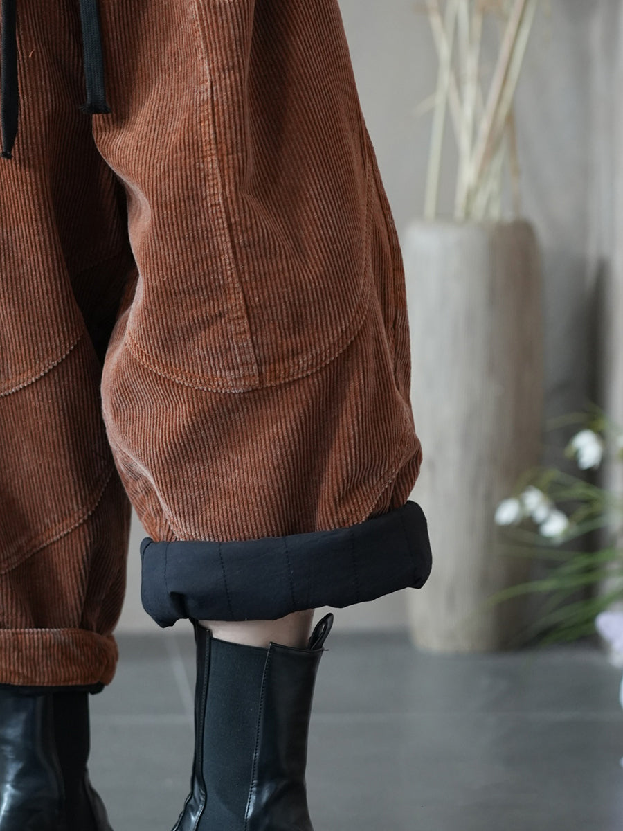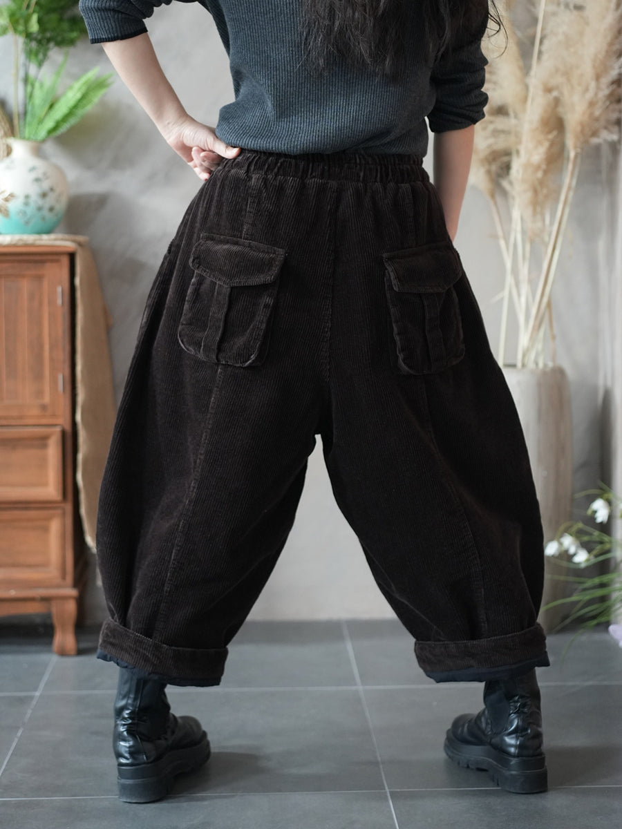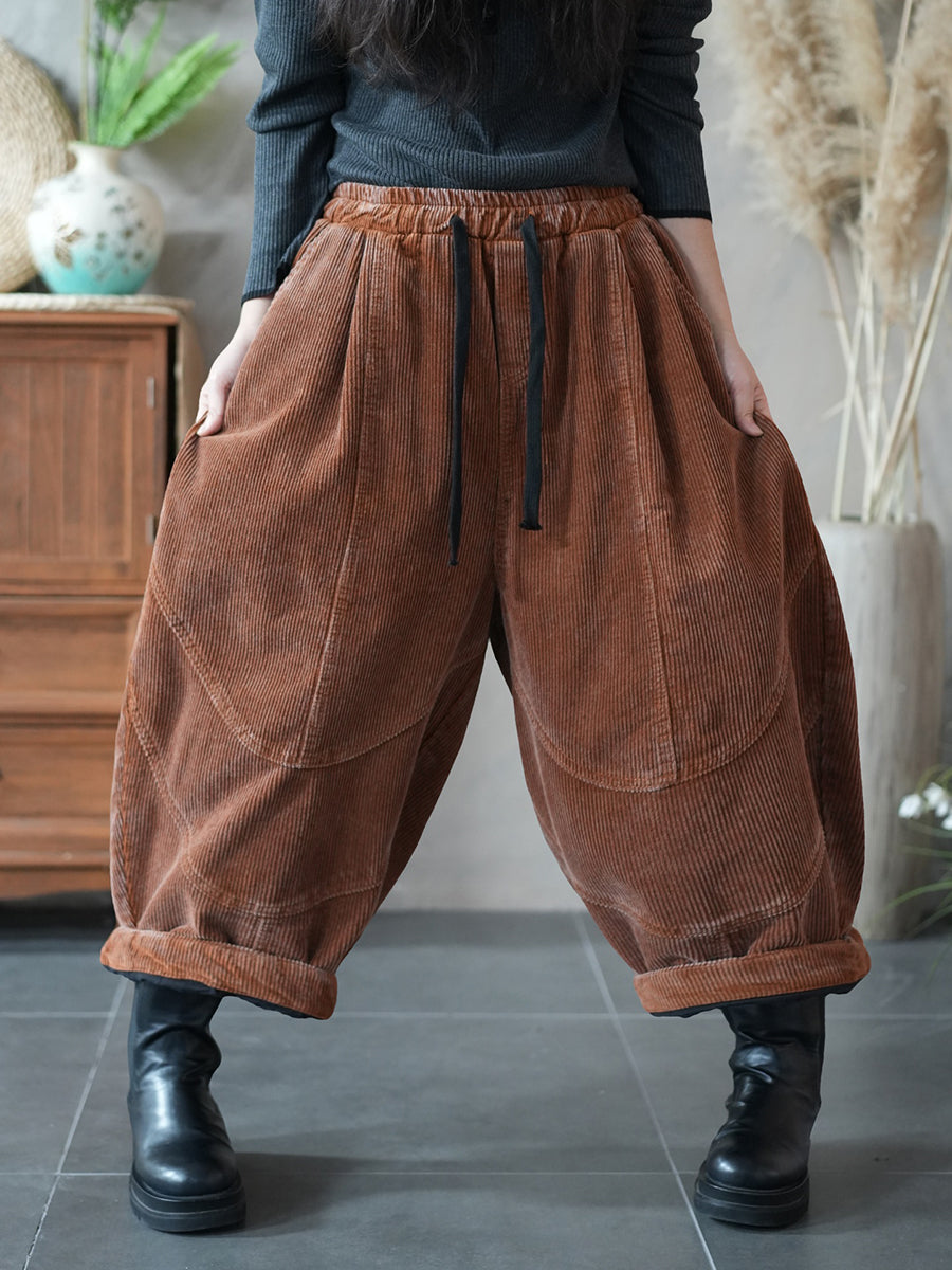 מכנסי הרמון קורדרוי בצבע טהור בסגנון רטרו לנשים