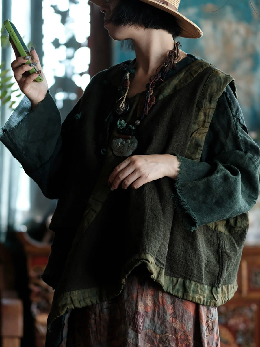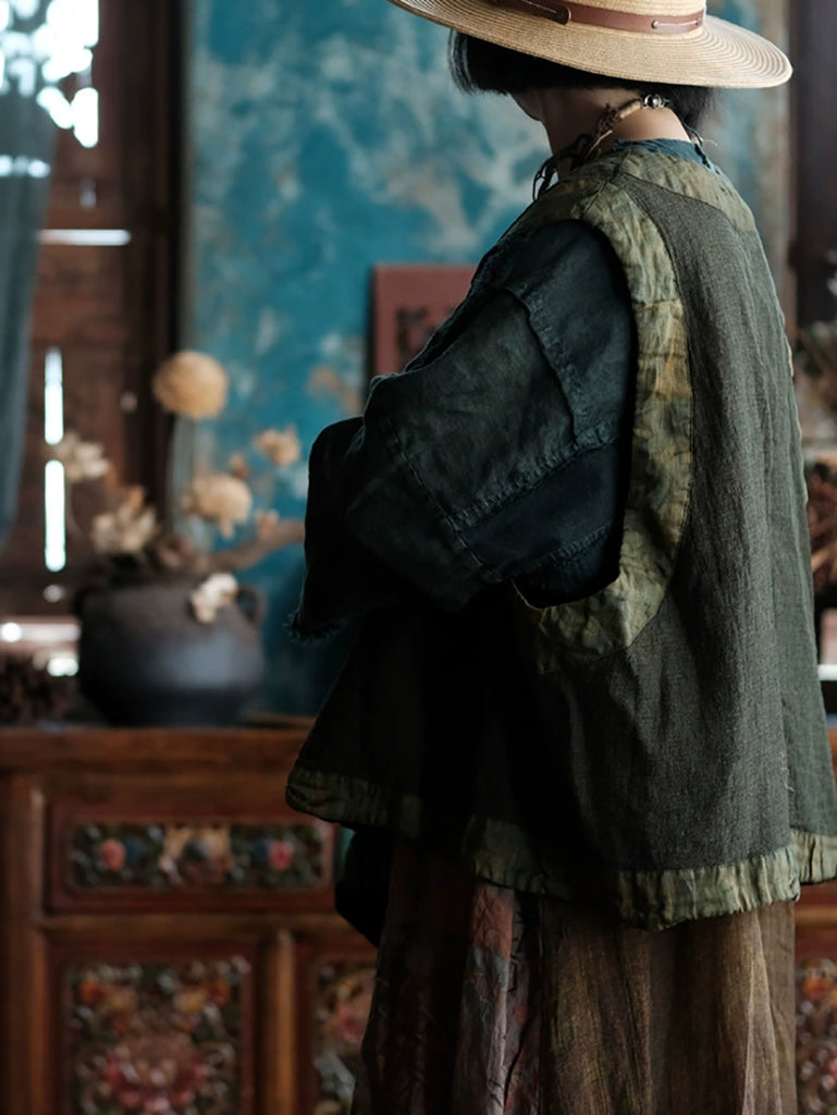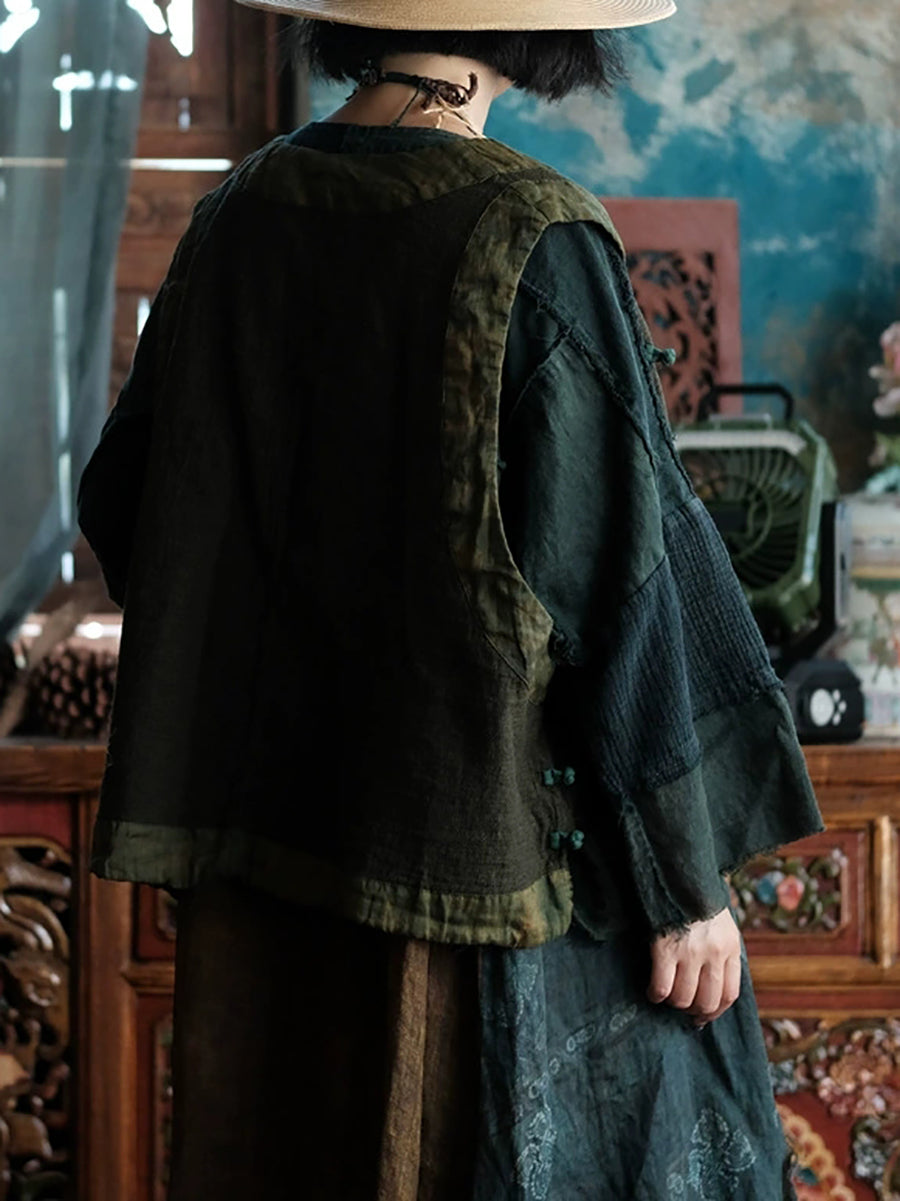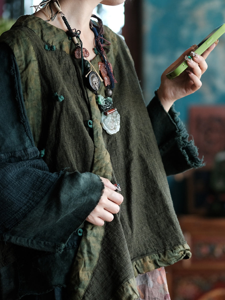 אפוד כותנה עם צווארון V וצווארון V בסגנון רטרו בסגנון סתיו לנשים