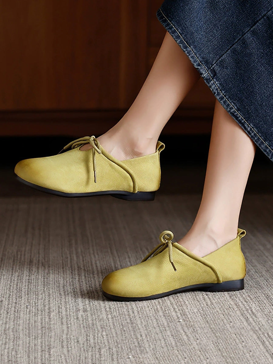 נעלי סתיו רכות מעור אמיתי לנשים עם עקב נמוך