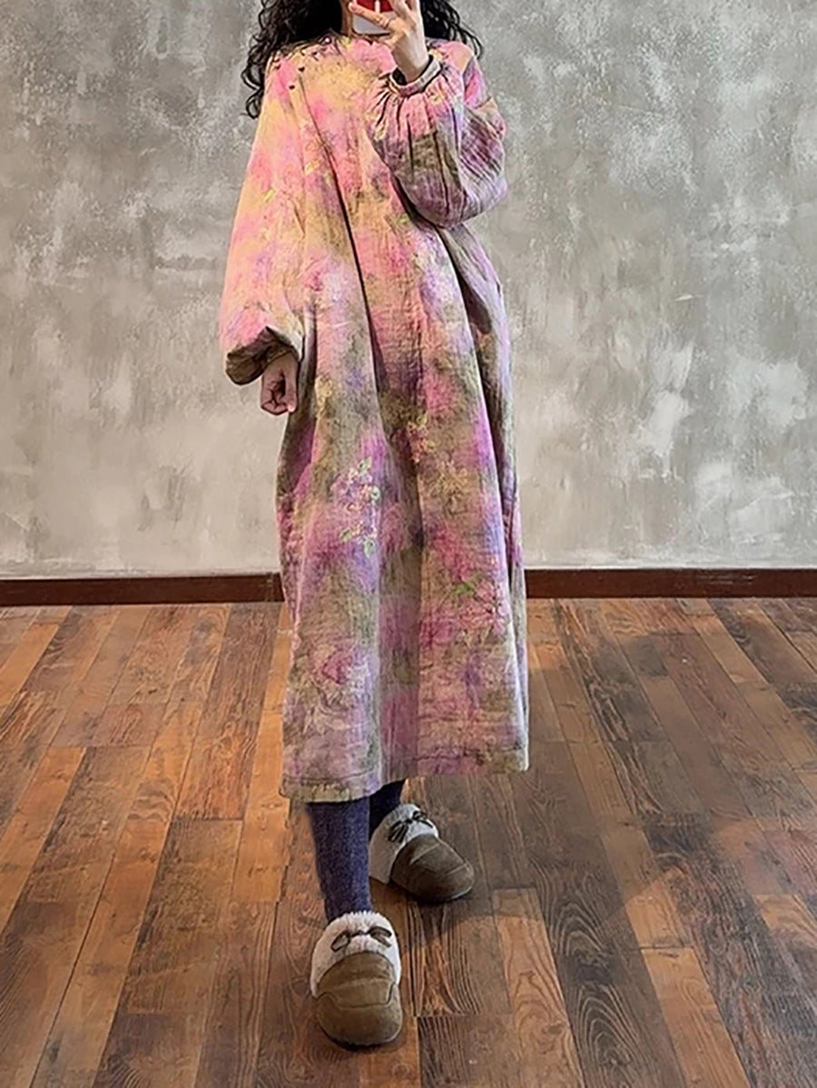 שמלת סתיו לנשים עם צווארון עומד 100% כותנה רפויה