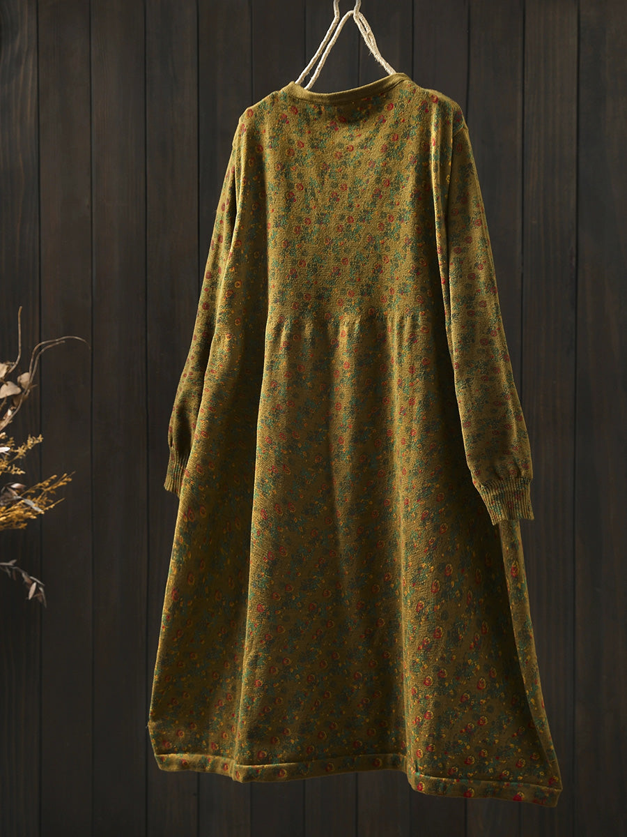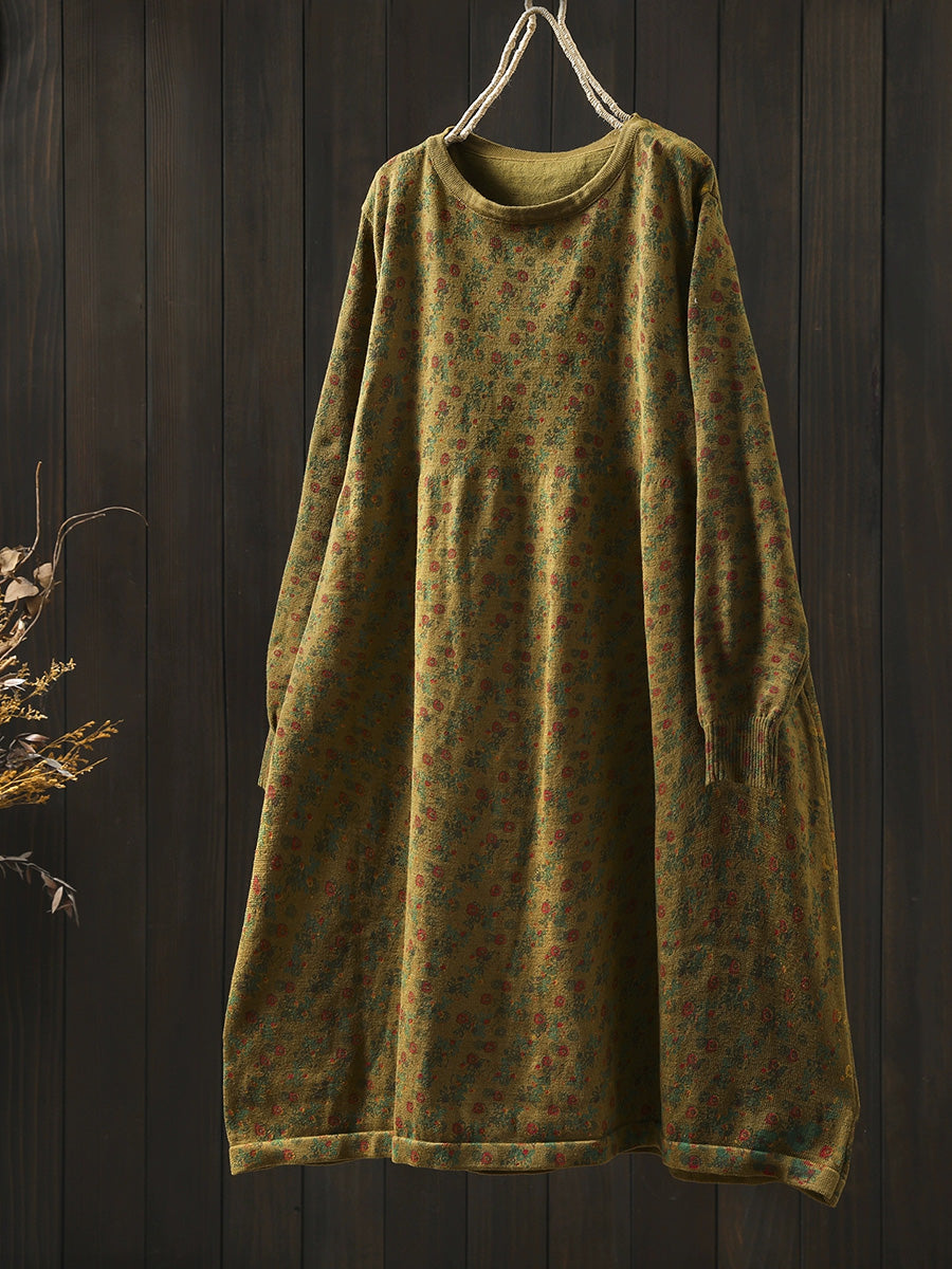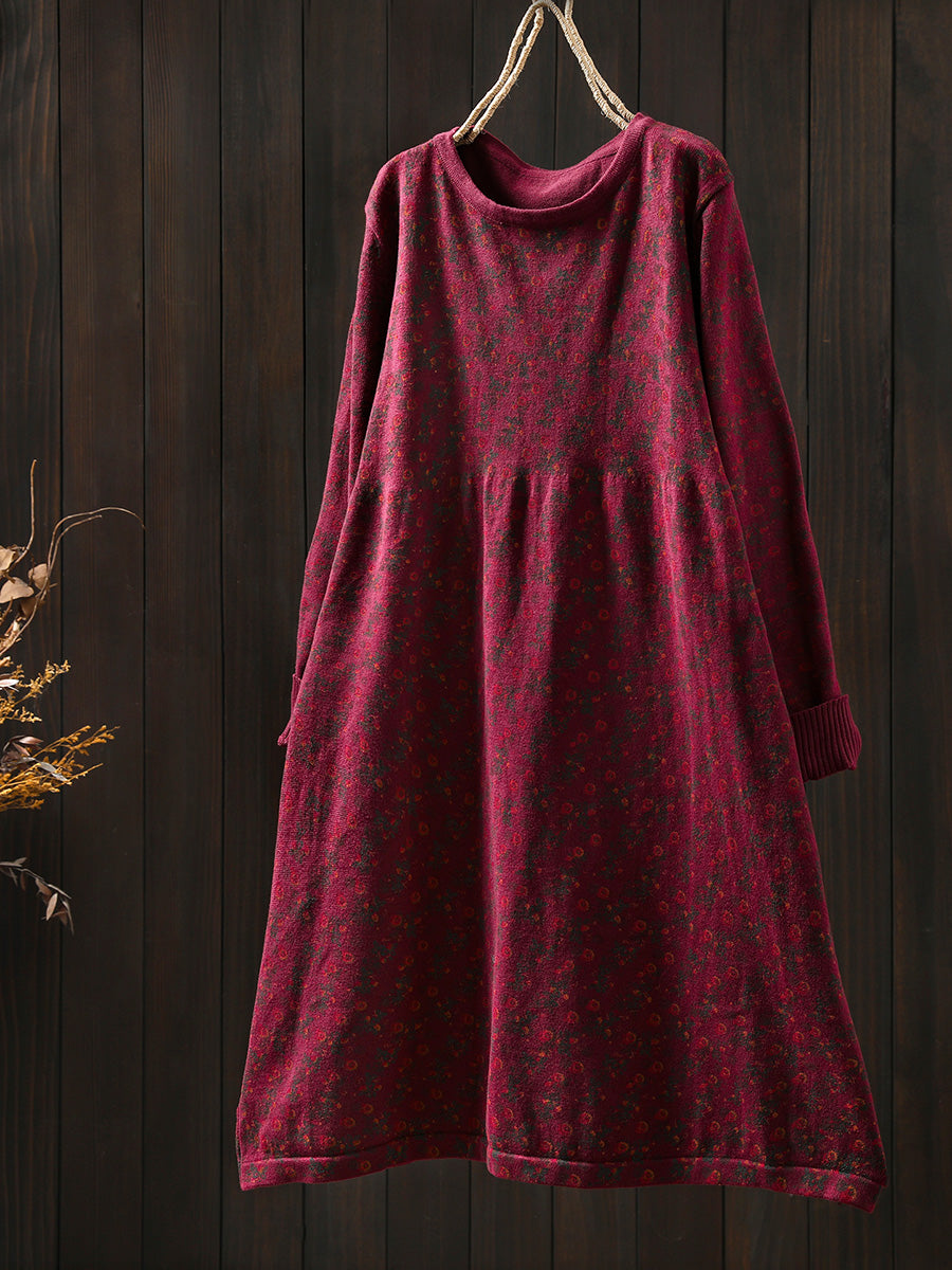 שמלת סרוגה פרחונית וינטג' לנשים עם צווארון O