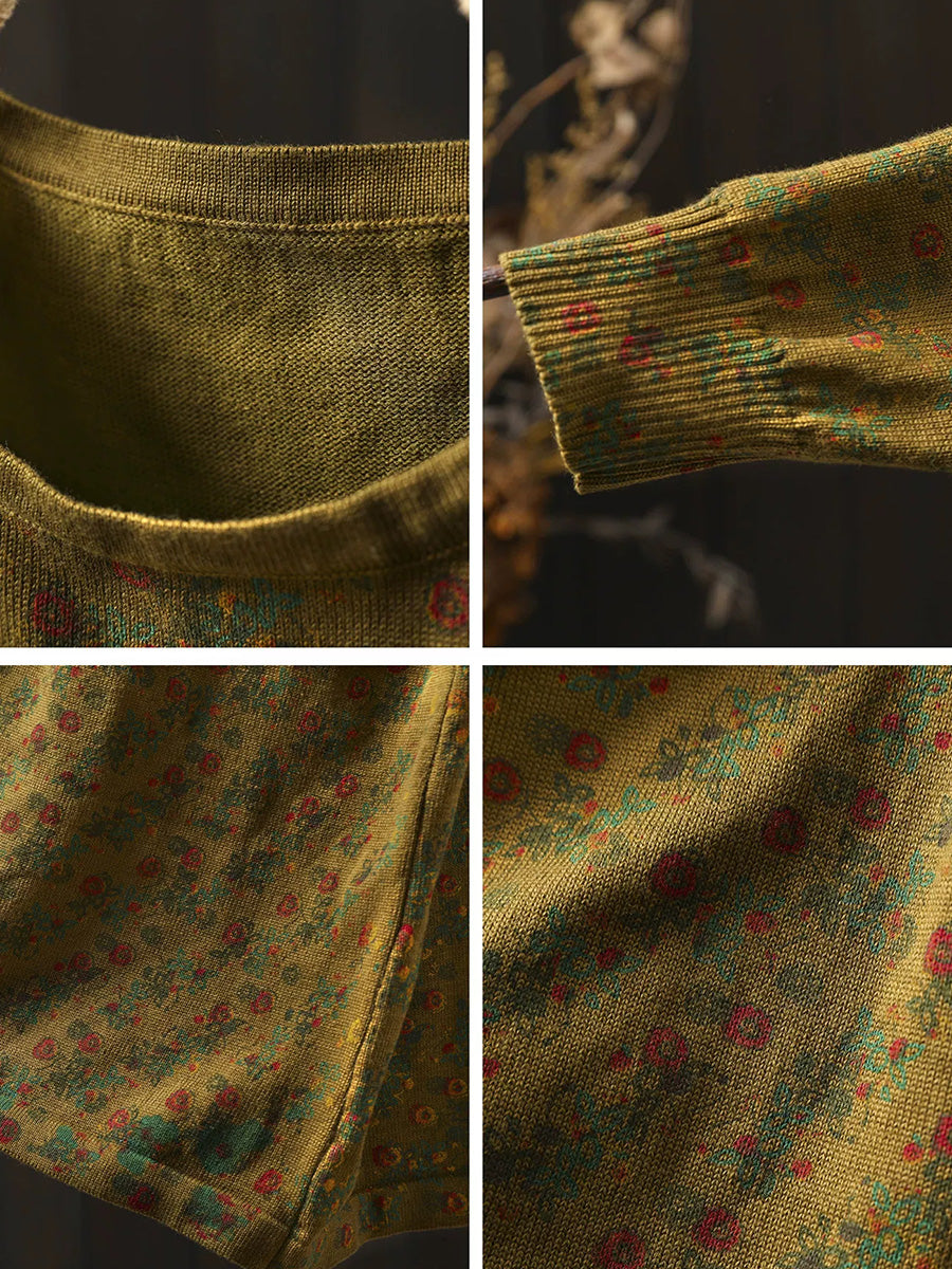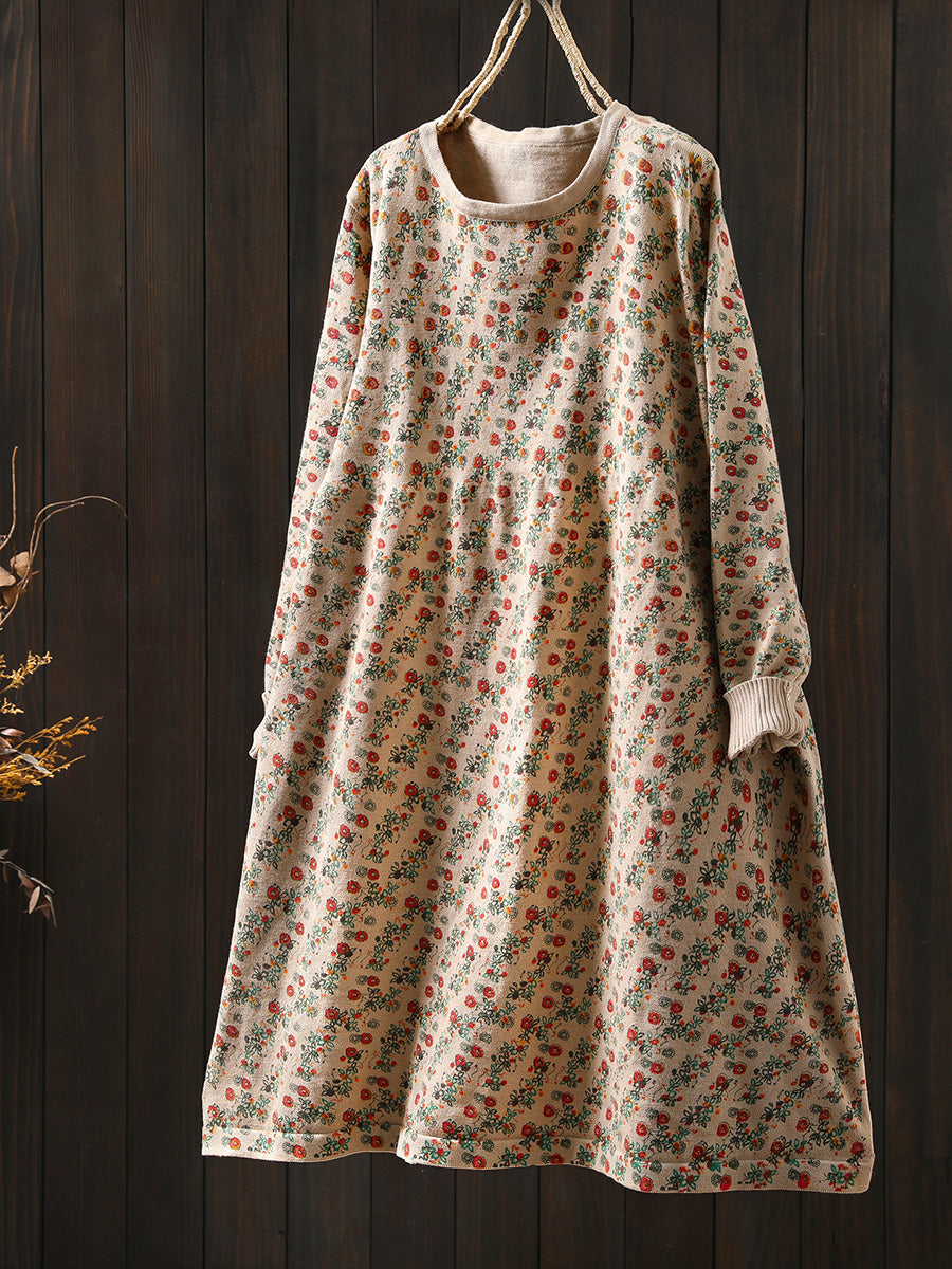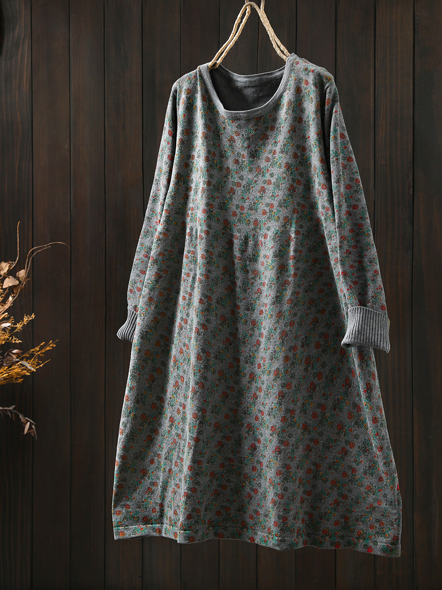 שמלת סרוגה פרחונית וינטג' לנשים עם צווארון O