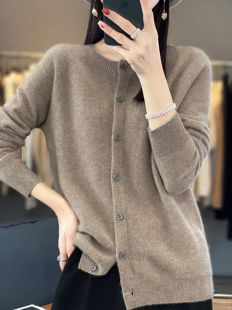 נשים סתיו סוודר צמר O-Neck סוודר סריג קרדיגן