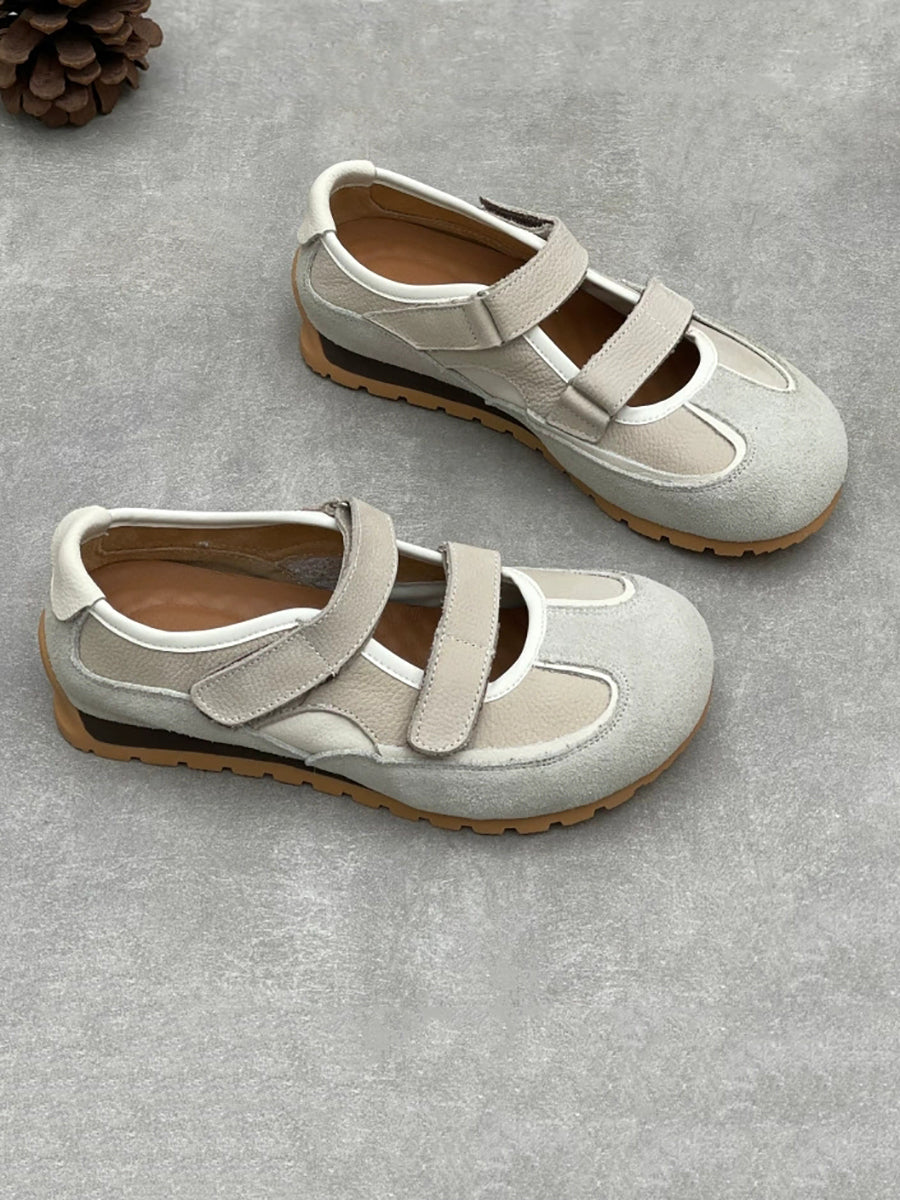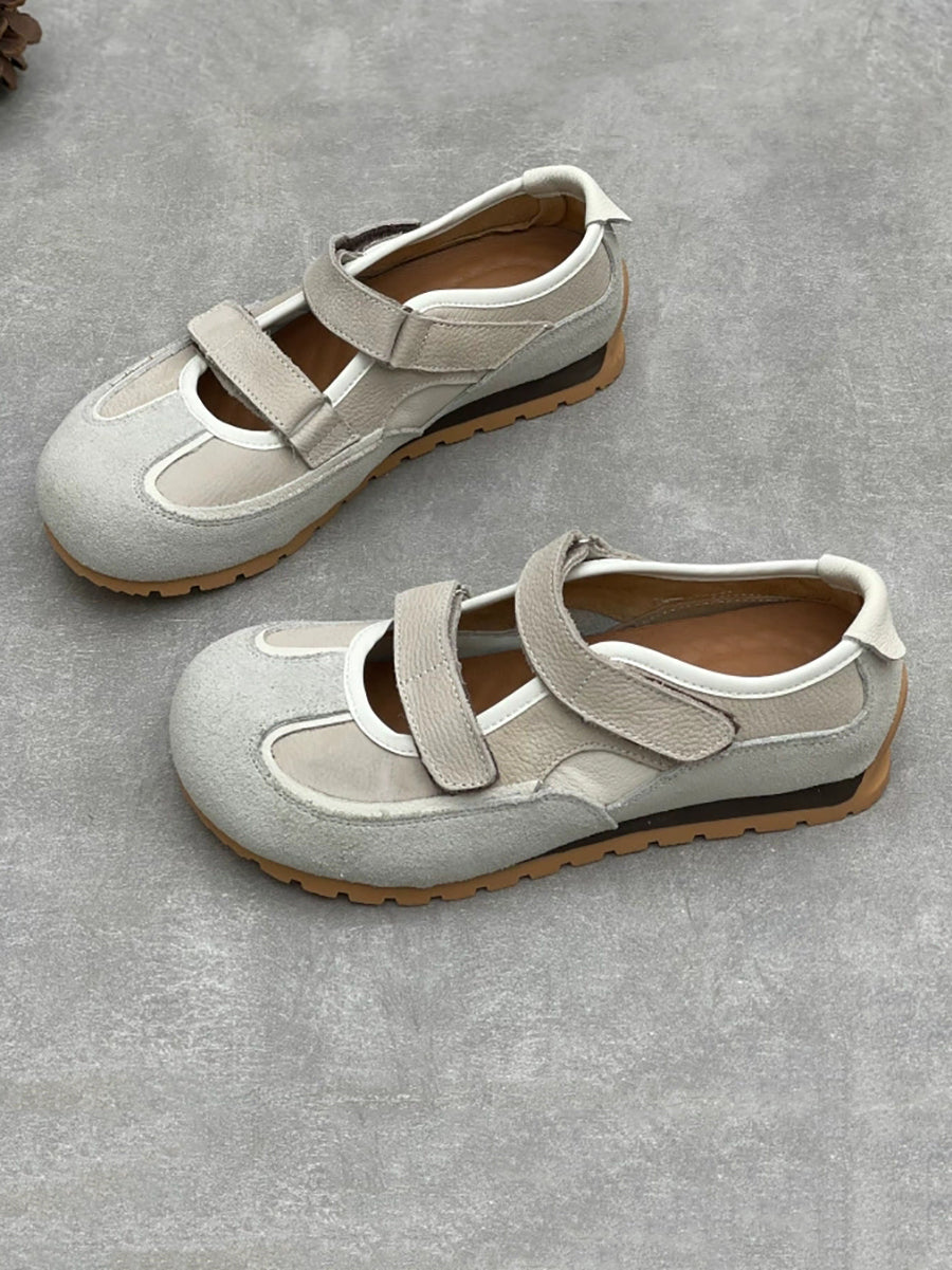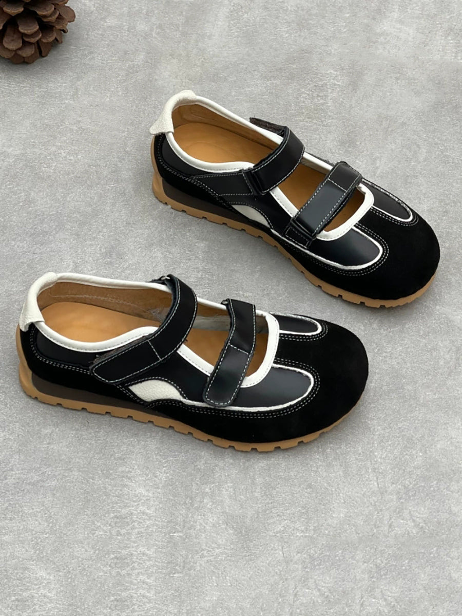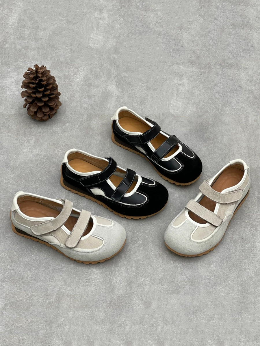 נעלי עור אמיתי מזדמנים לנשים עם עקבים נמוכים