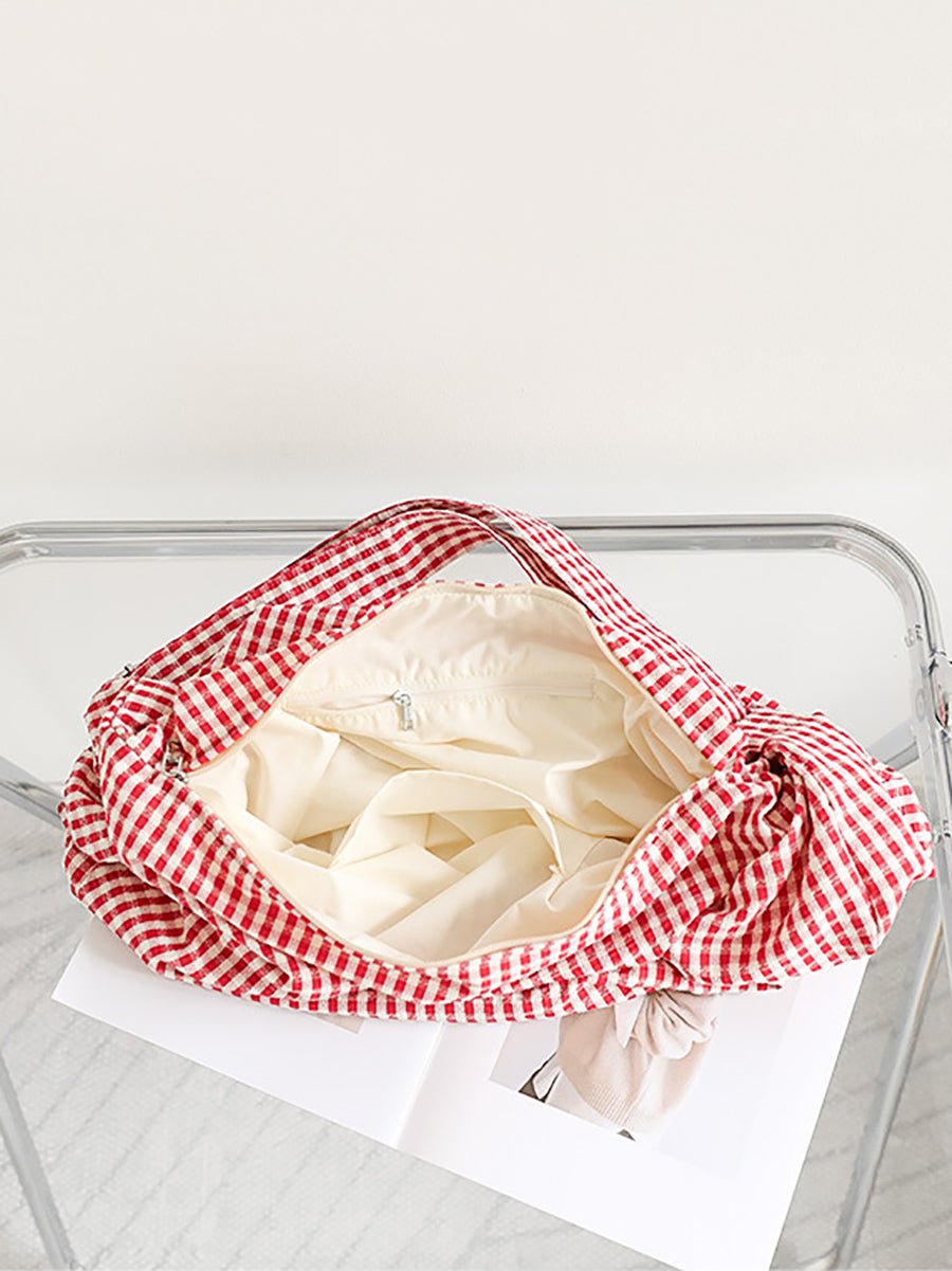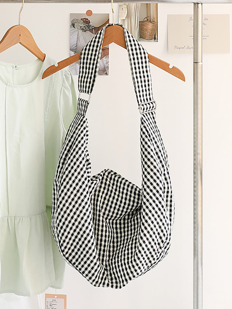 תיק כתף כופתאות בד משובץ מזדמן לנשים