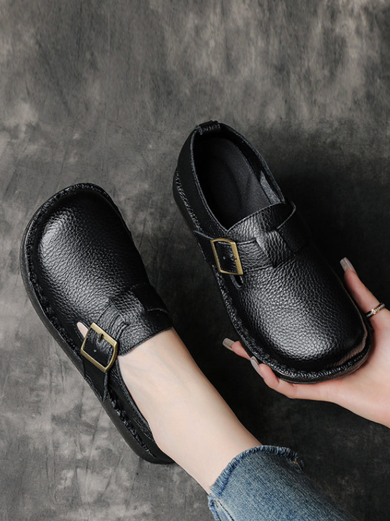 נעלי עור נמוכות בצבע טהור מזדמן לנשים