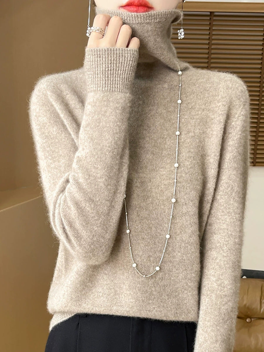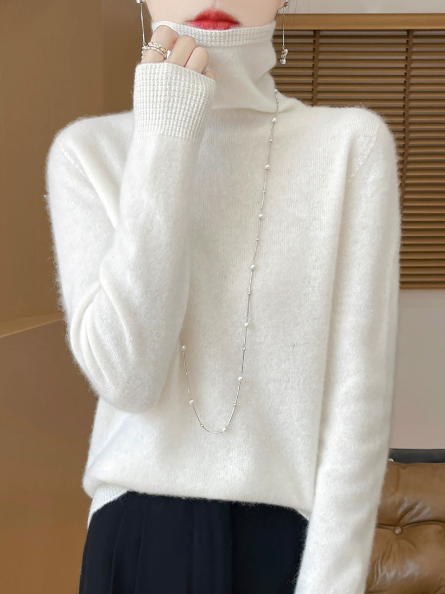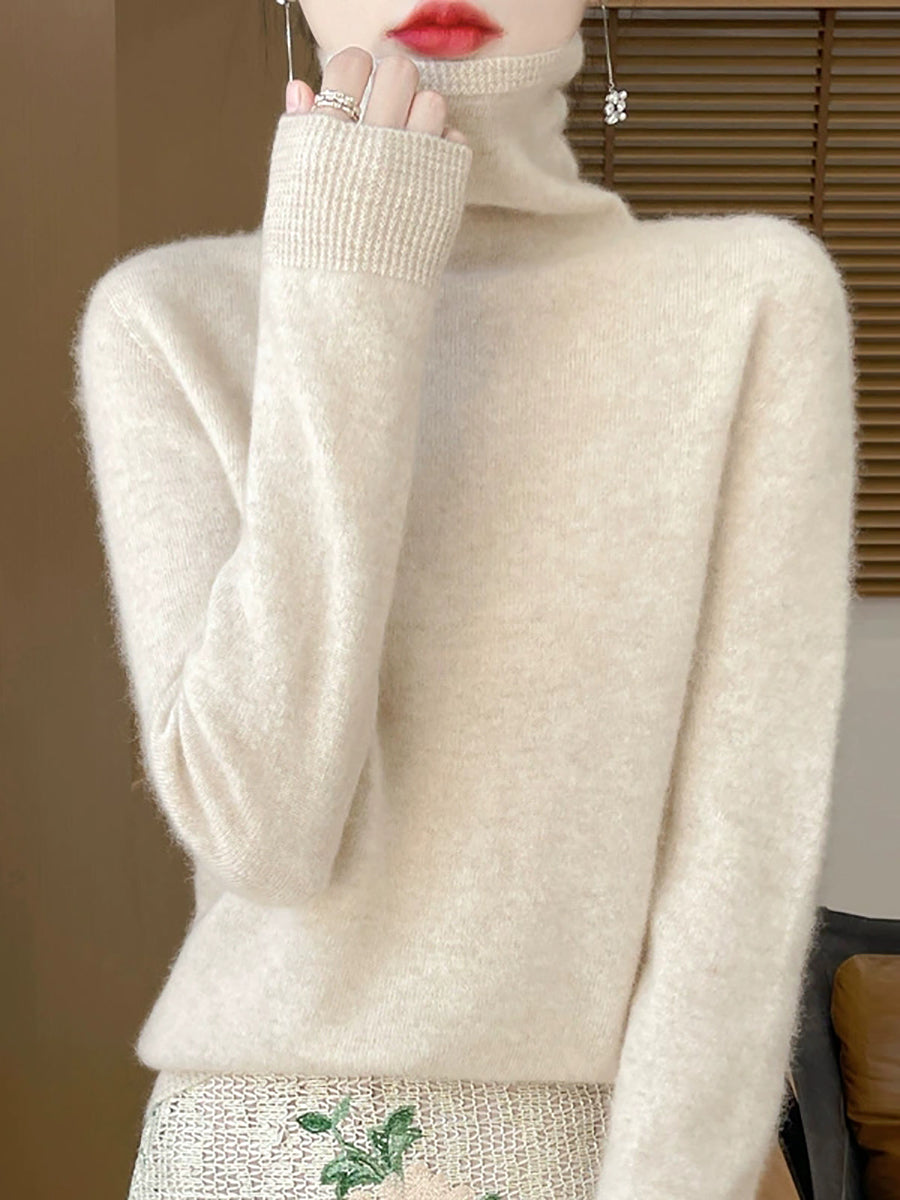 סוודר גולף בצבע טהור באביב מזדמן לנשים