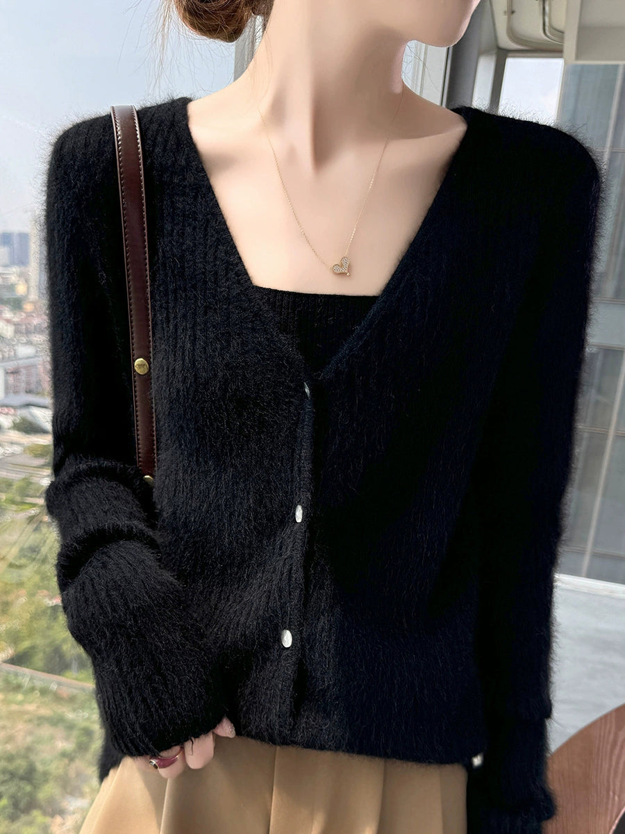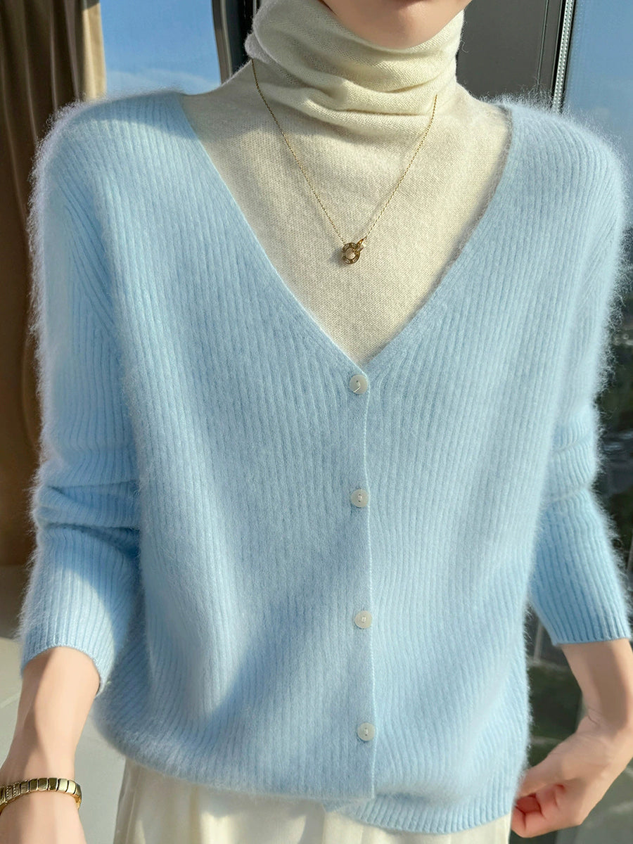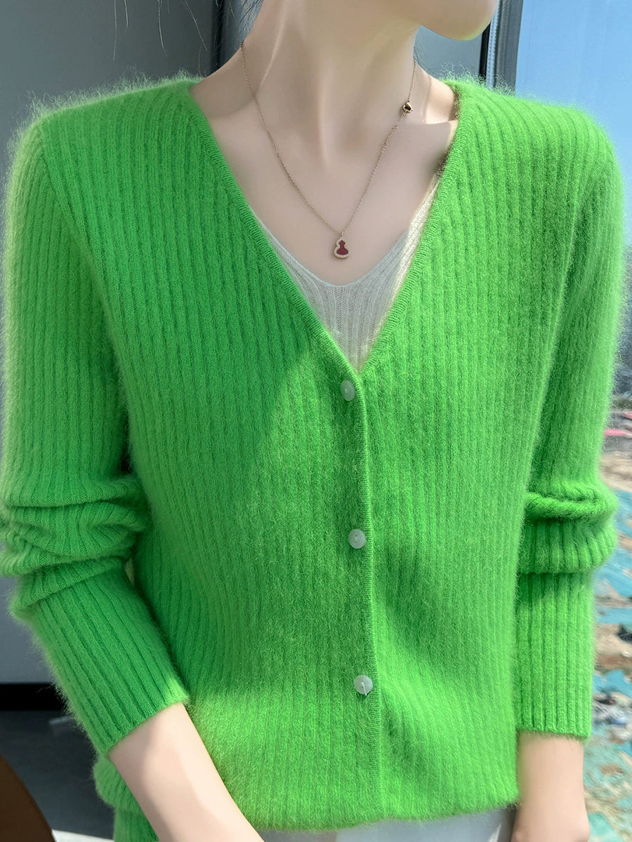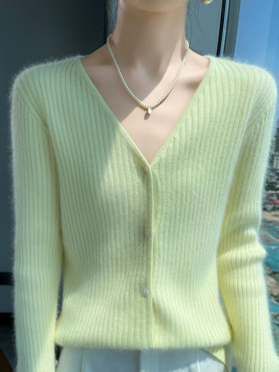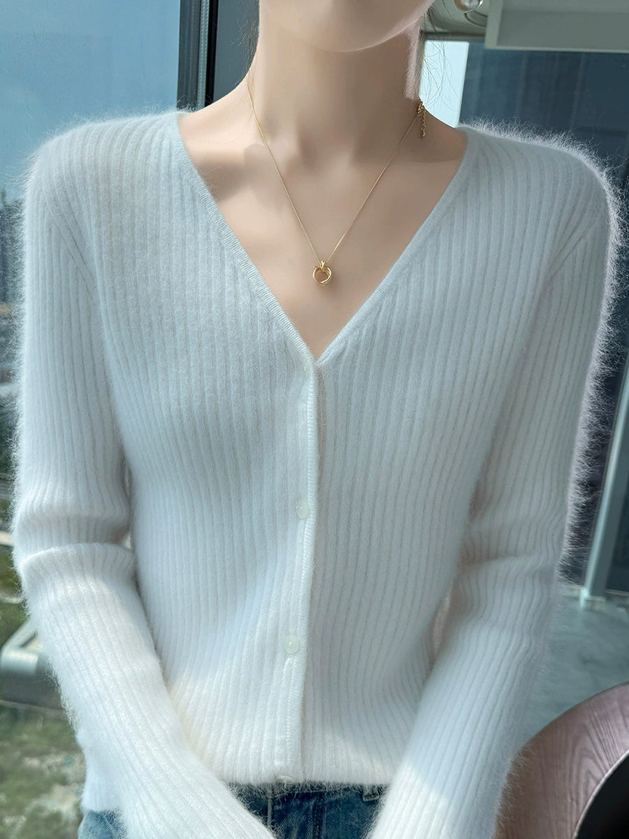 סוודר צווארון V בצבע טהור לנשים, קז'ואל אביב