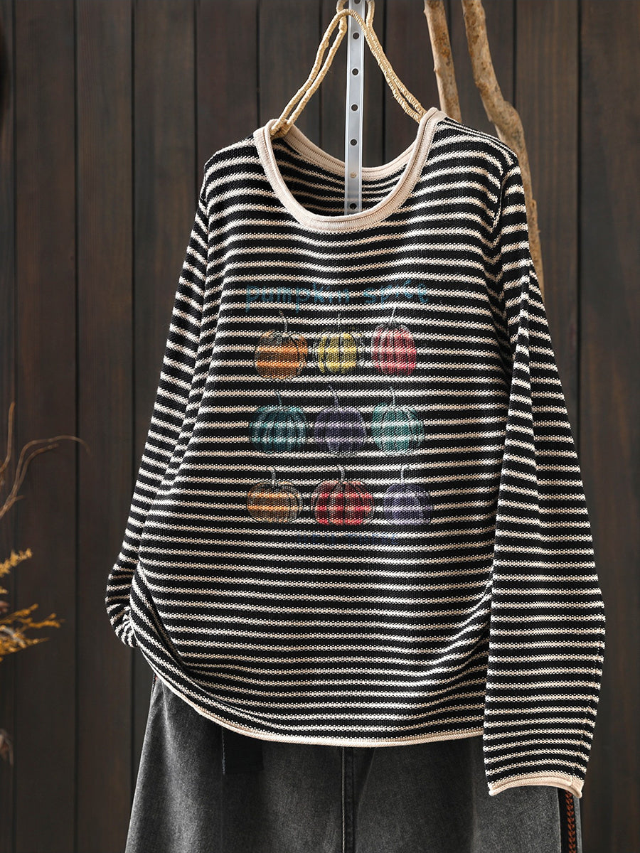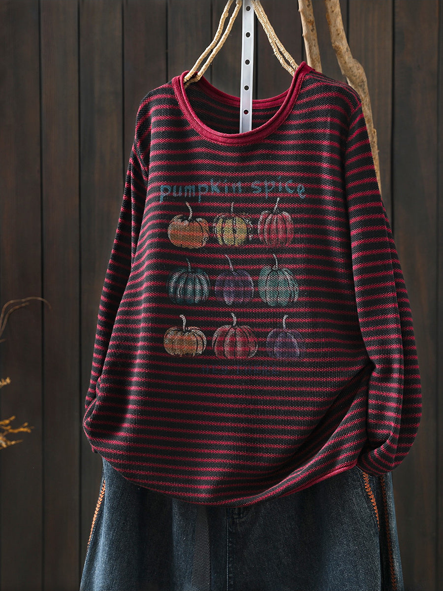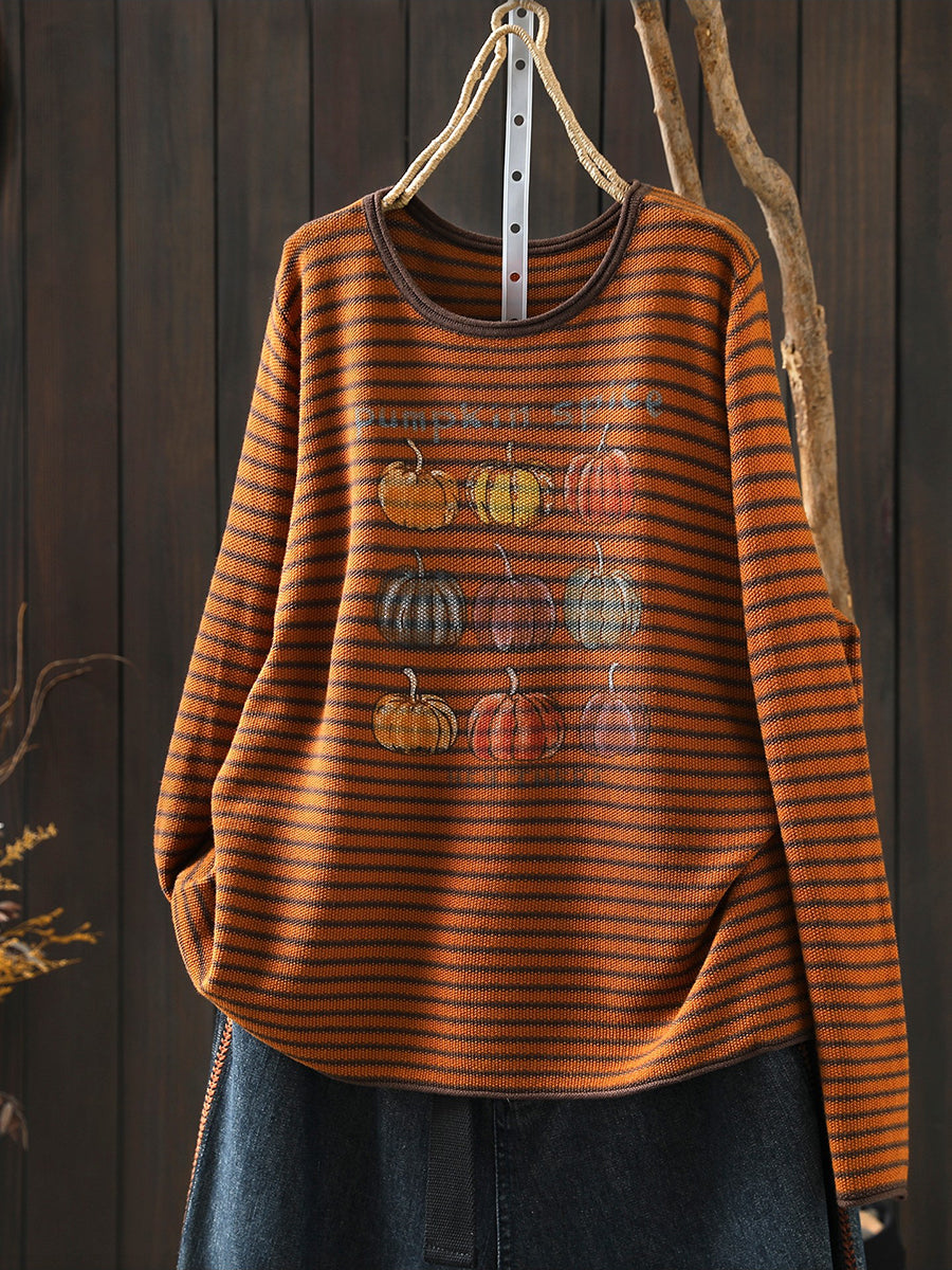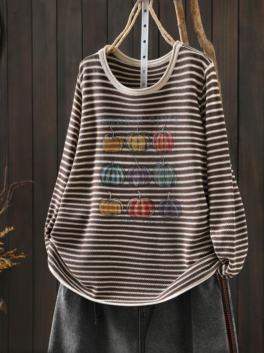 חולצת O-צוואר עם פסים בגזרה דלעת לנשים