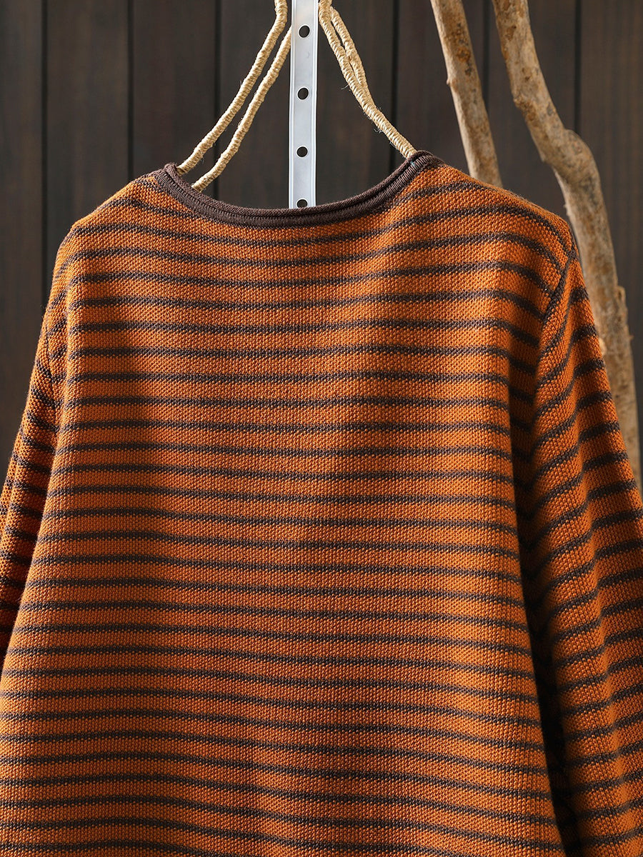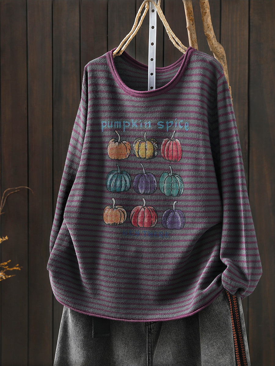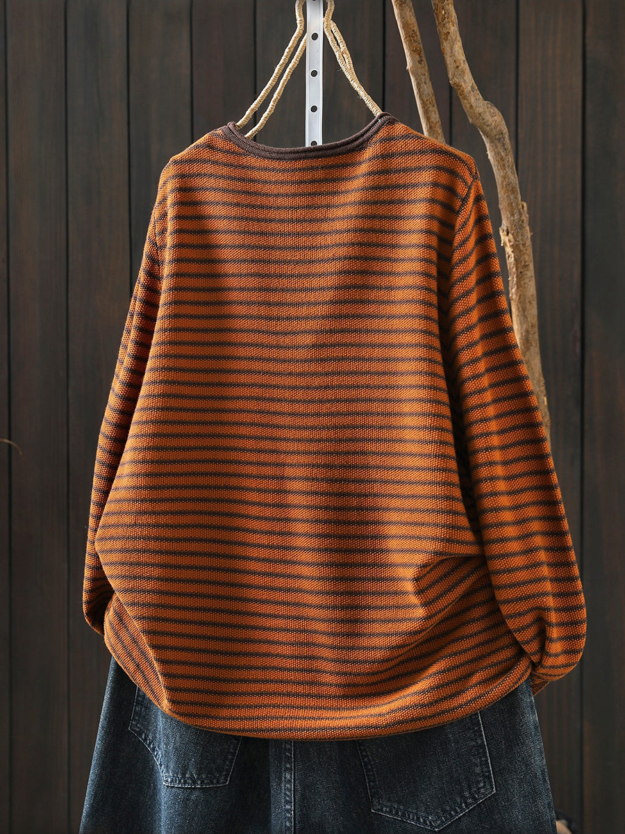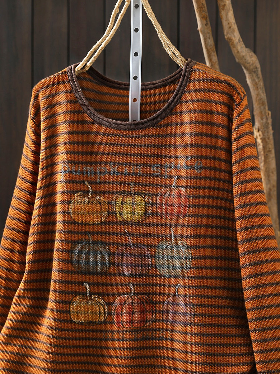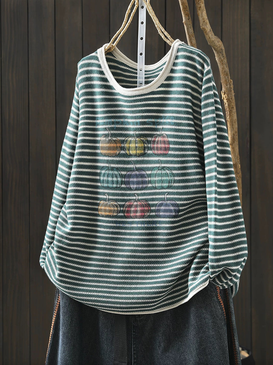 חולצת O-צוואר עם פסים בגזרה דלעת לנשים