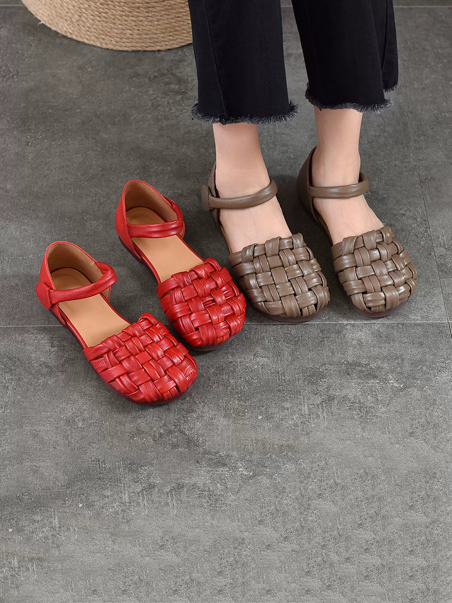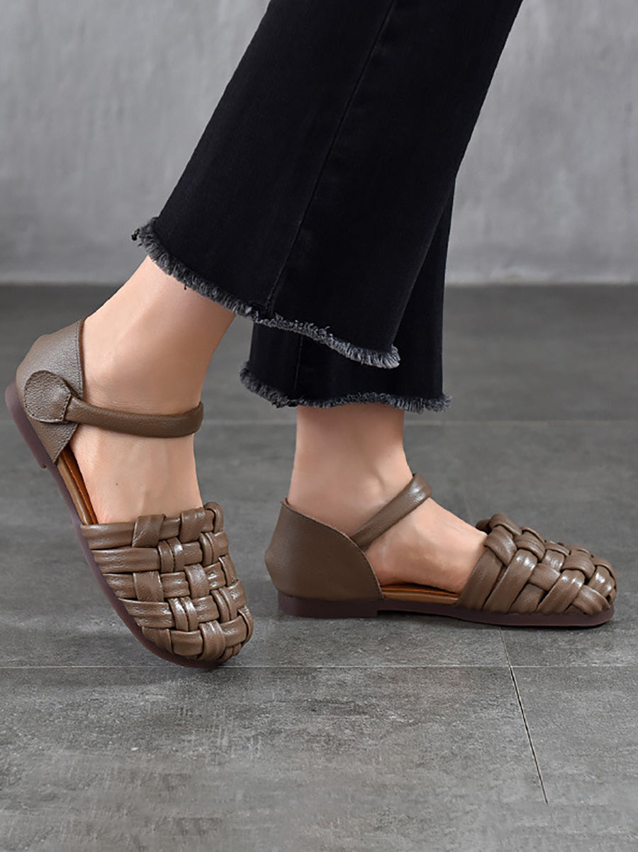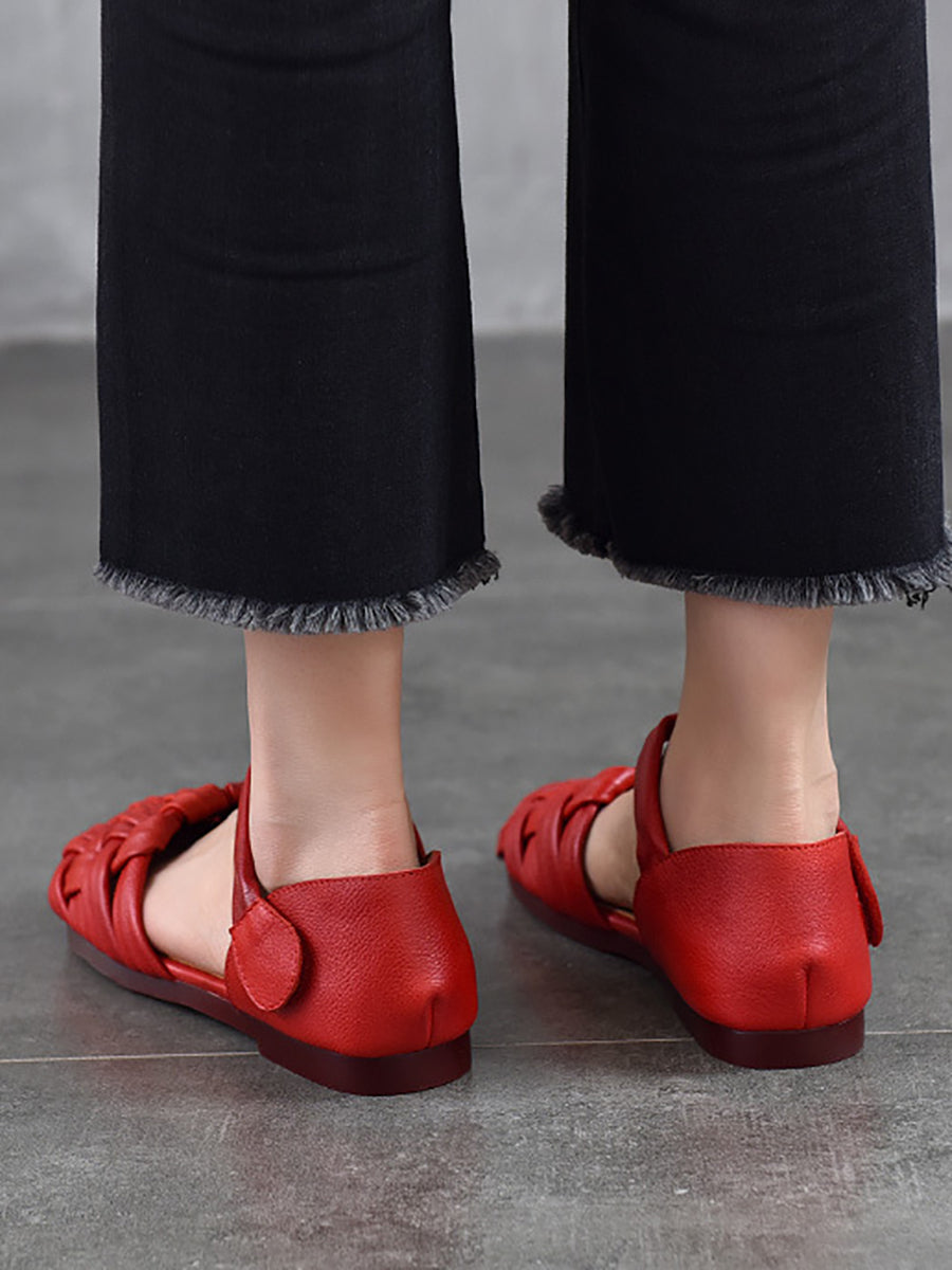 סנדלי עור שטוחים מזדמנים לנשים בקיץ
