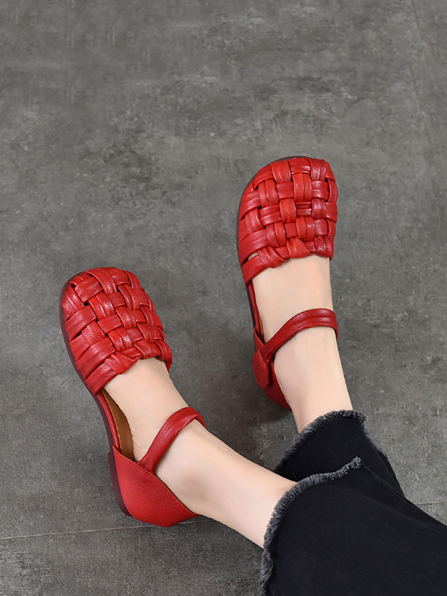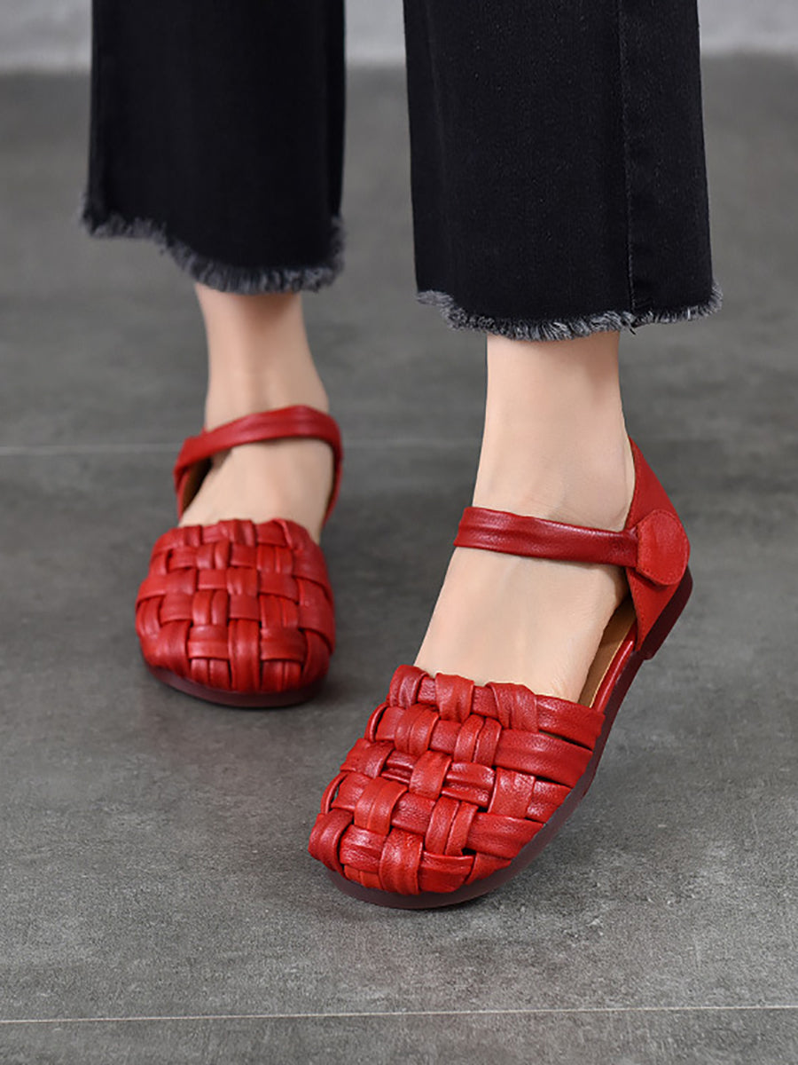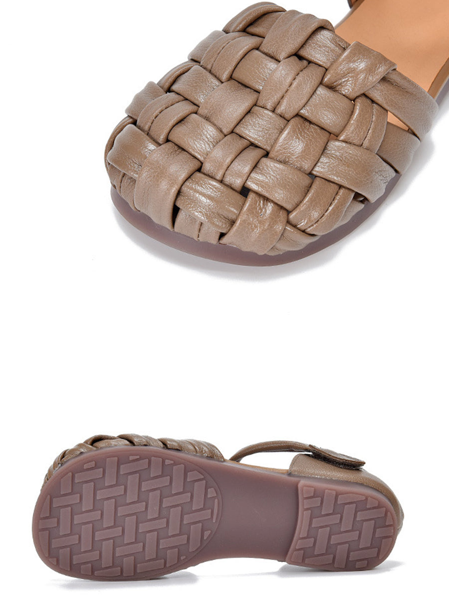 סנדלי עור שטוחים מזדמנים לנשים בקיץ