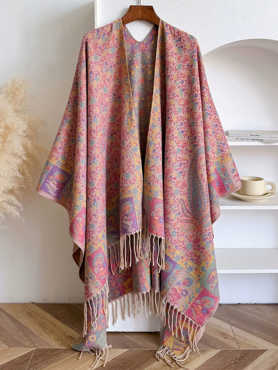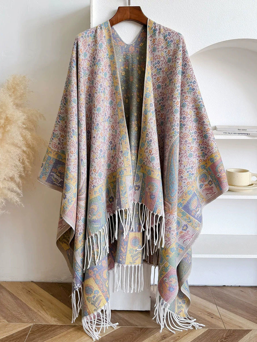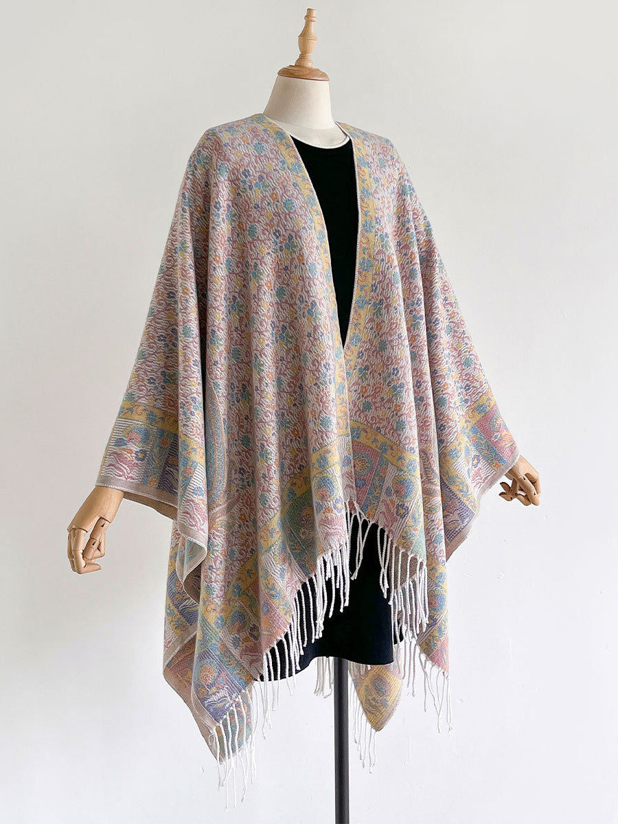 צעיף אקארד פרחוני אתני לנשים עם ציצית
