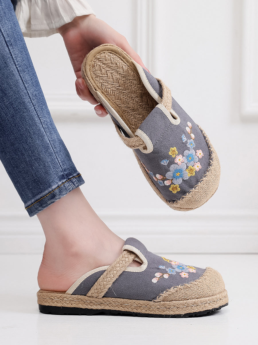 נעלי בית בד עם רקמה אתנית של פרחים לנשים
