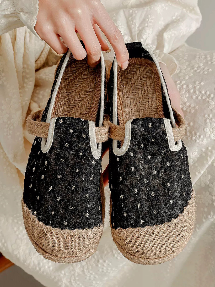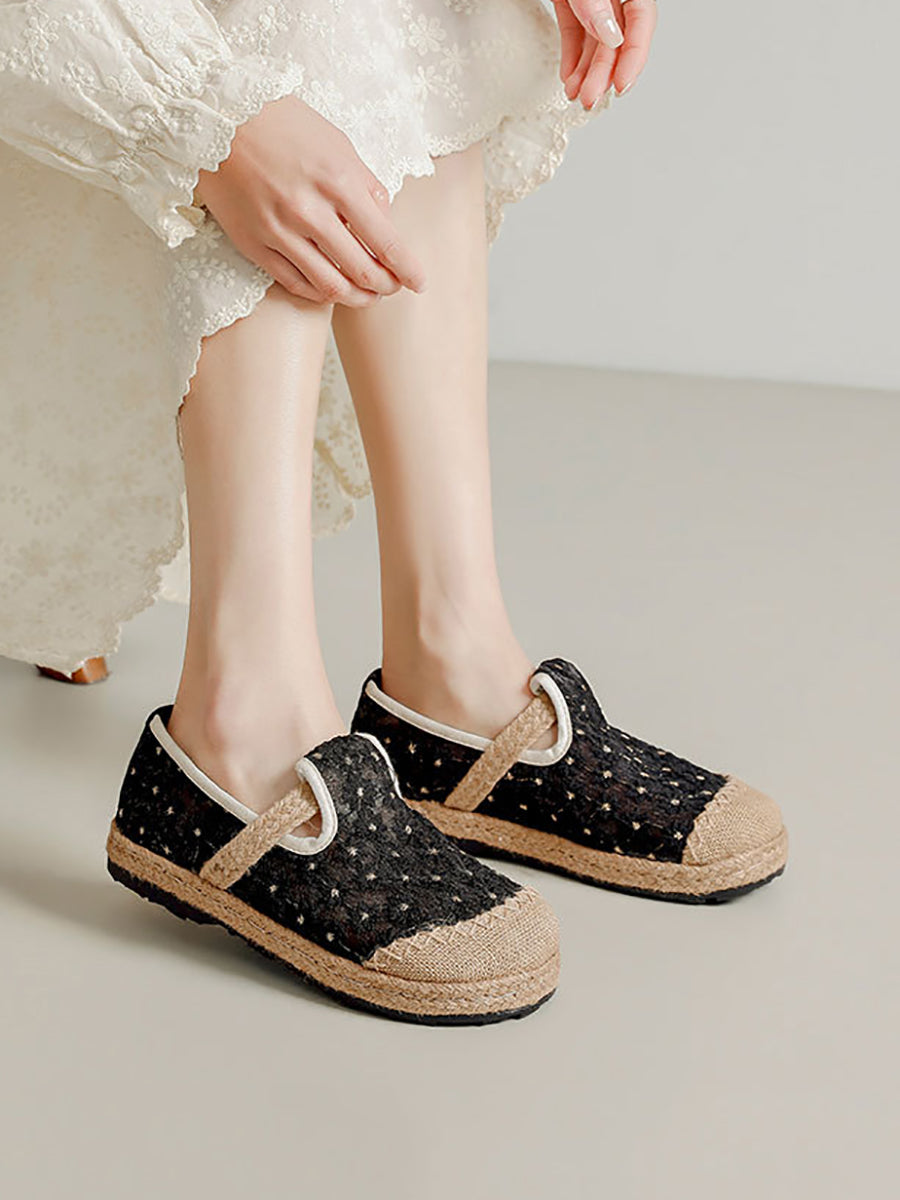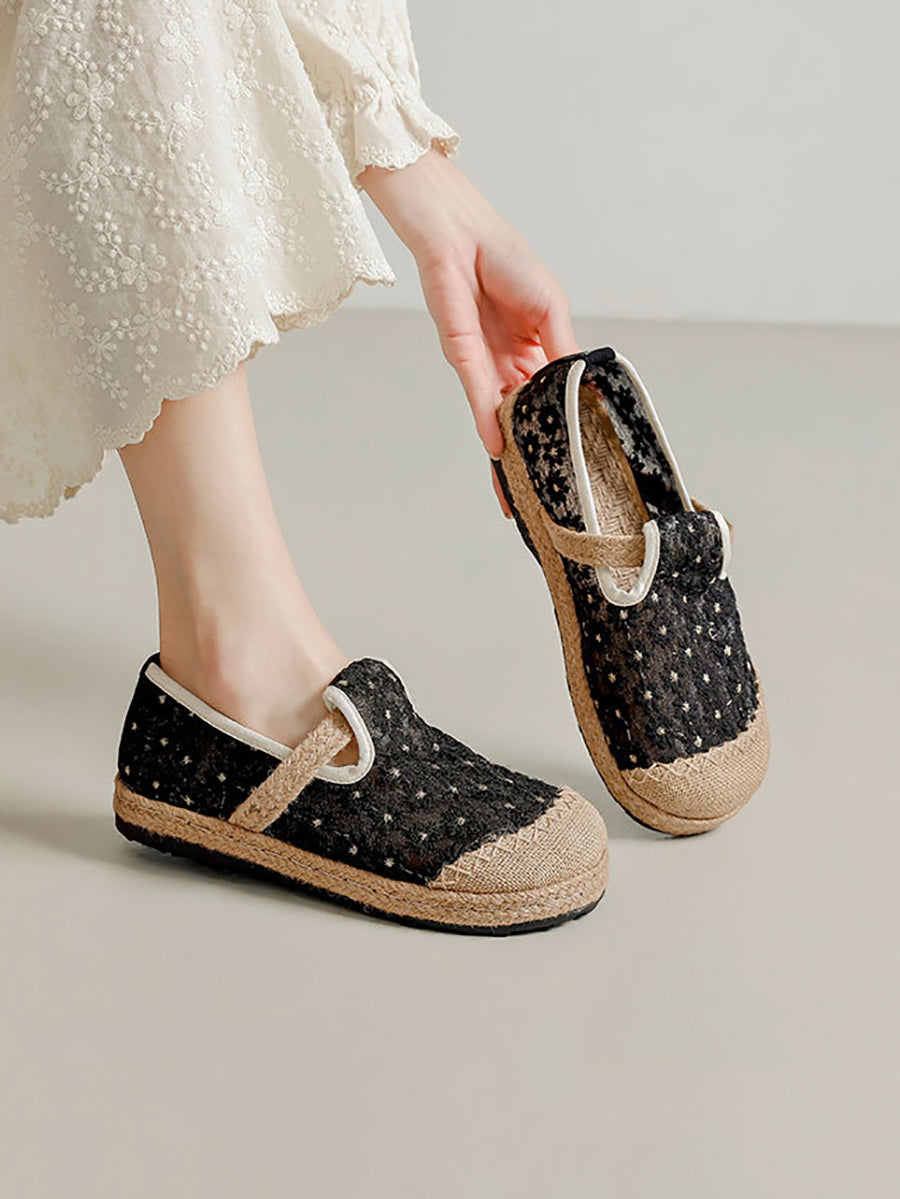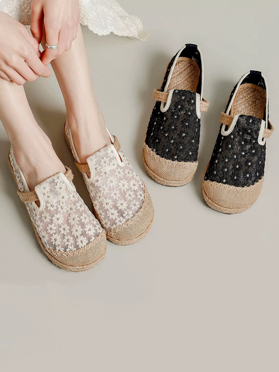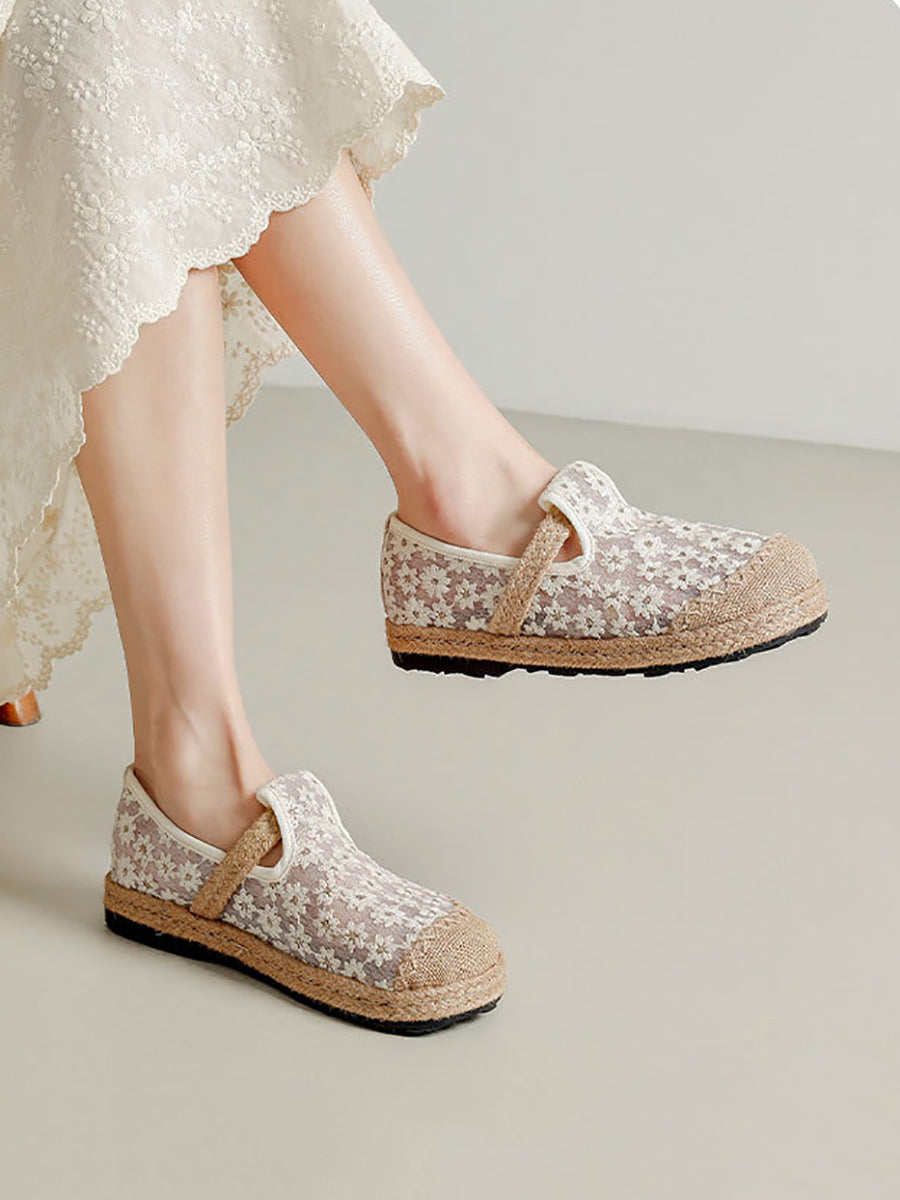 נעליים שטוחות עם רקמה אתנית של פרחים לנשים