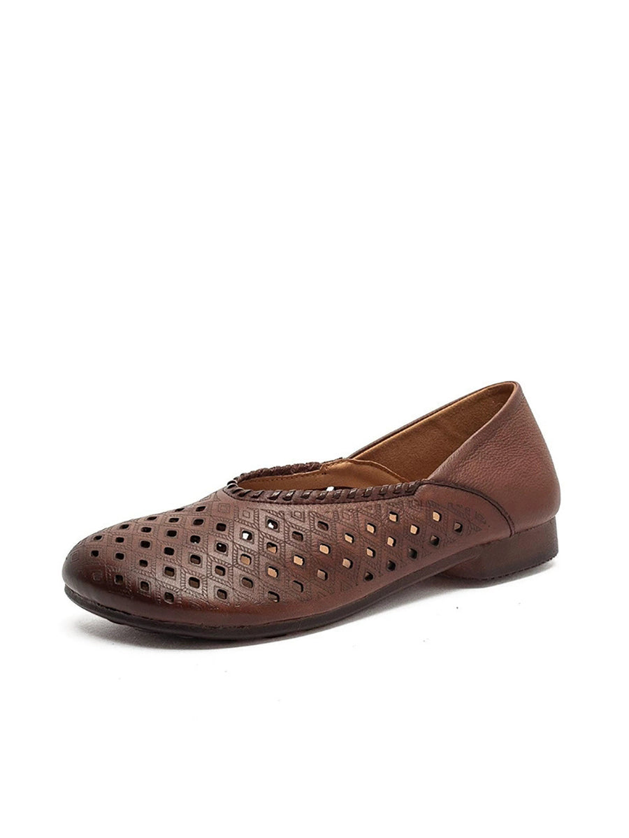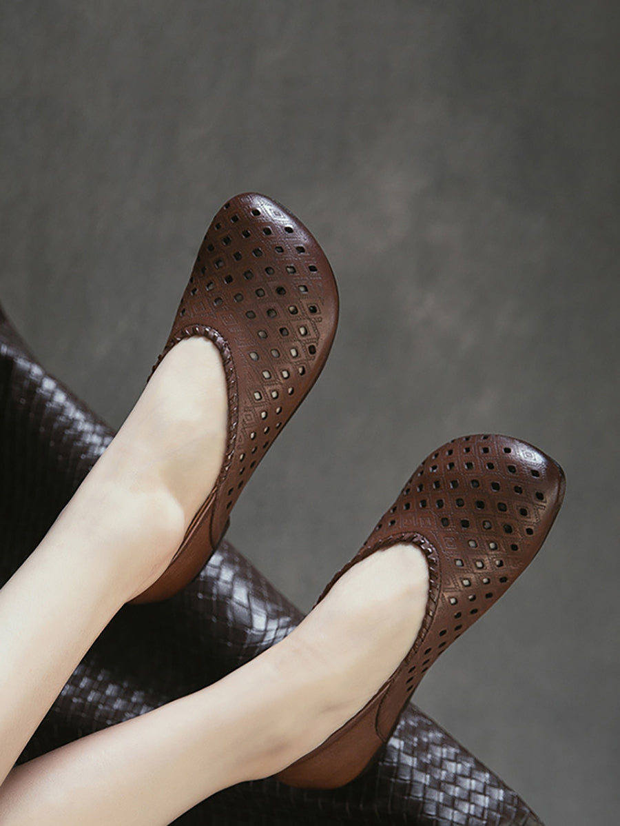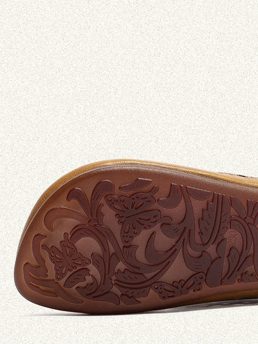 סנדלי עור אמיתיים רטרו עם עקב נמוך