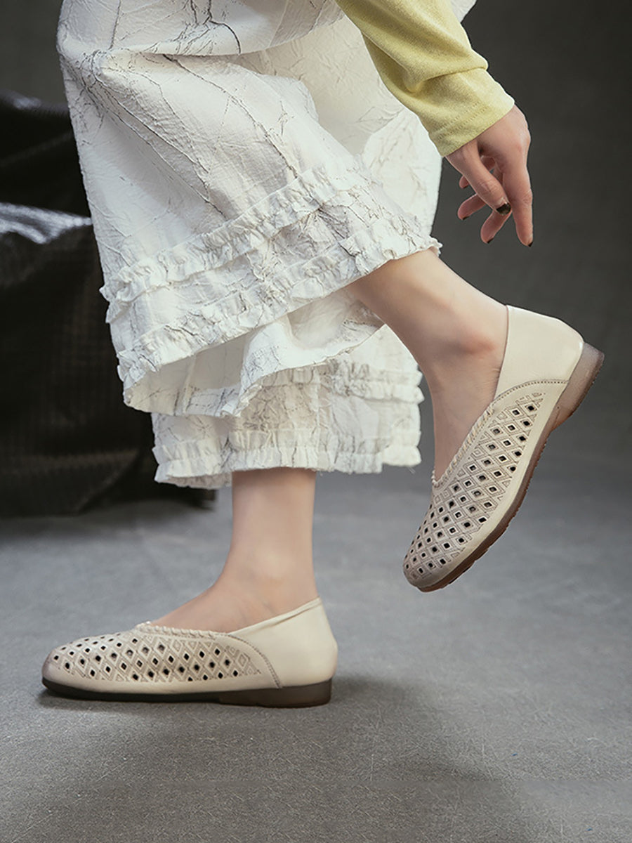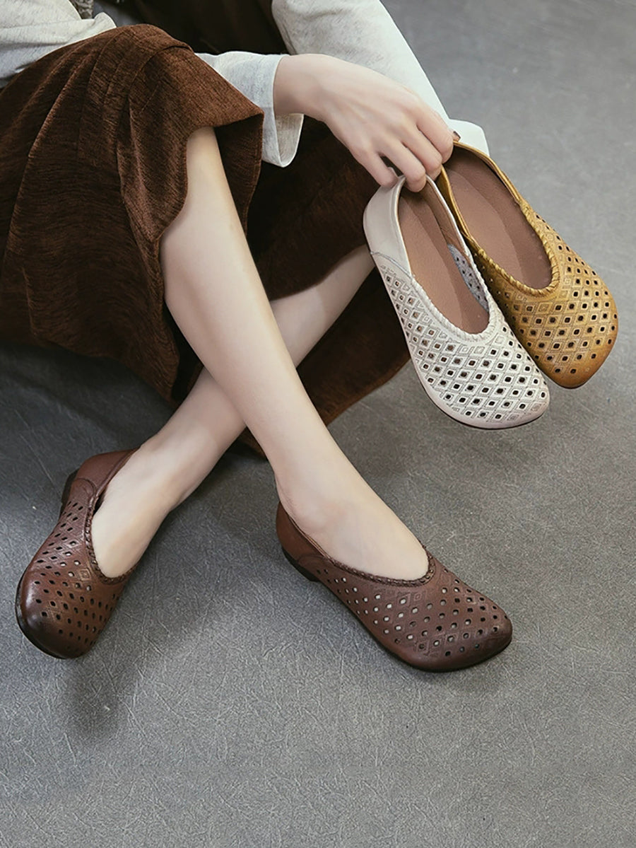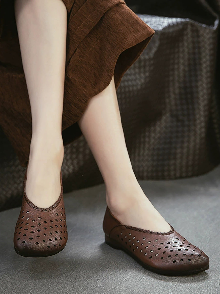 סנדלי עור אמיתיים רטרו עם עקב נמוך
