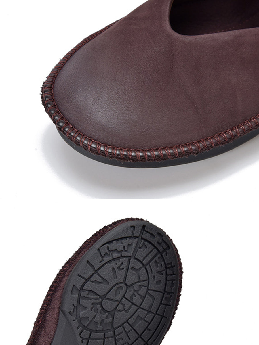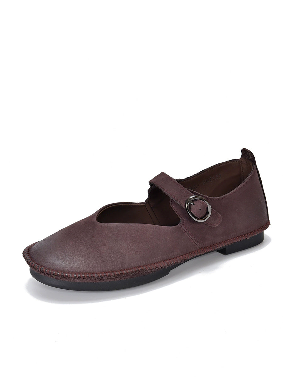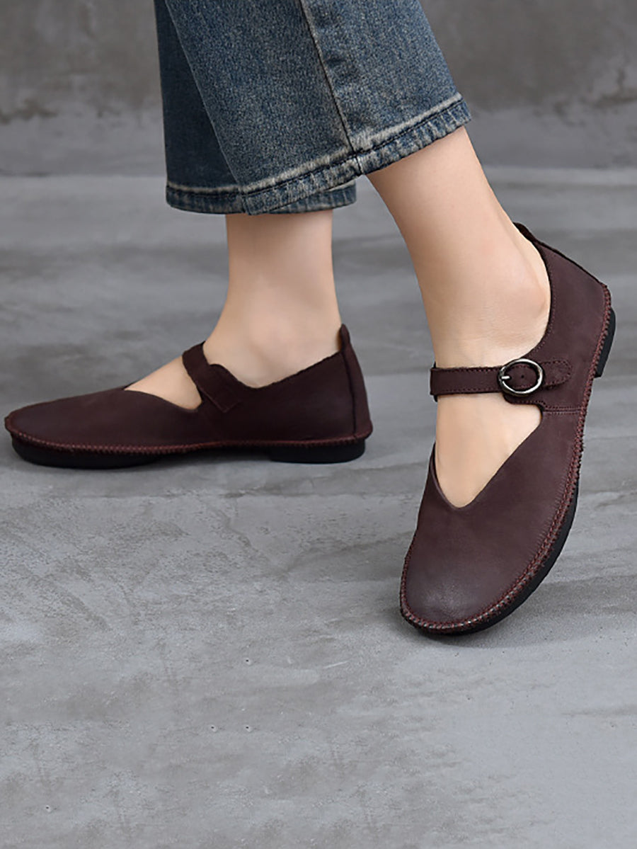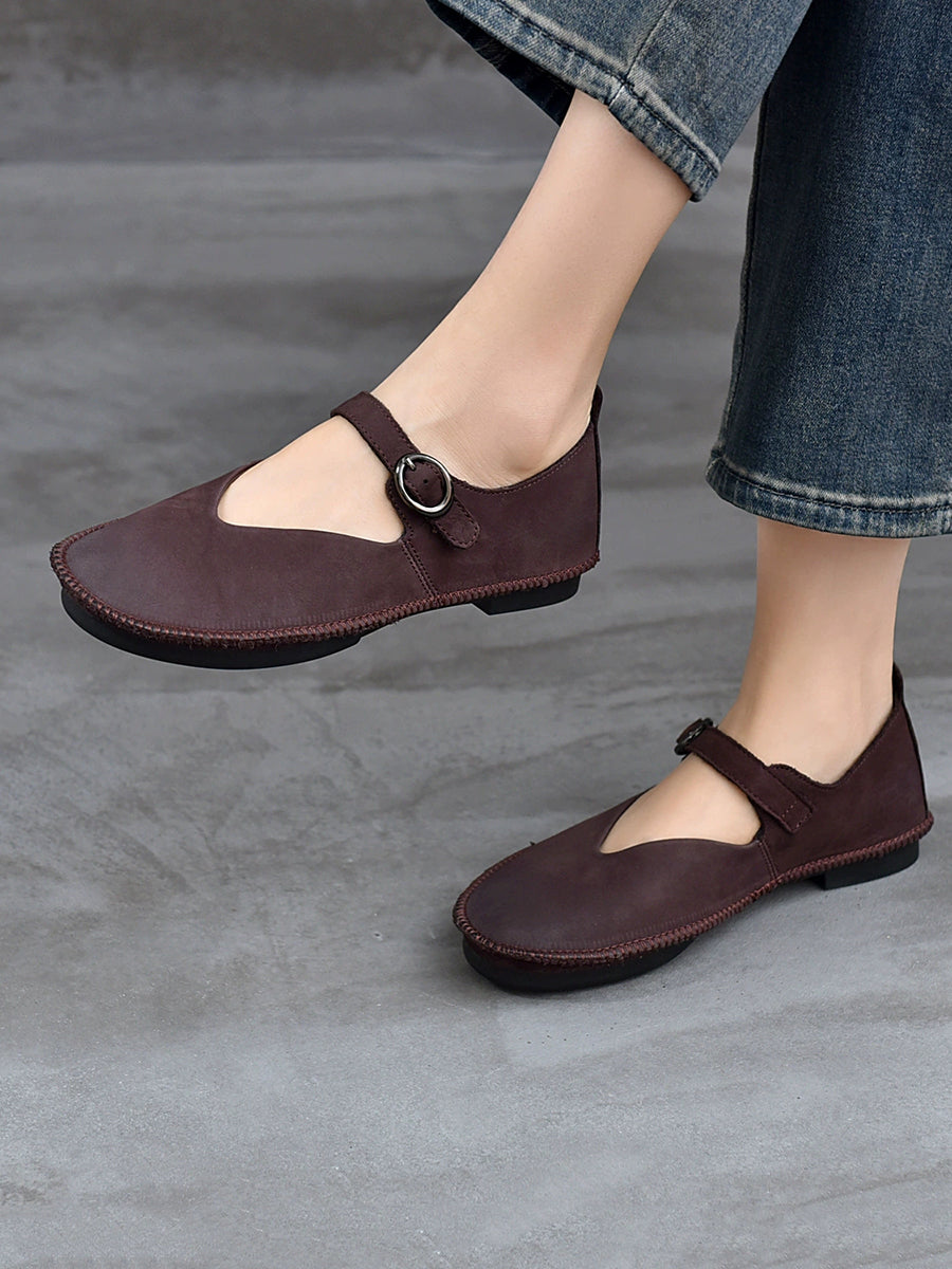 נעלי עור אמיתיות רטרו עם עקב נמוך לנשים