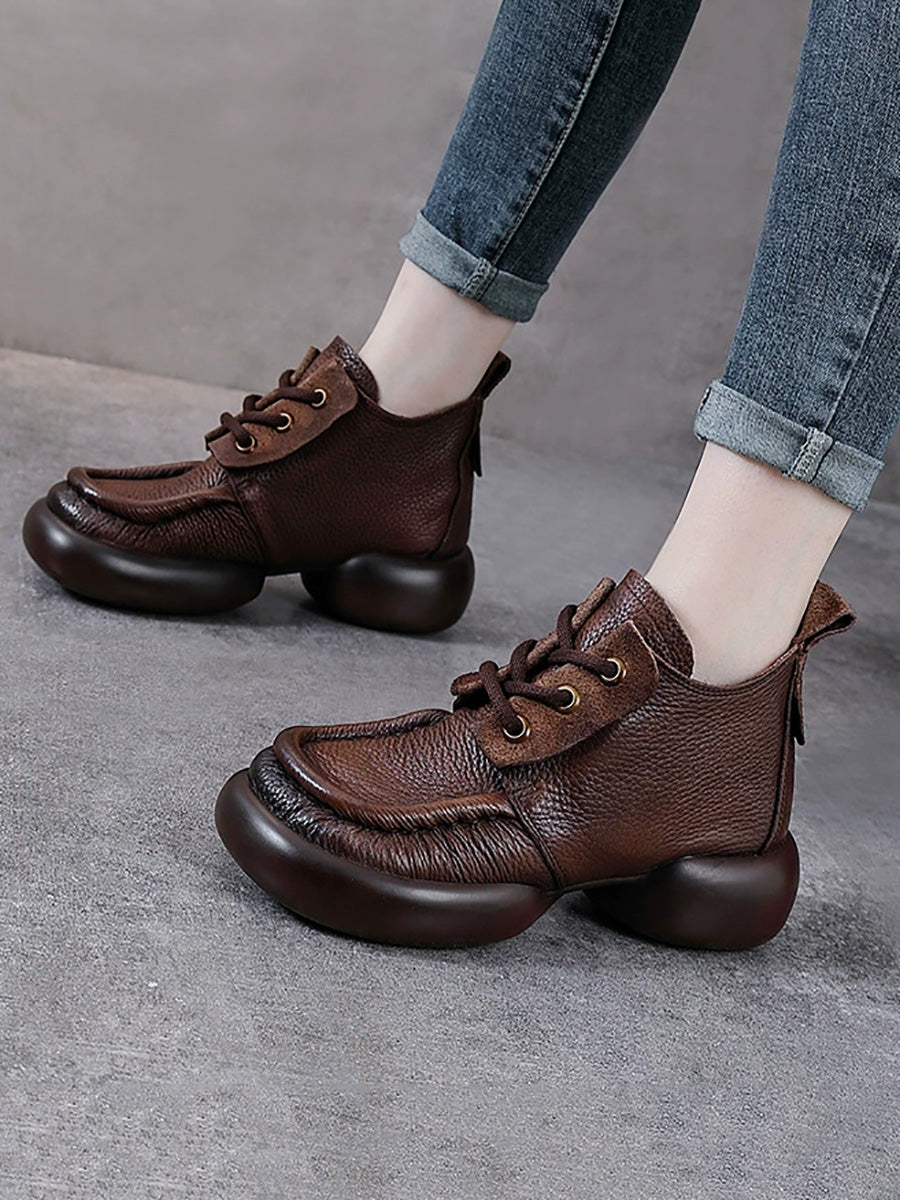 מגפי קרסול פלטפורמה מעור אמיתי רטרו לנשים
